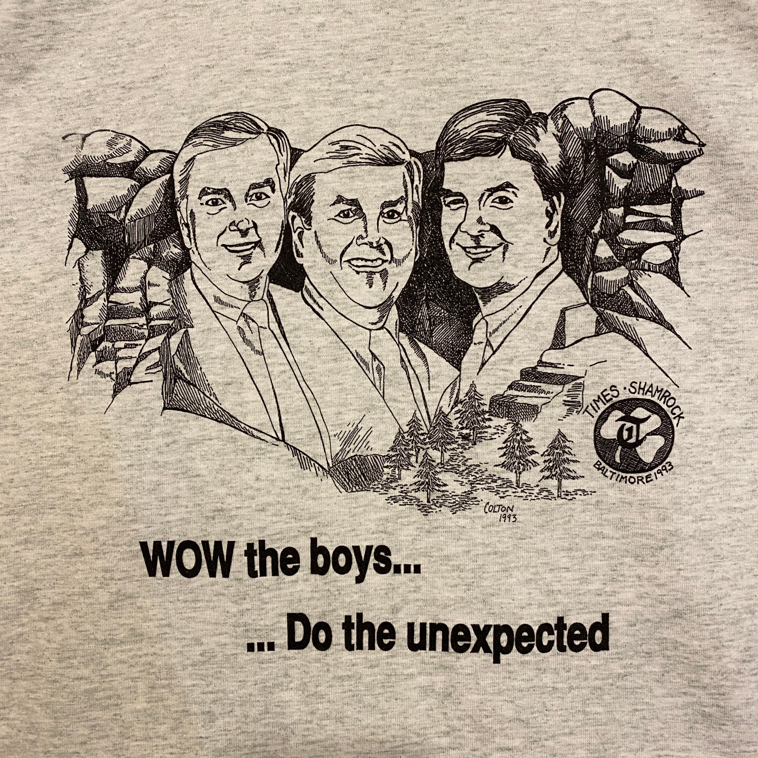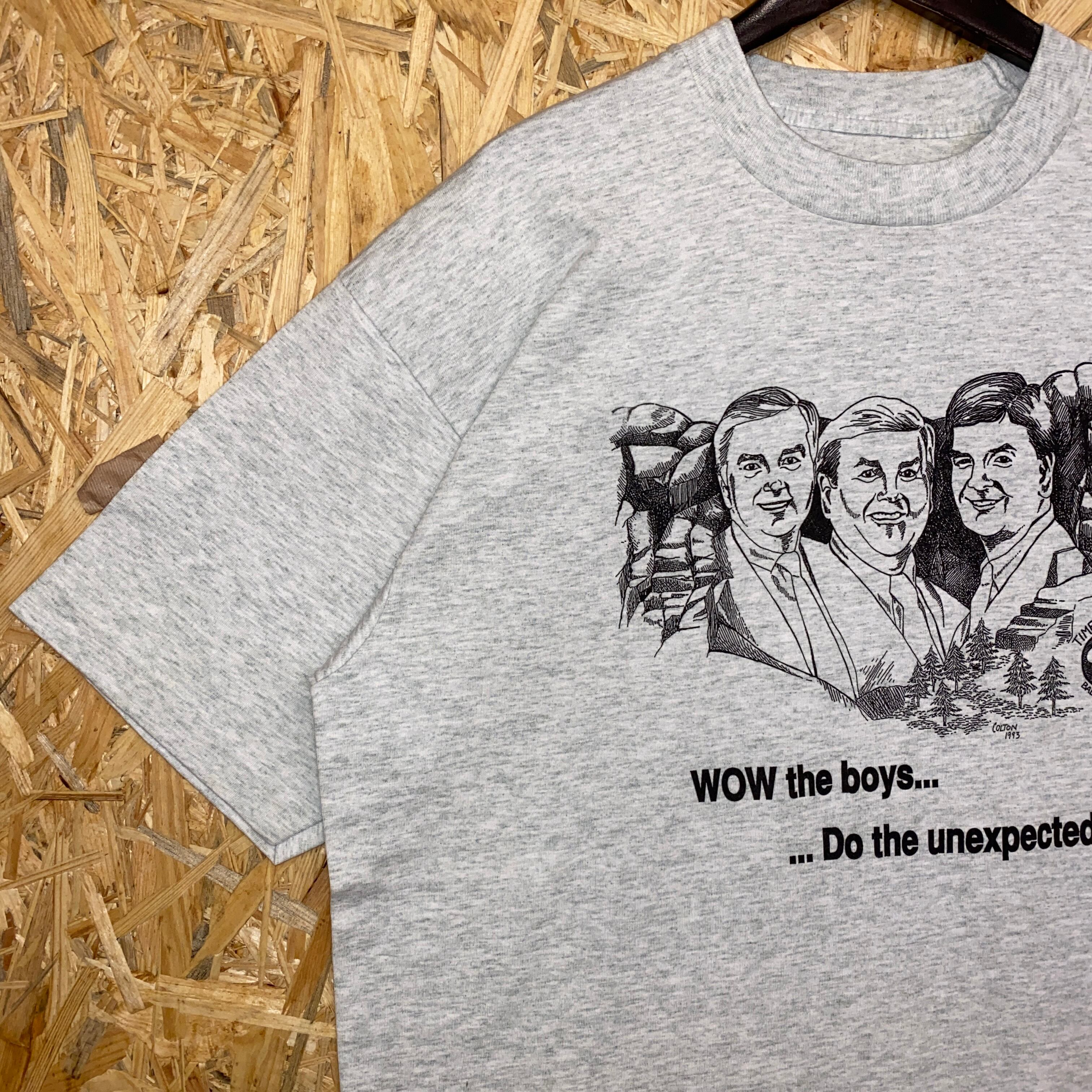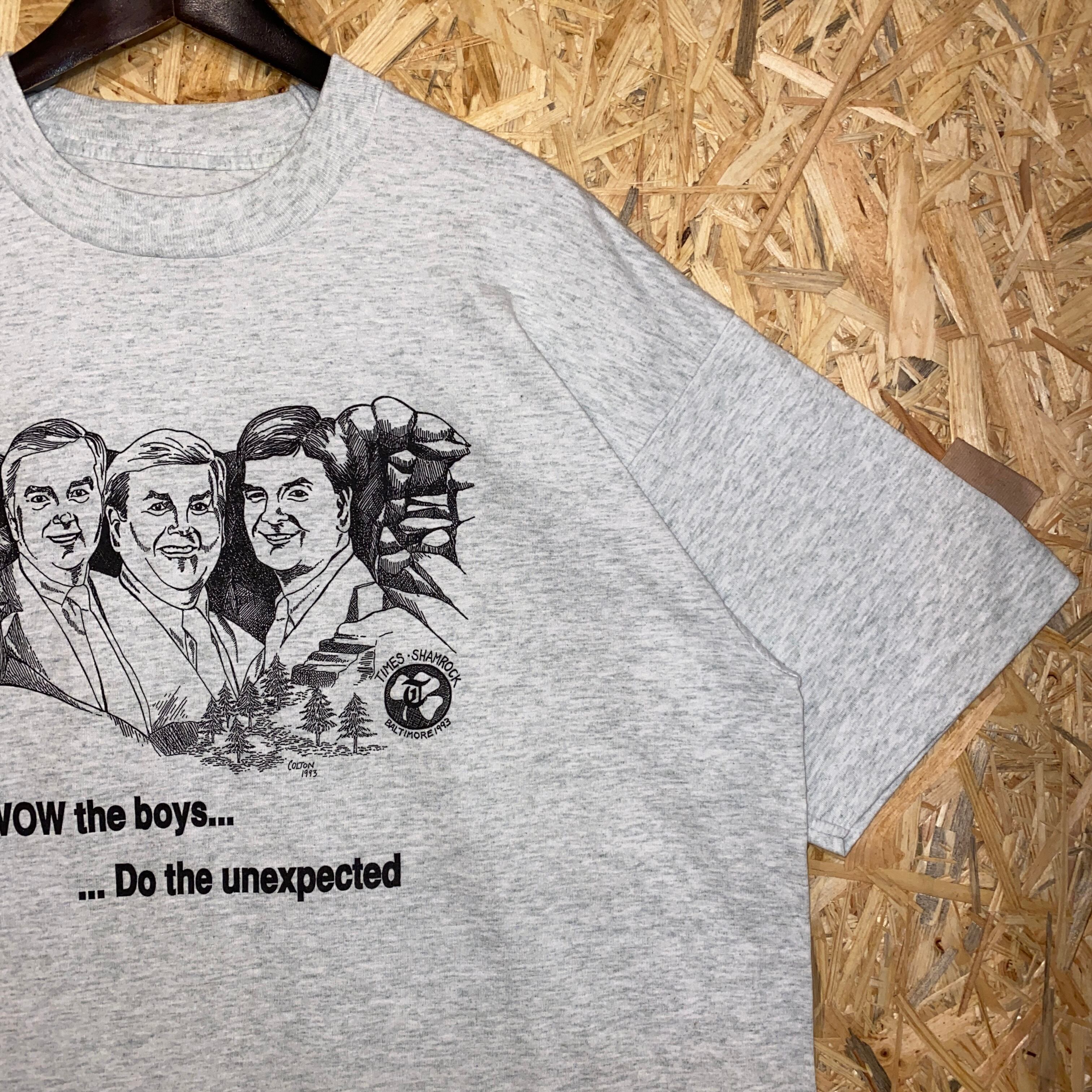 2429 90s 90年代 COLTON グラフィック プリント Tシャツ TIMES SHAMROC 人物 人 グレー 灰色 古着 メンズ vintage 1993s