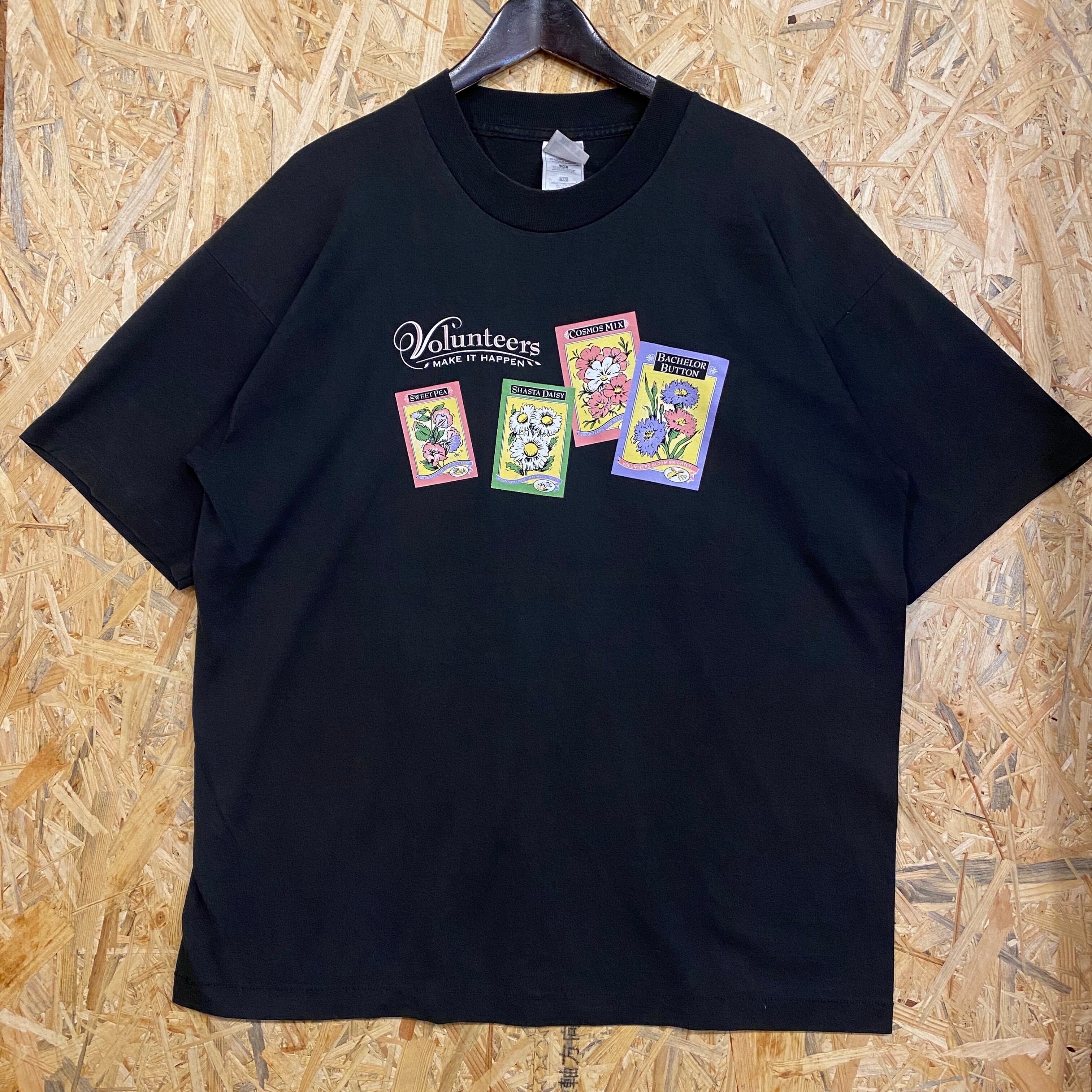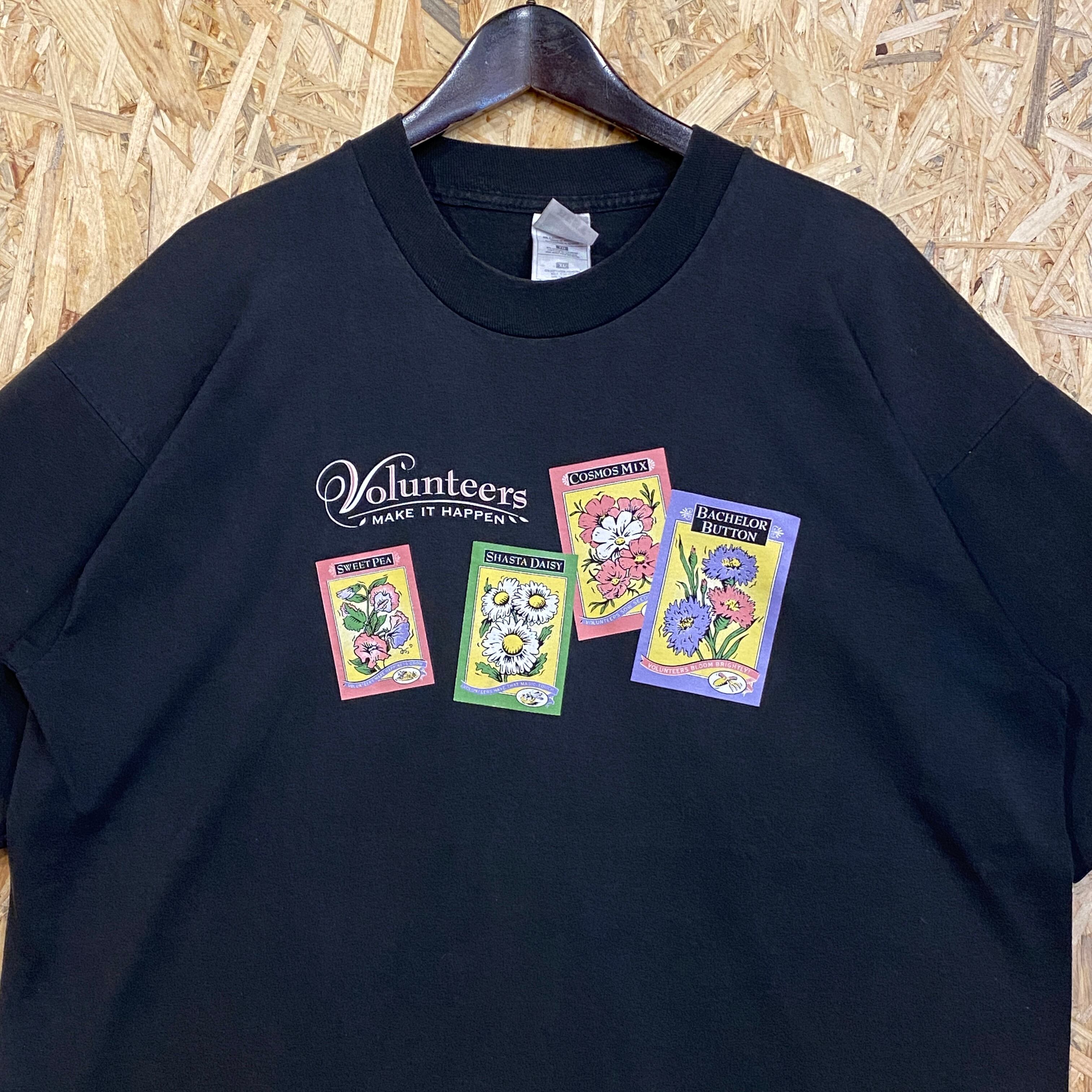 2434 90s 90年代 FRUIT OF THE ROOM グラフィック プリント Tシャツ 花 ボランティア ブラック 黒 シングルステッチ 古着 メンズ vintage
