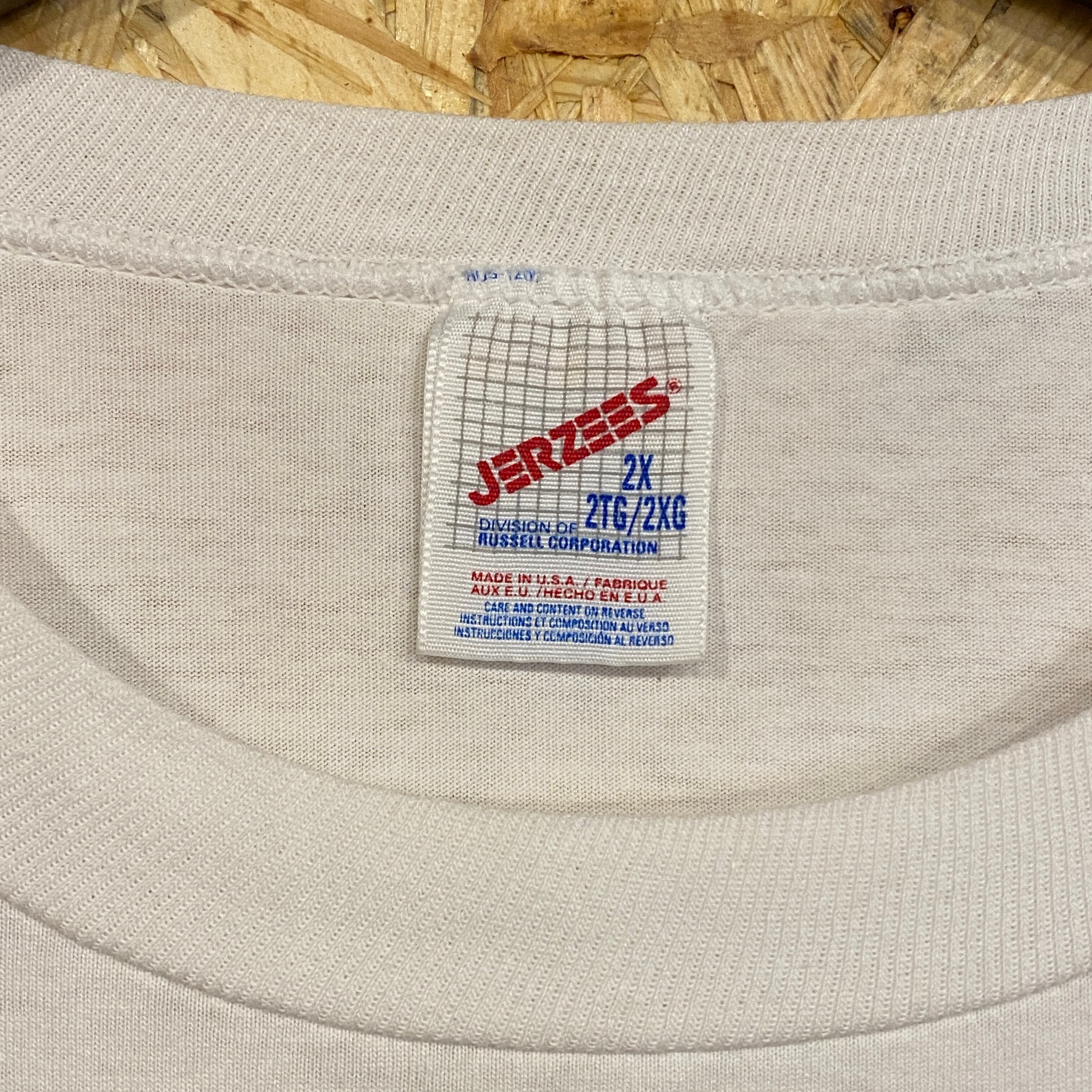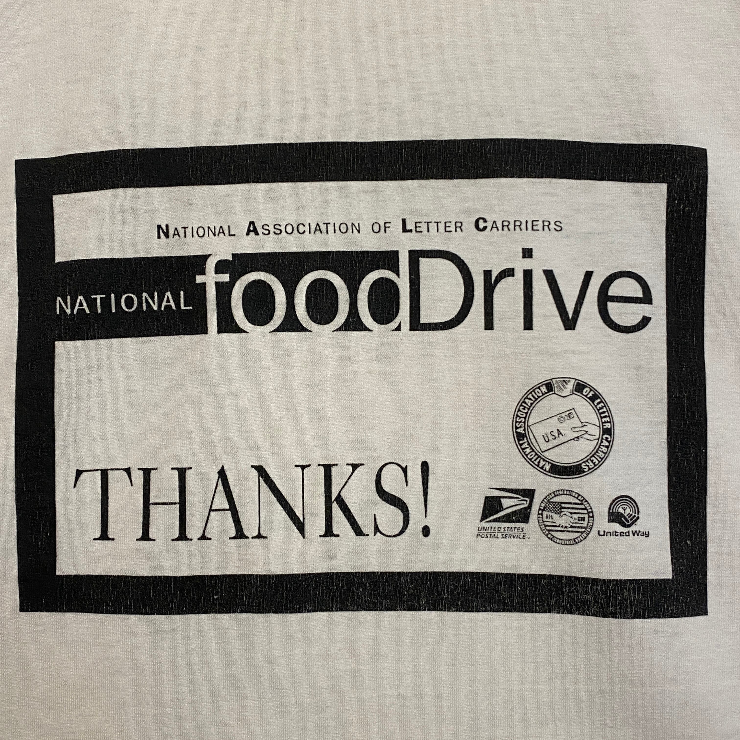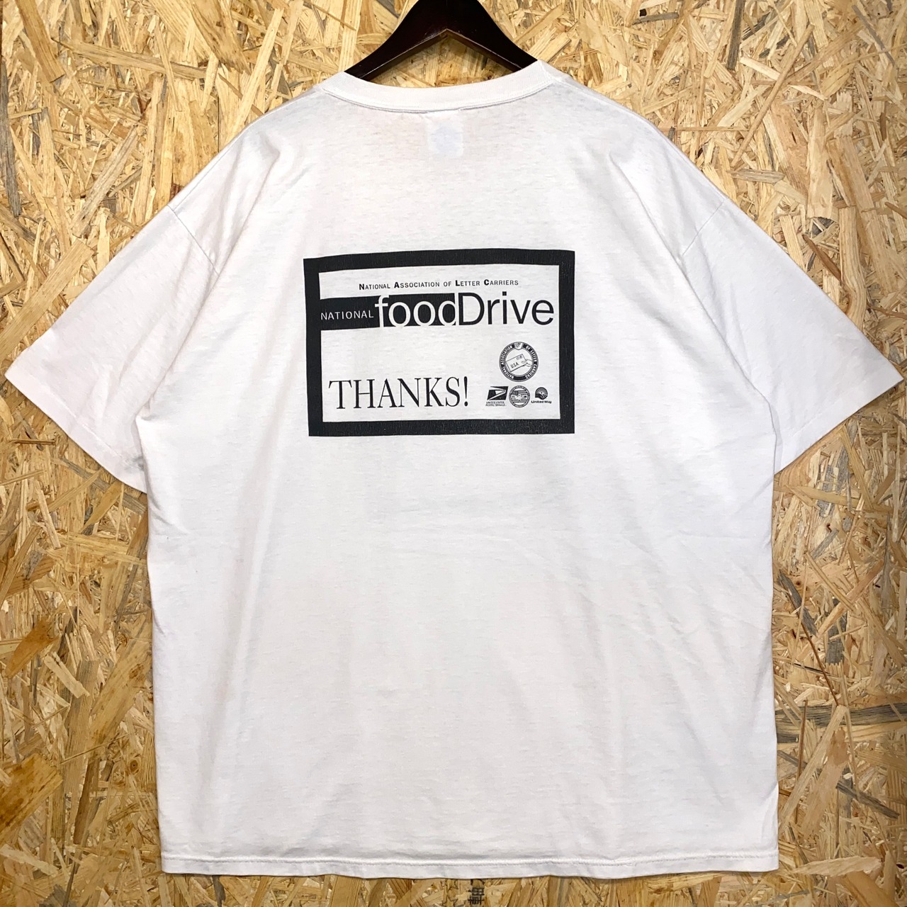 2435 90s 90年代 USA製 JERZEES グラフィック プリント Tシャツ foodDrive バックプリント ホワイト 白 家族 食料品寄付運動 古着 メンズ vintage