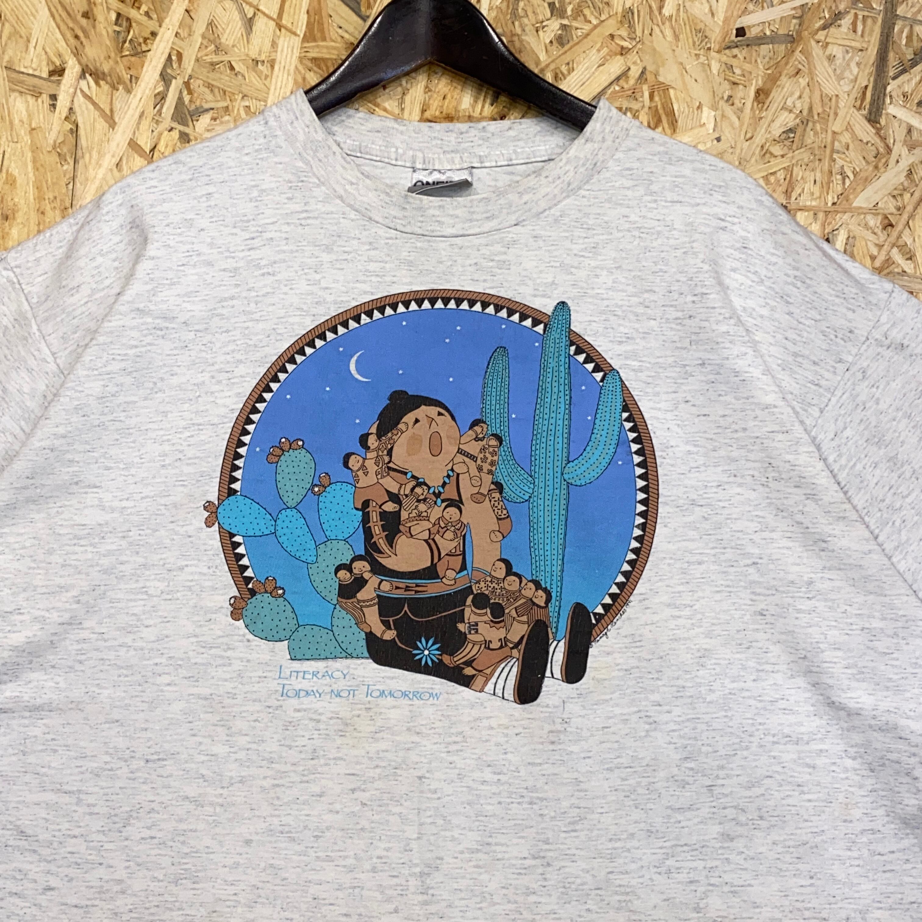 2447 90s 90年代 USA製 民族 サボテン イラスト Tシャツ グラフィック ONEITA 家族 シングルステッチ 古着 メンズ vintage