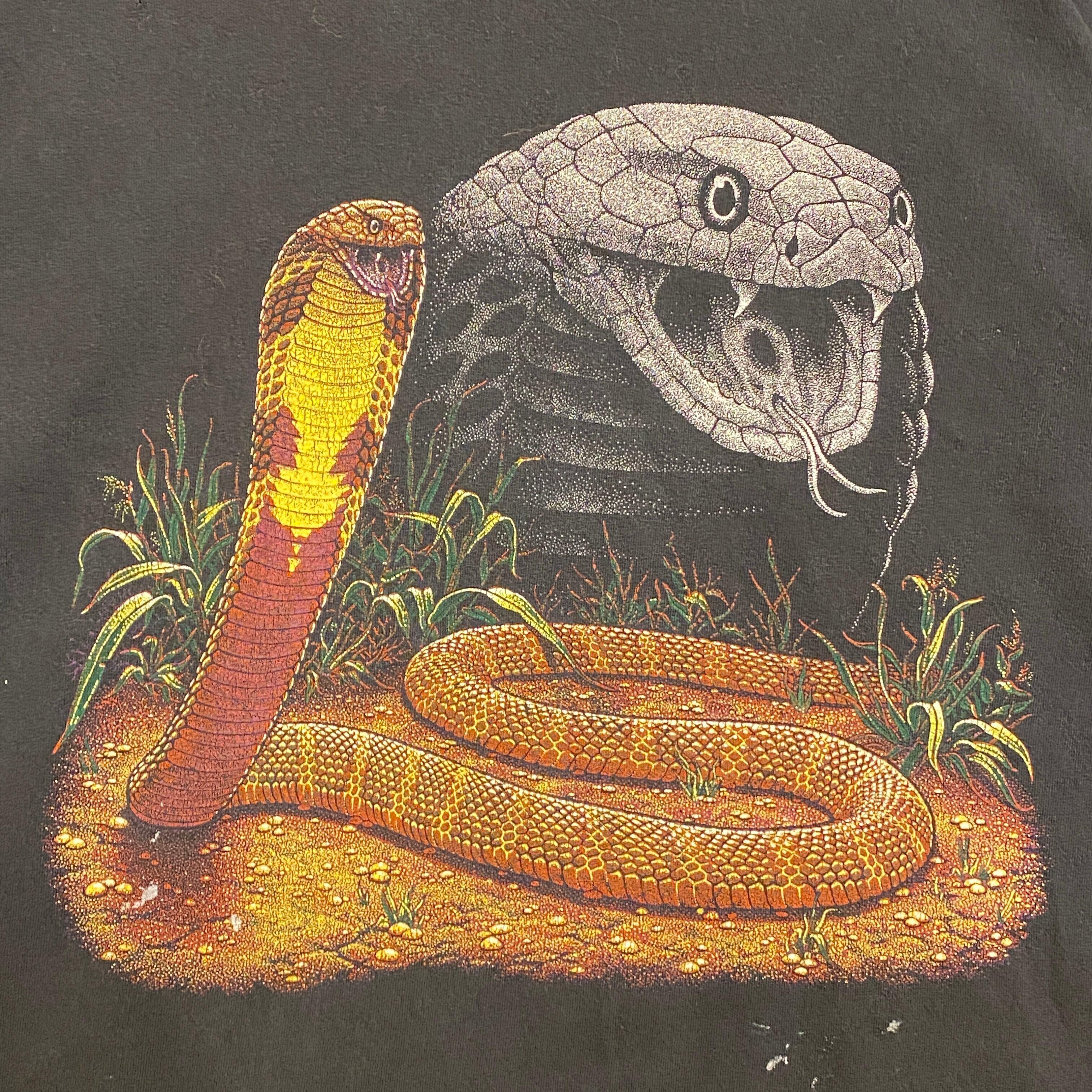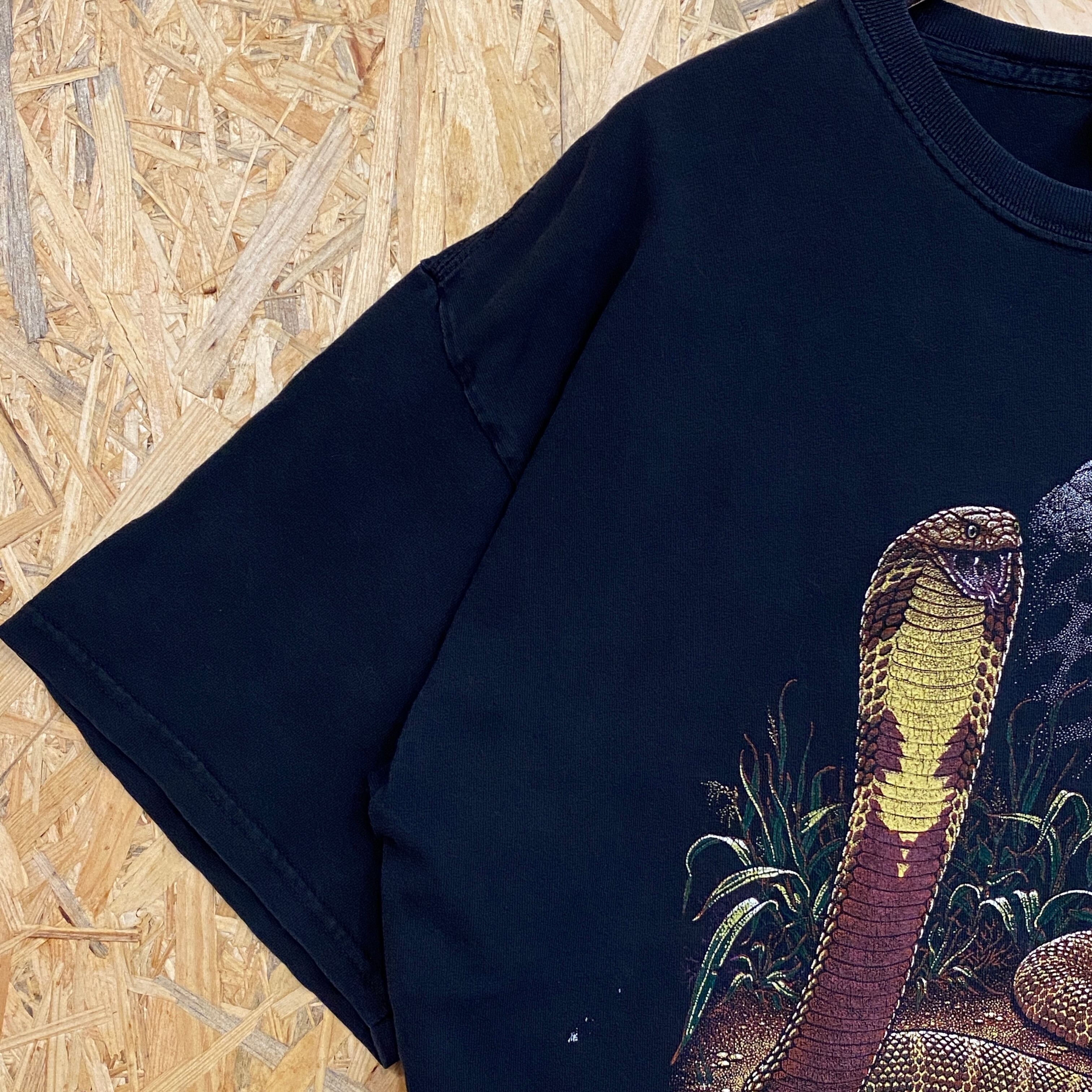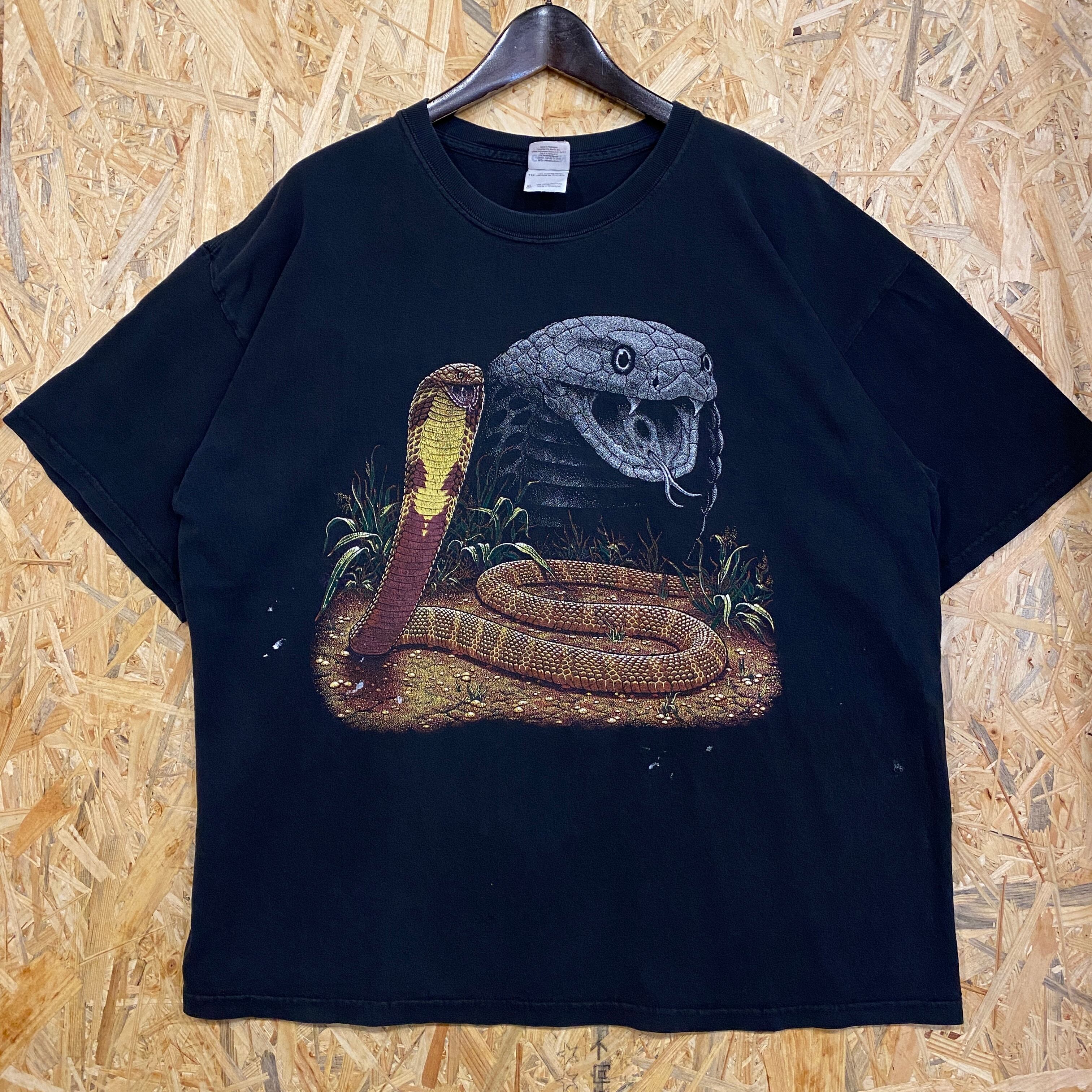 2451 00s 00年代 キングコブラ イラスト Tシャツ 蛇 アニマル GILAN ブラック 黒 スネーク 古着 メンズ vintage