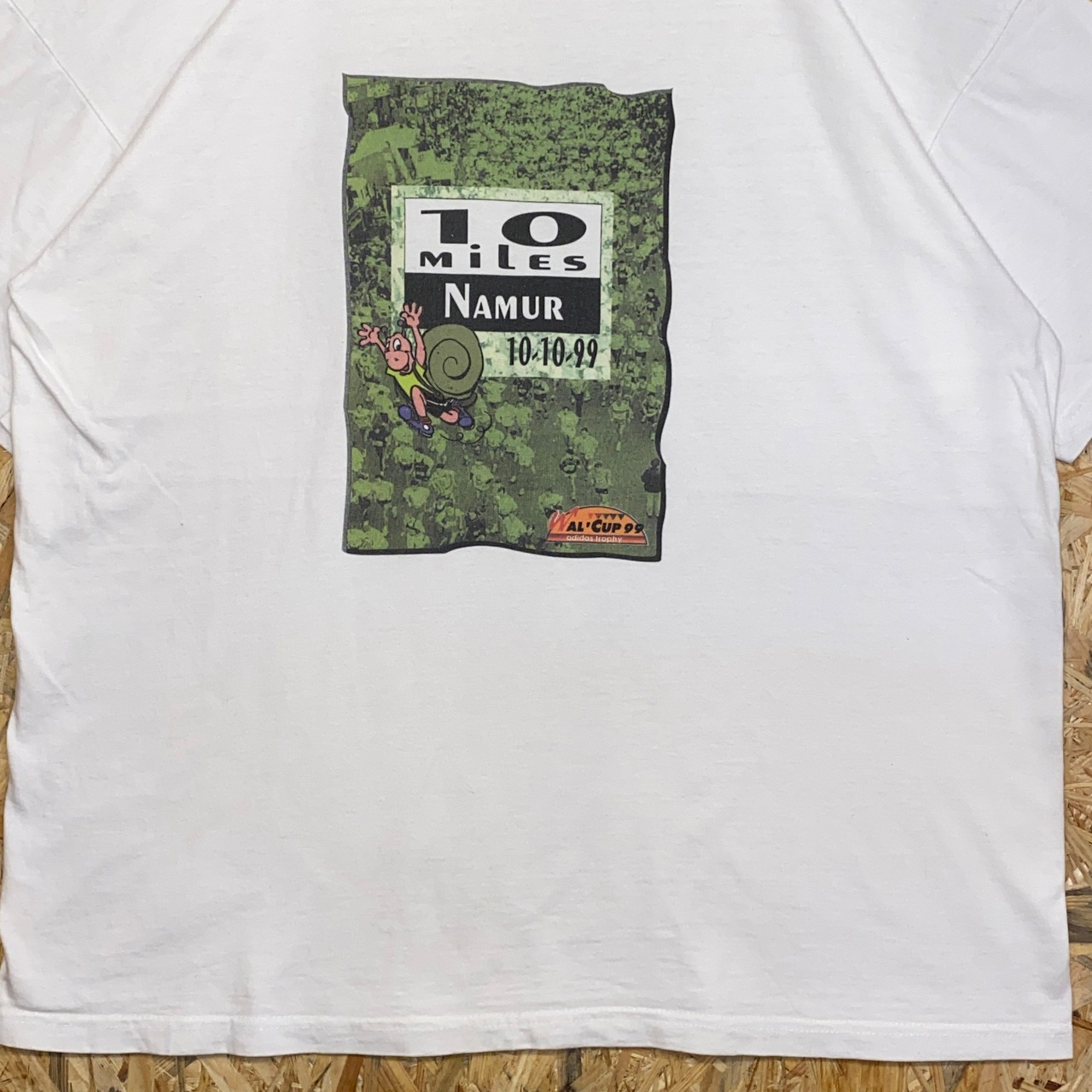 2453 90s 90年代 AL CUP 99 adidas trophy イベント Tシャツ カタツムリ グラフィック 10マイル ホワイト 白 古着 メンズ vintage b&c