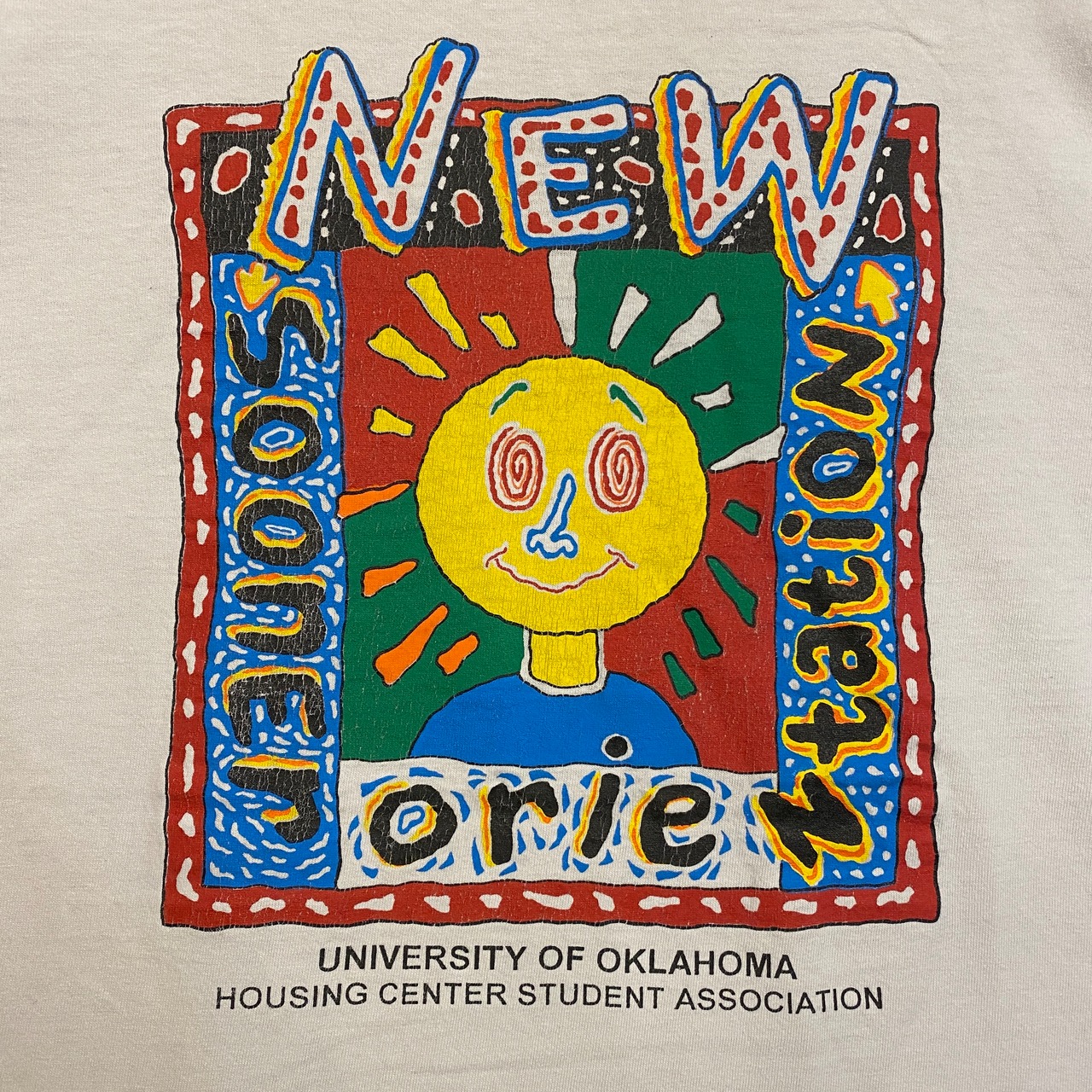 2455 90s 90年代 オクラホマ大学 イベント 記念 Tシャツ Sooner 太陽 グラフィック イラスト カラフル ホワイト 白 シングルステッチ 古着 メンズ vintage