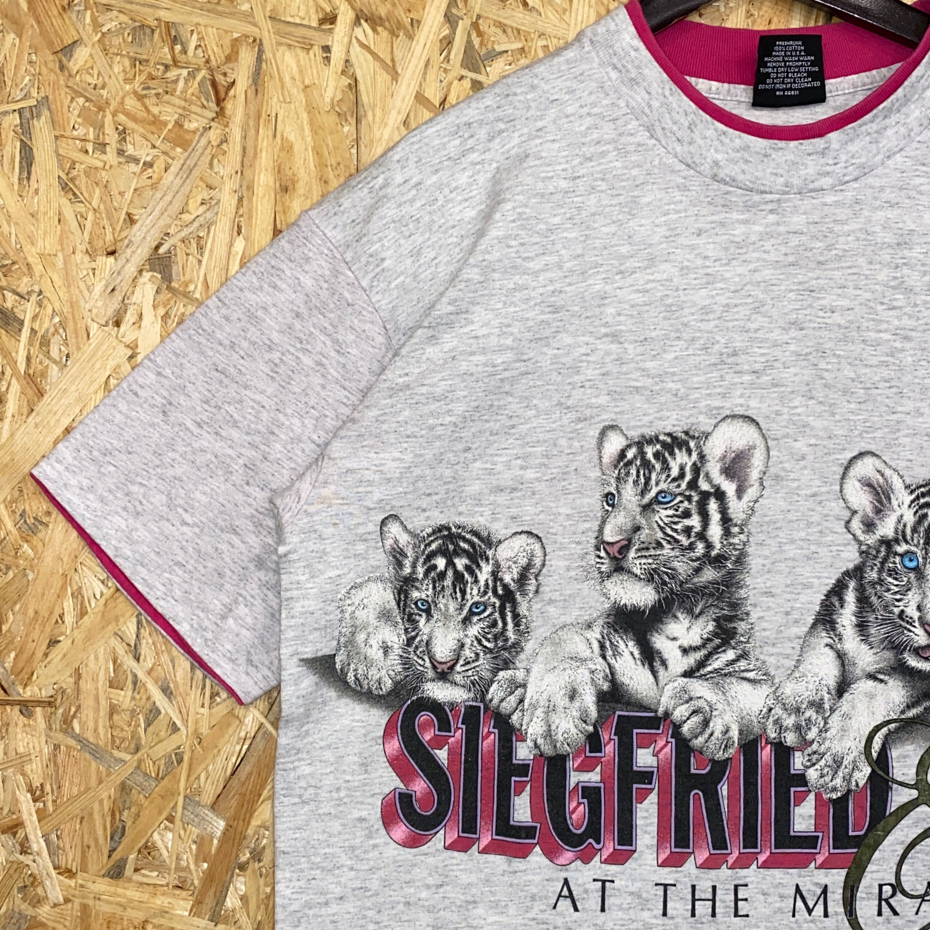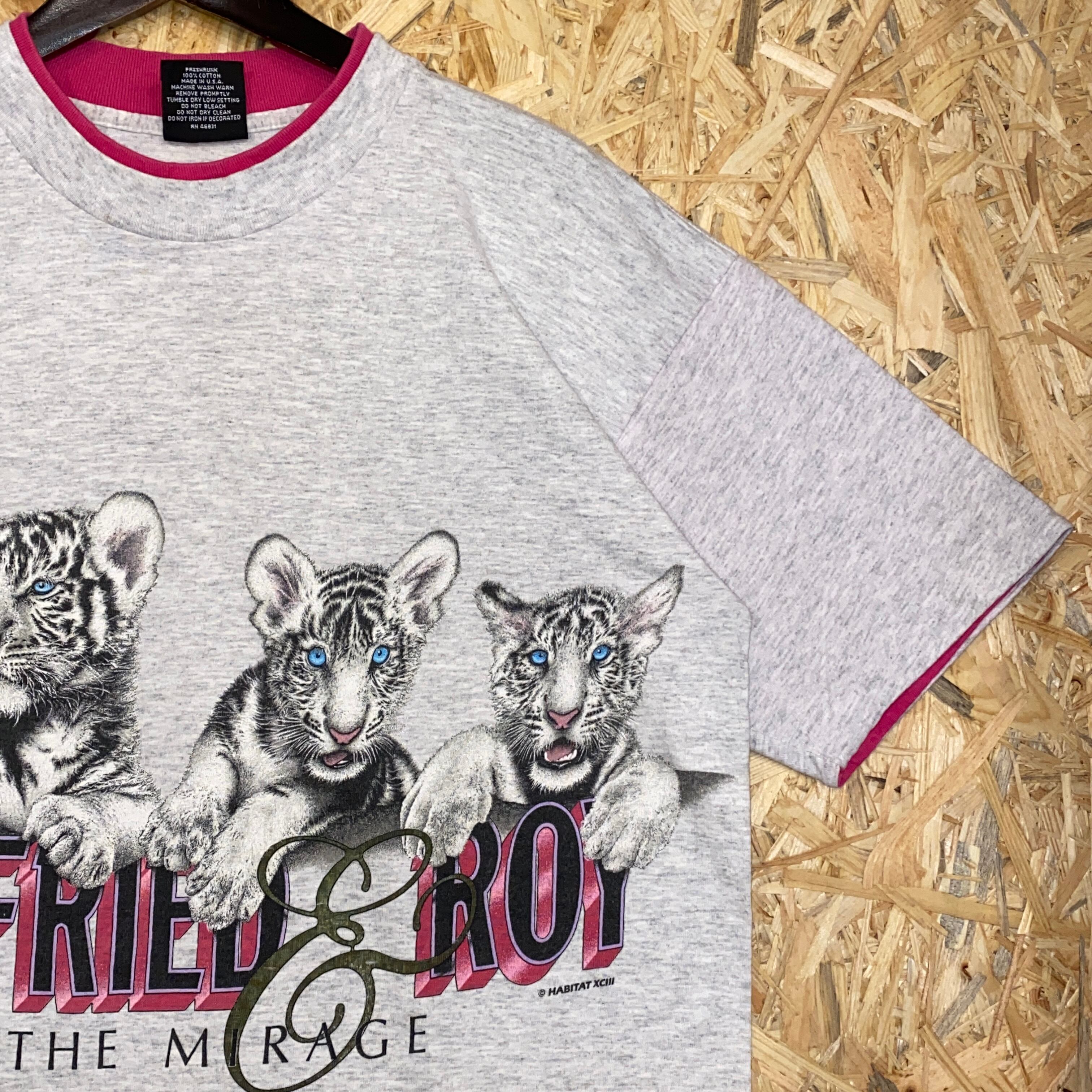 2456 90s 90年代 USA製 ホワイト タイガー アニマル Tシャツ ジークフリート&ロイ ラスベガス ミラージュ ショー 両面 プリント シングルステッチ 古着 メンズ vintage