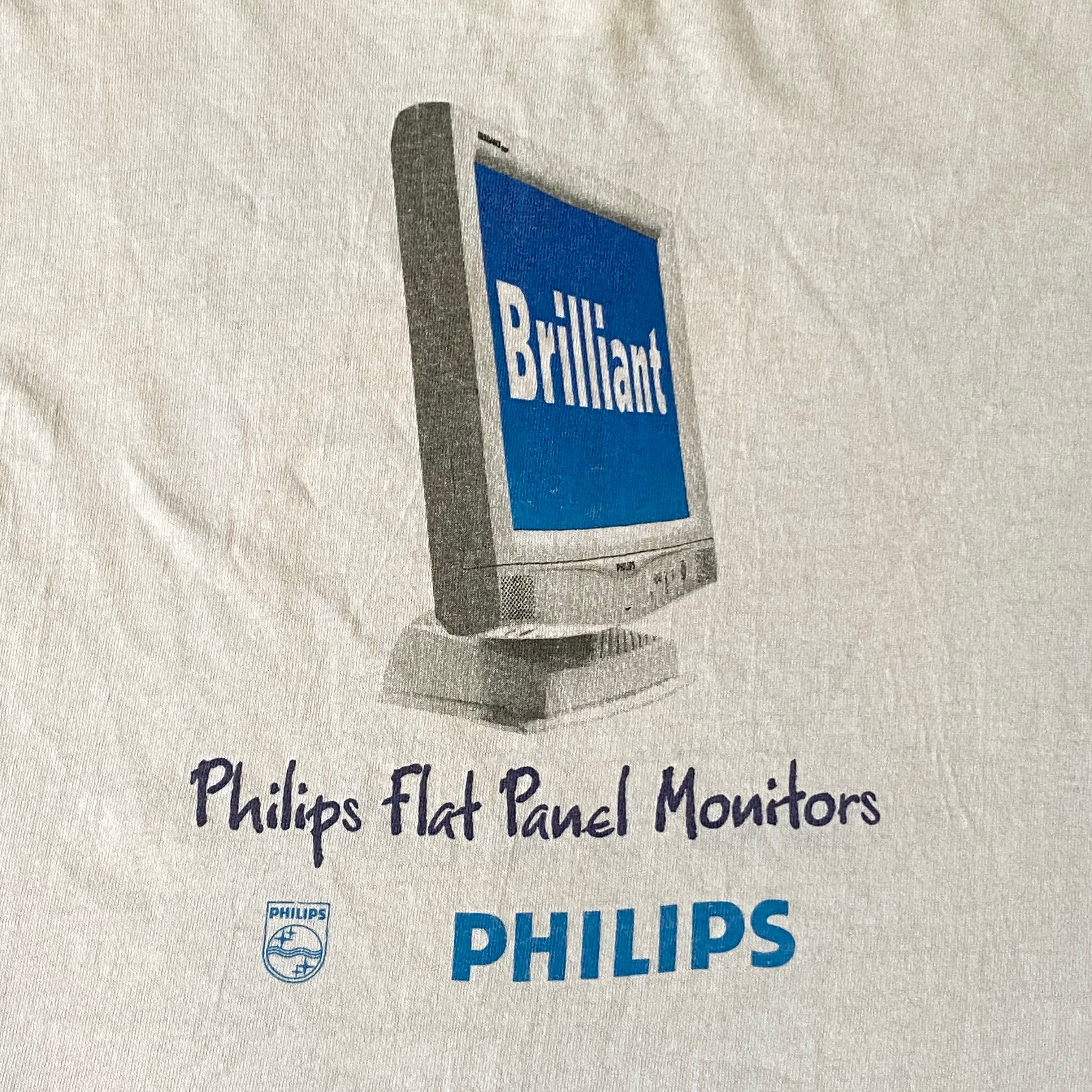 2458 90s〜 90年代〜 USA製 PHILIPS 企業 Tシャツ 両面 プリント Hanes パソコン ホワイト 白 古着 メンズ vintage