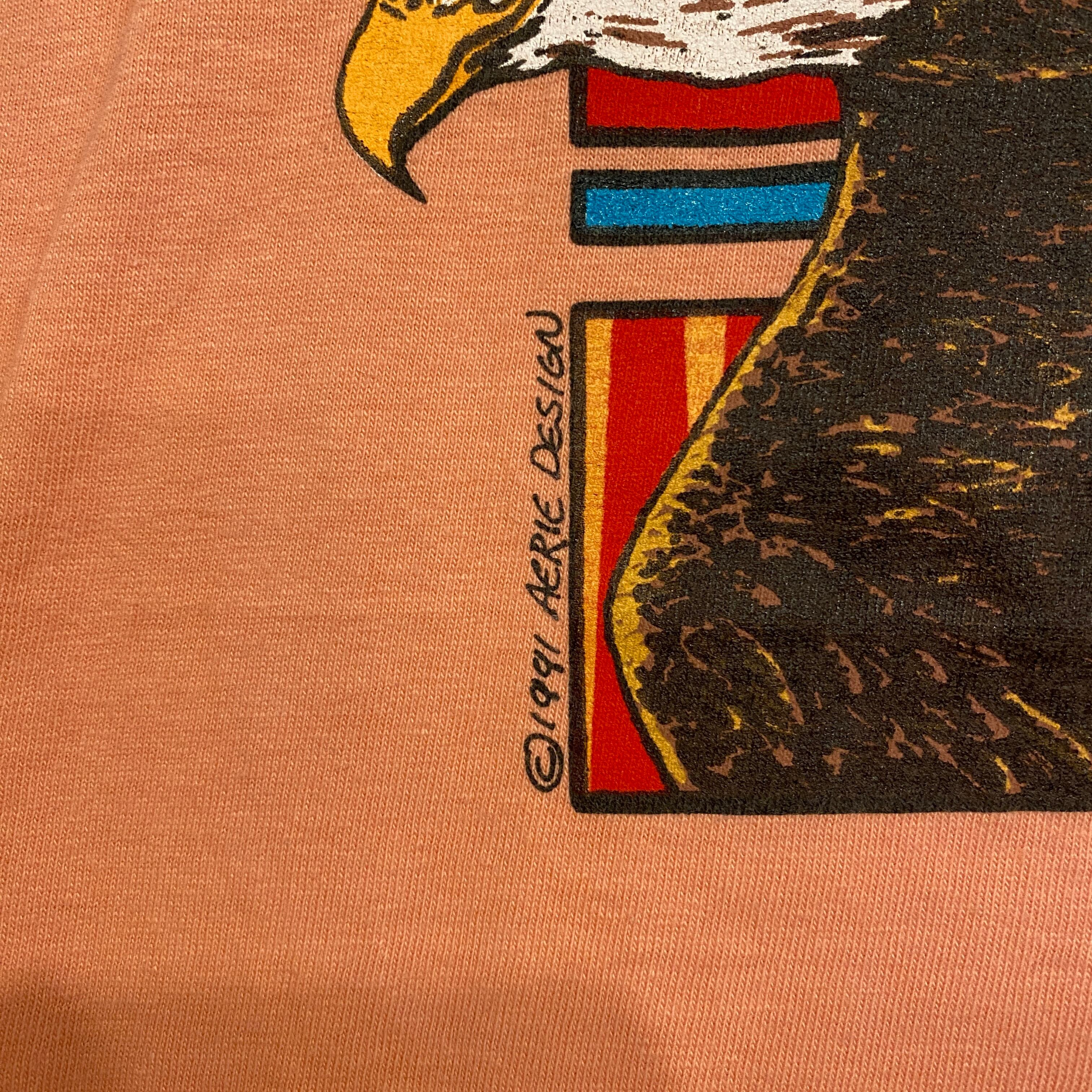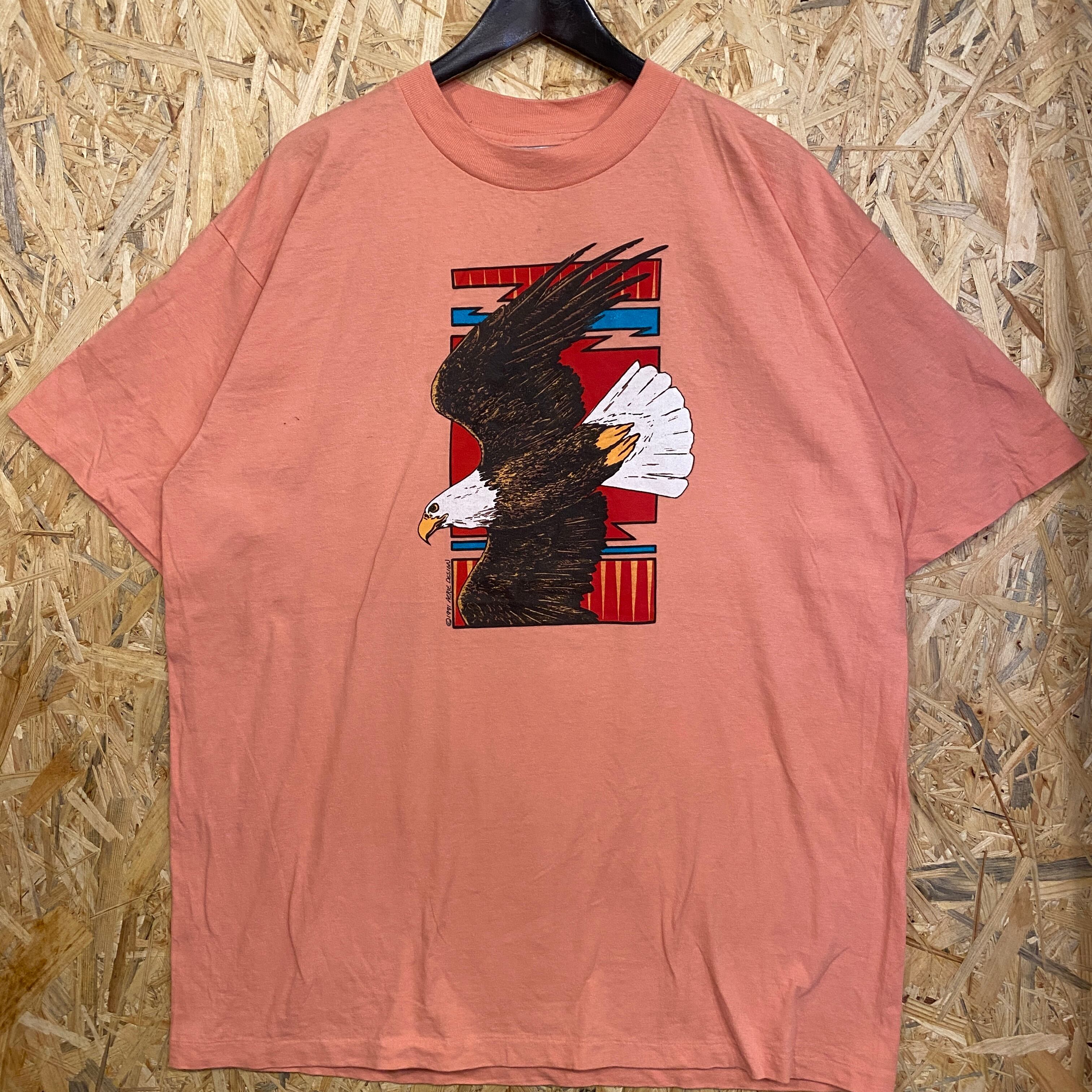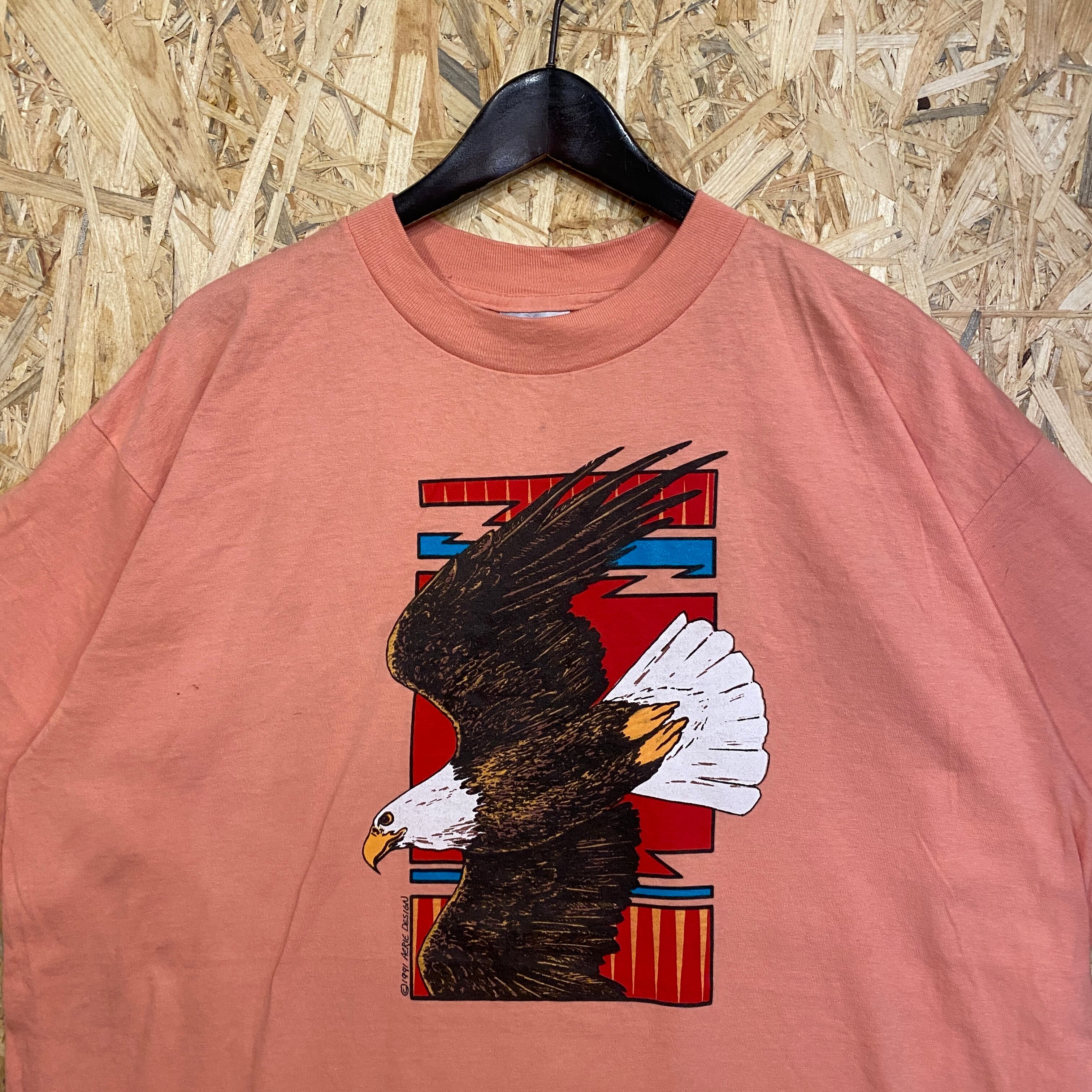 2460 90s 90年代 USA製 ワシ プリント Tシャツ 白頭鷲 アニマル 自然 アウトドア シングルステッチ ピンク 古着 メンズ vintage 1991s