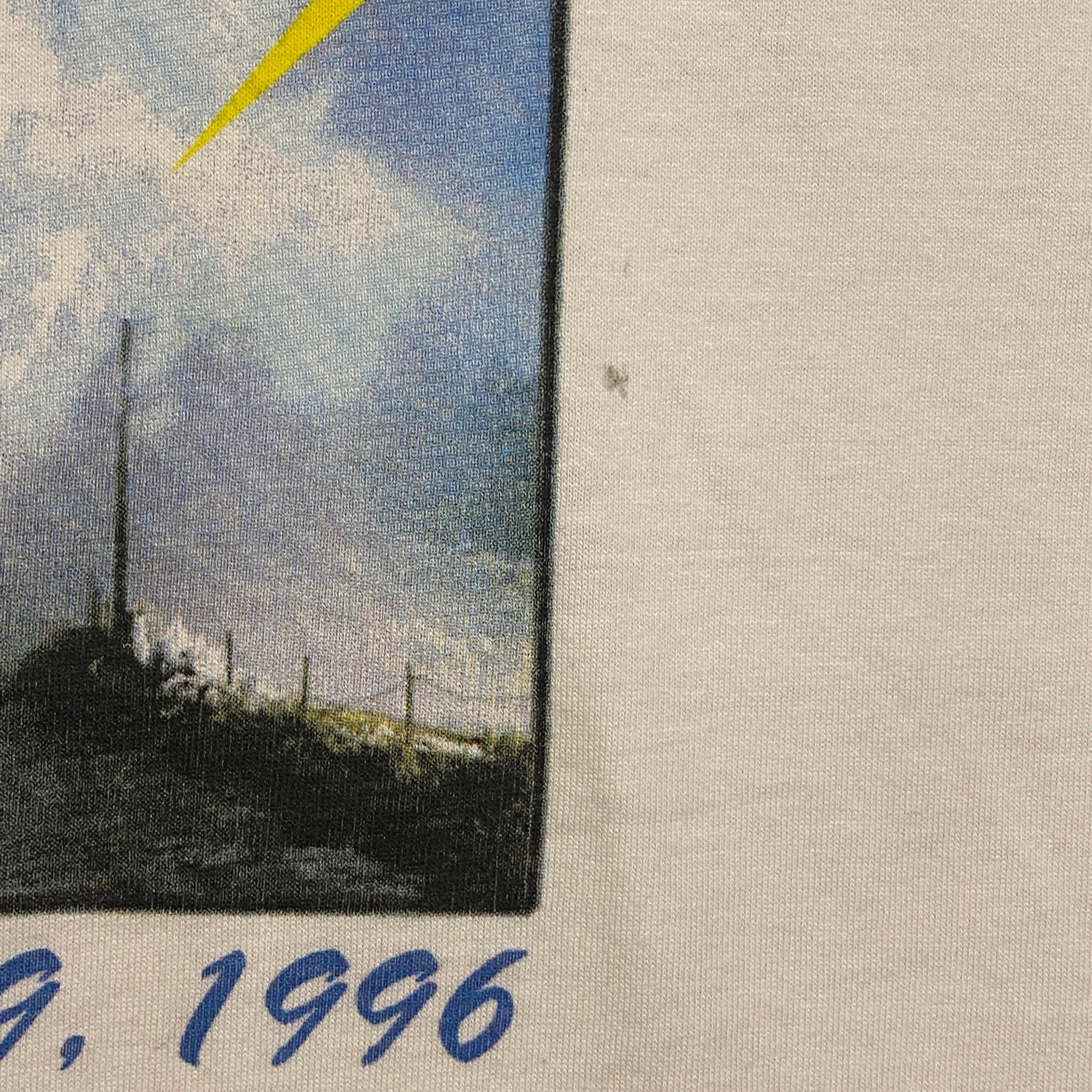 2484 90s〜 90年代〜 USA製 Hanes ヘインズ グラフィック プリント Tシャツ ゲーム グッズ ホワイト 白 EMERGENCY 古着 メンズ vintage