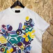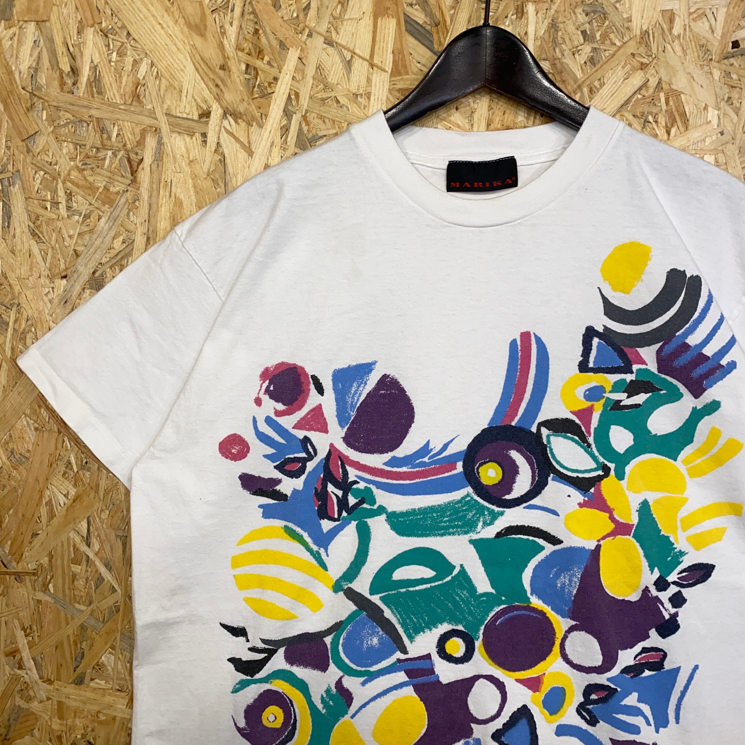 2497 90s 90年代 USA製 MARIKA 花柄 抽象画 アート Tシャツ グラフィック シングルステッチ 白 ホワイト 古着 メンズ vintage