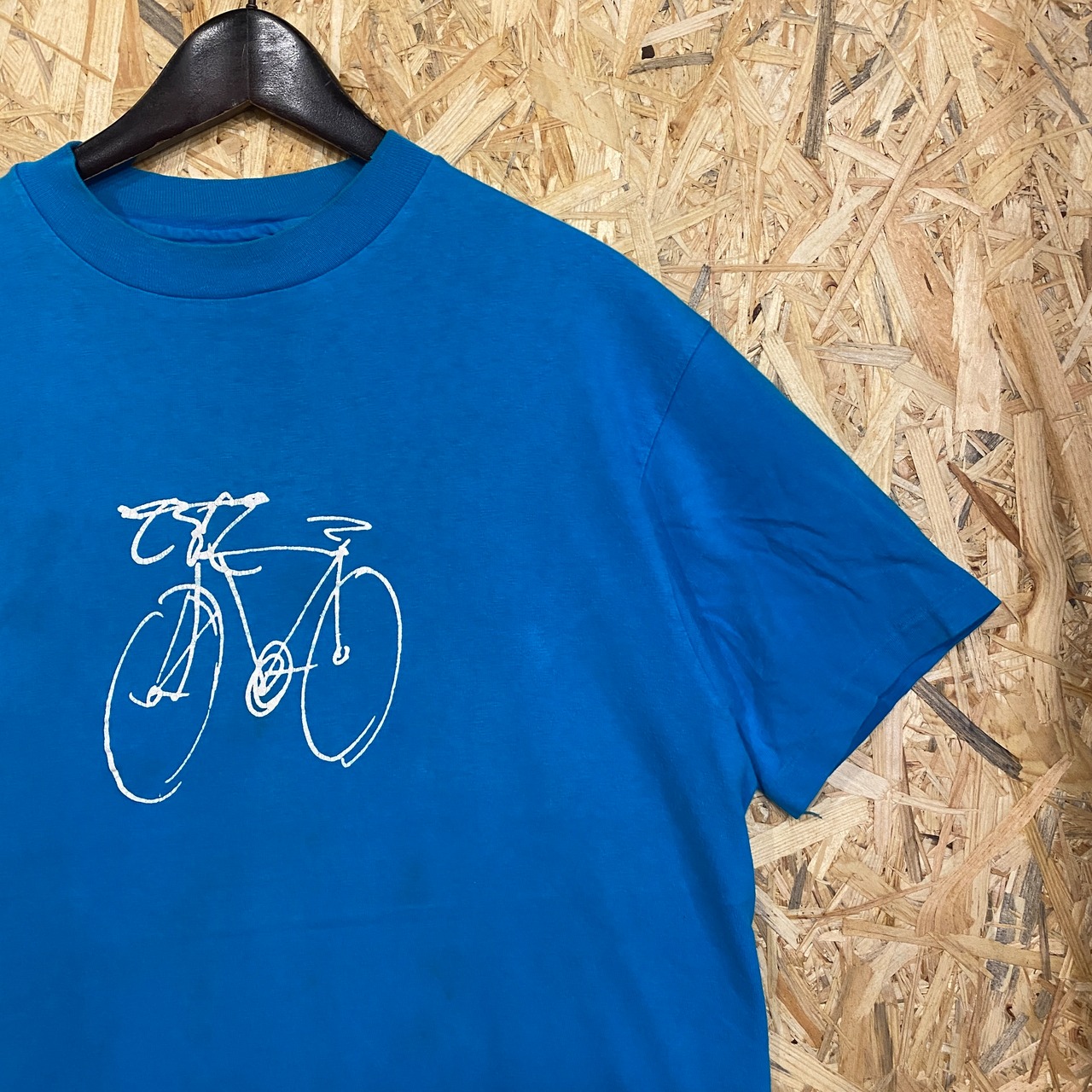 2499 90s 90年代 USA製 ロードバイク 自転車 イラスト Tシャツ アート 両面 プリント シングルステッチ 青 古着 メンズ vintage