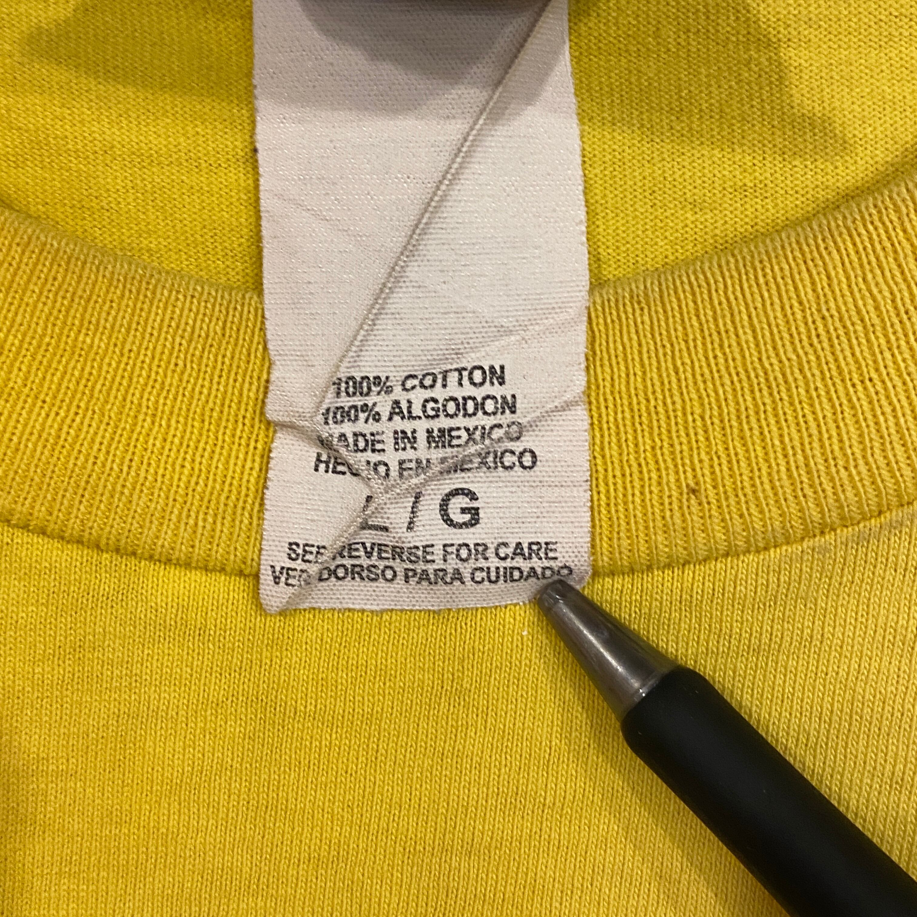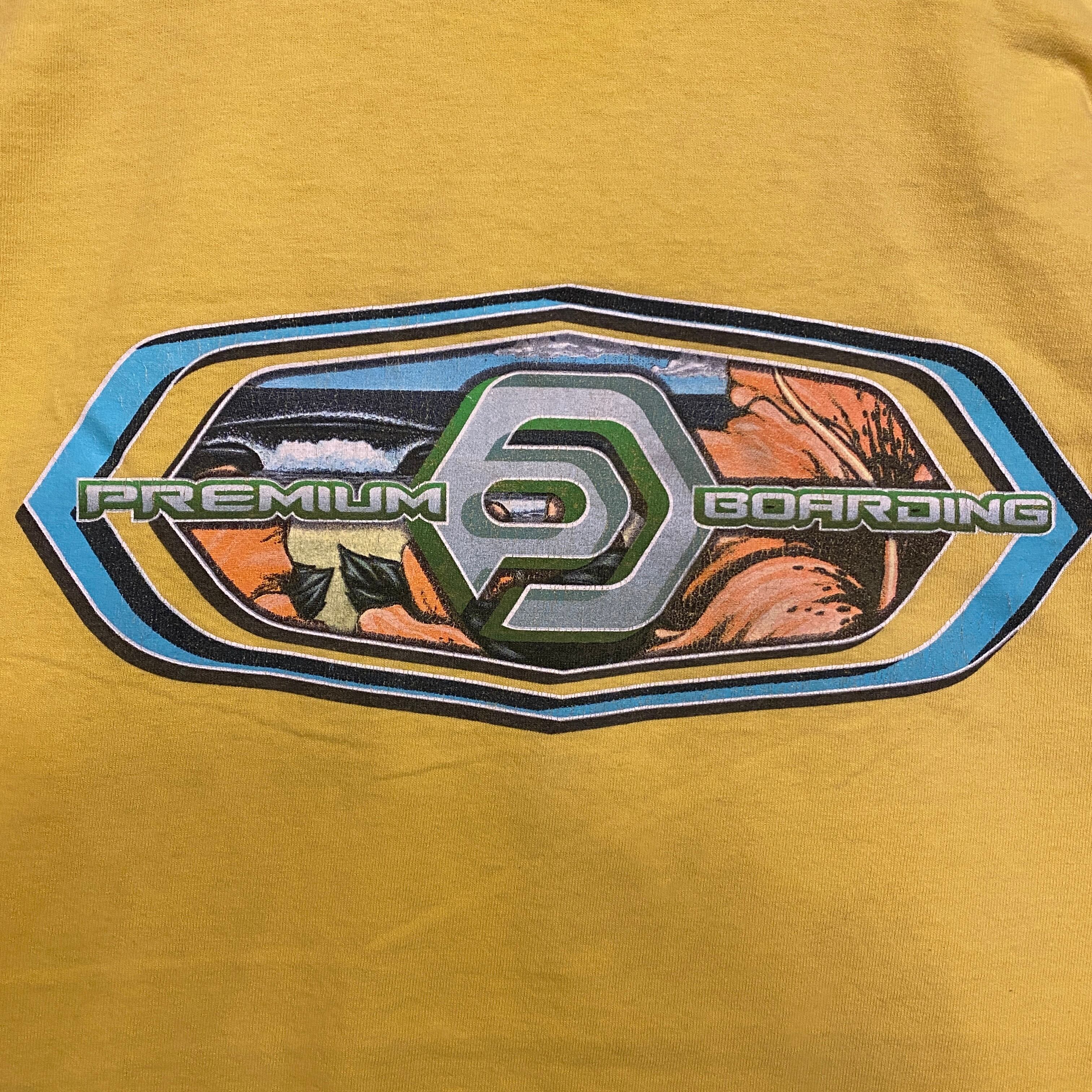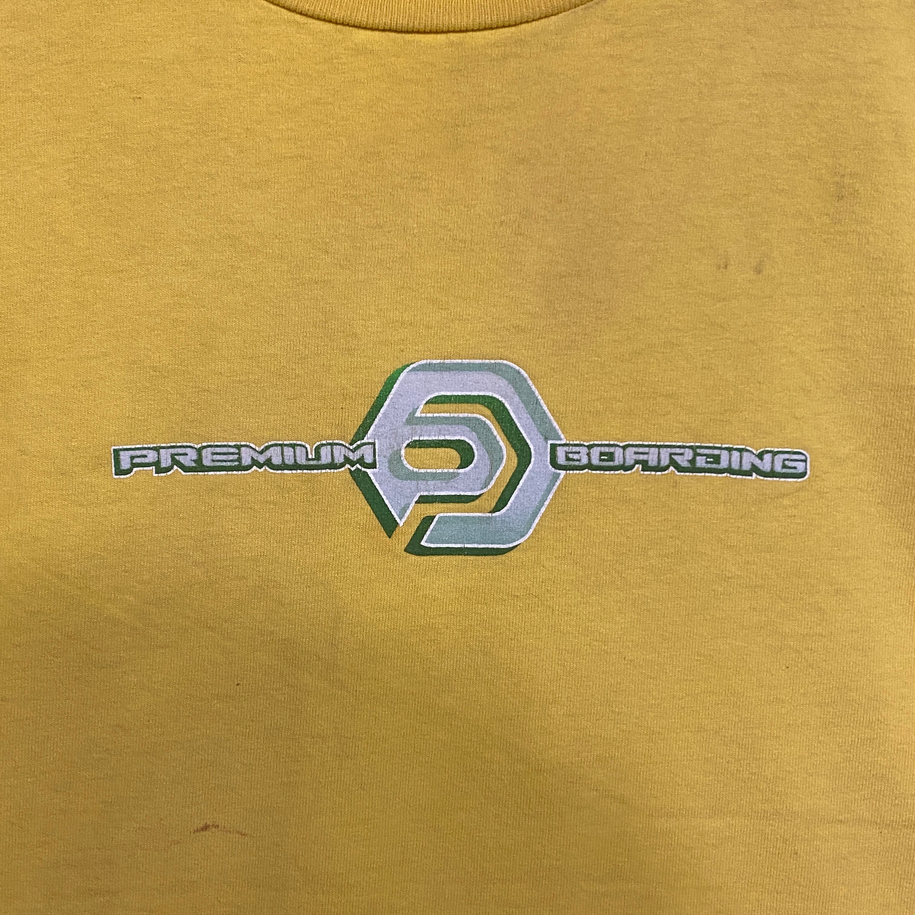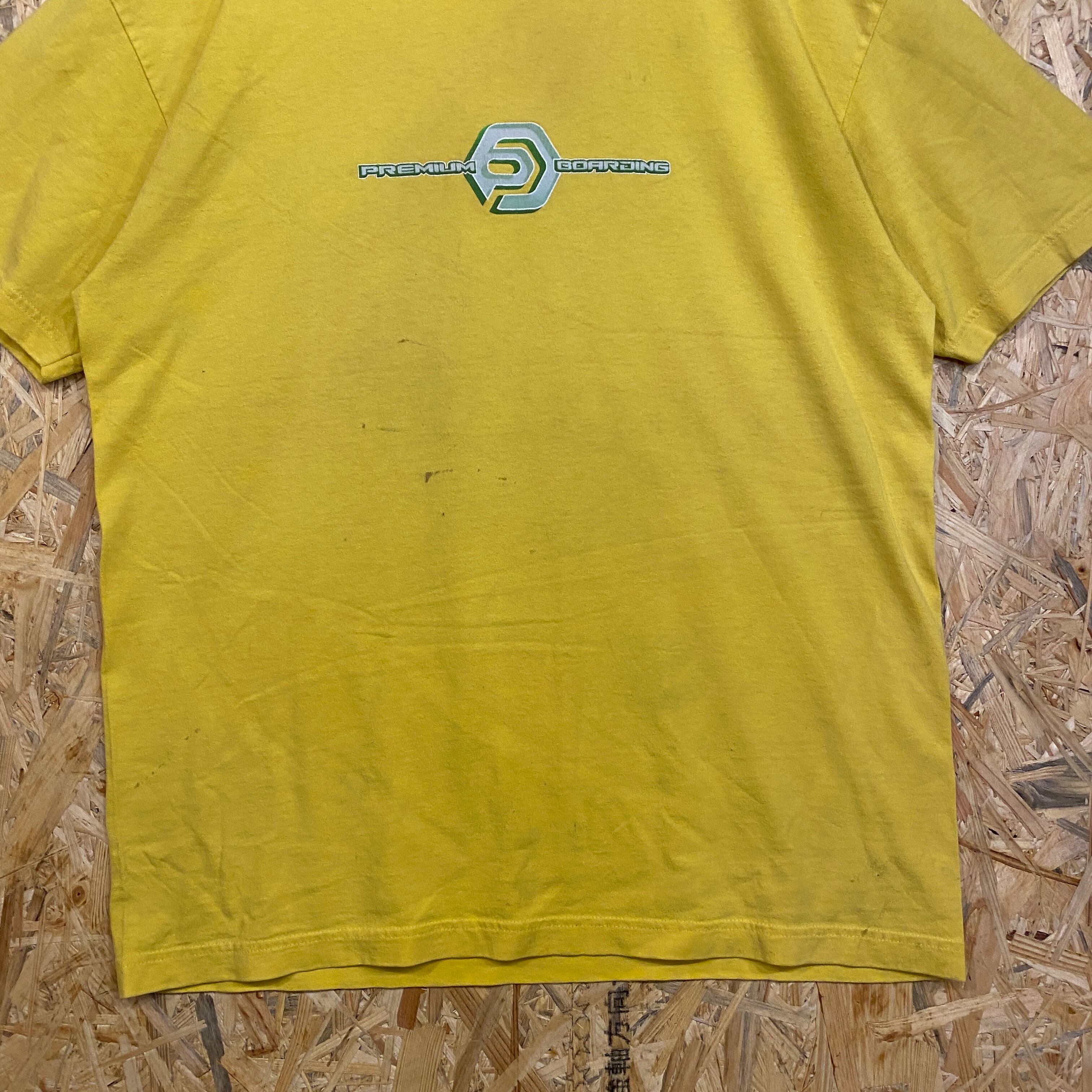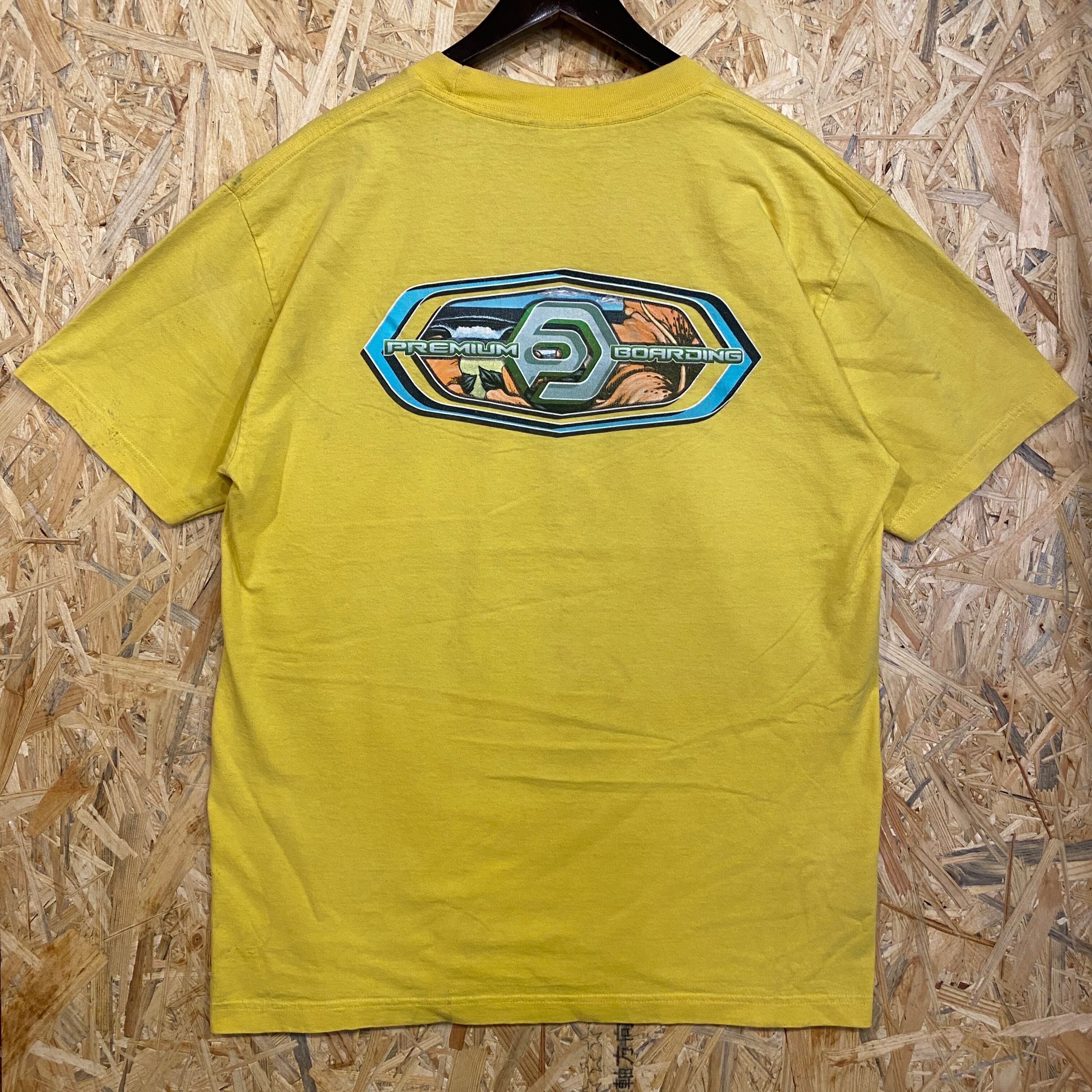 2512 90s 90年代 オーシャンパシフィック PREMIUM BOARDING ロゴ Tシャツ OP 両面 プリント サーフィン Ocean Pacific 黄色 イエロー 古着 メンズ vintage