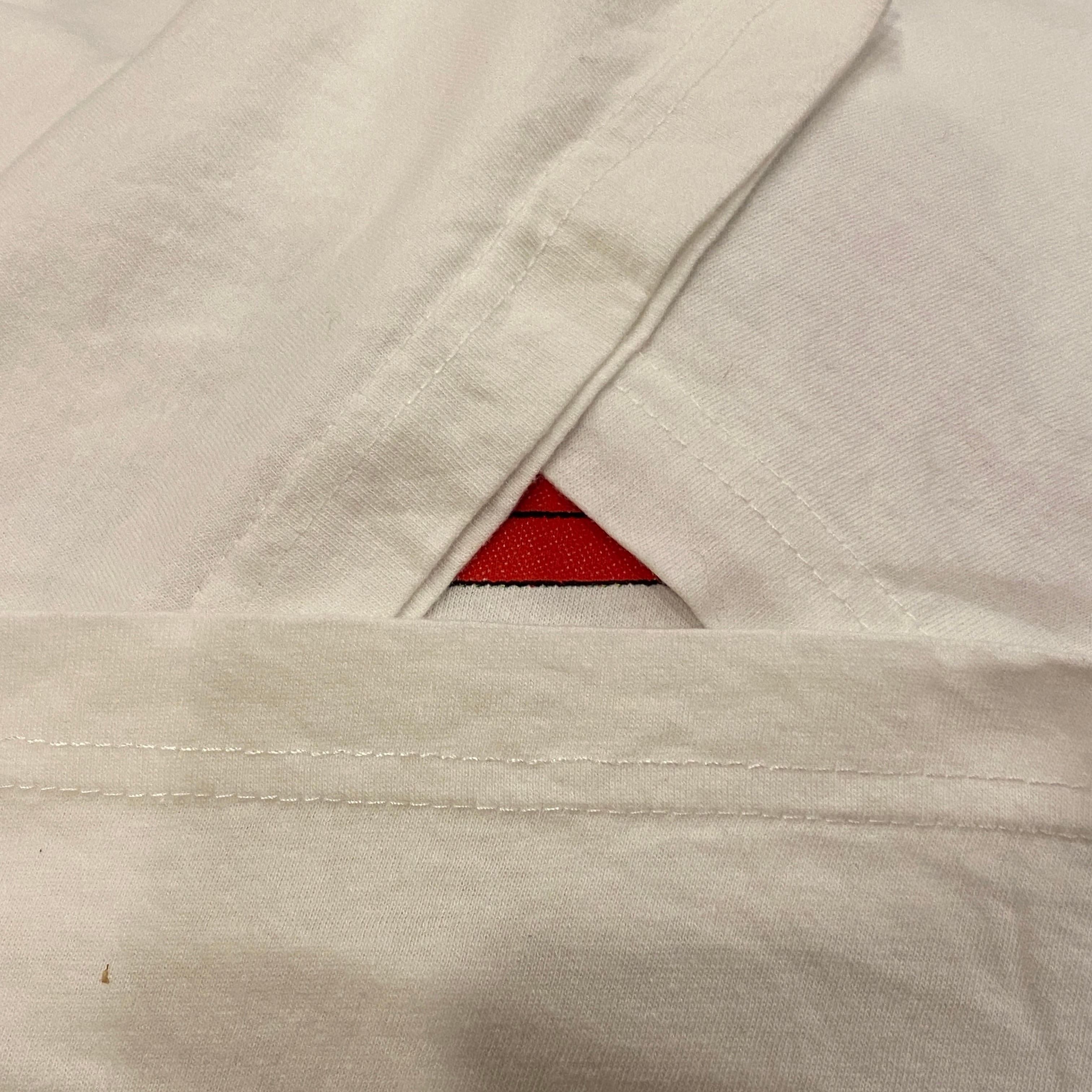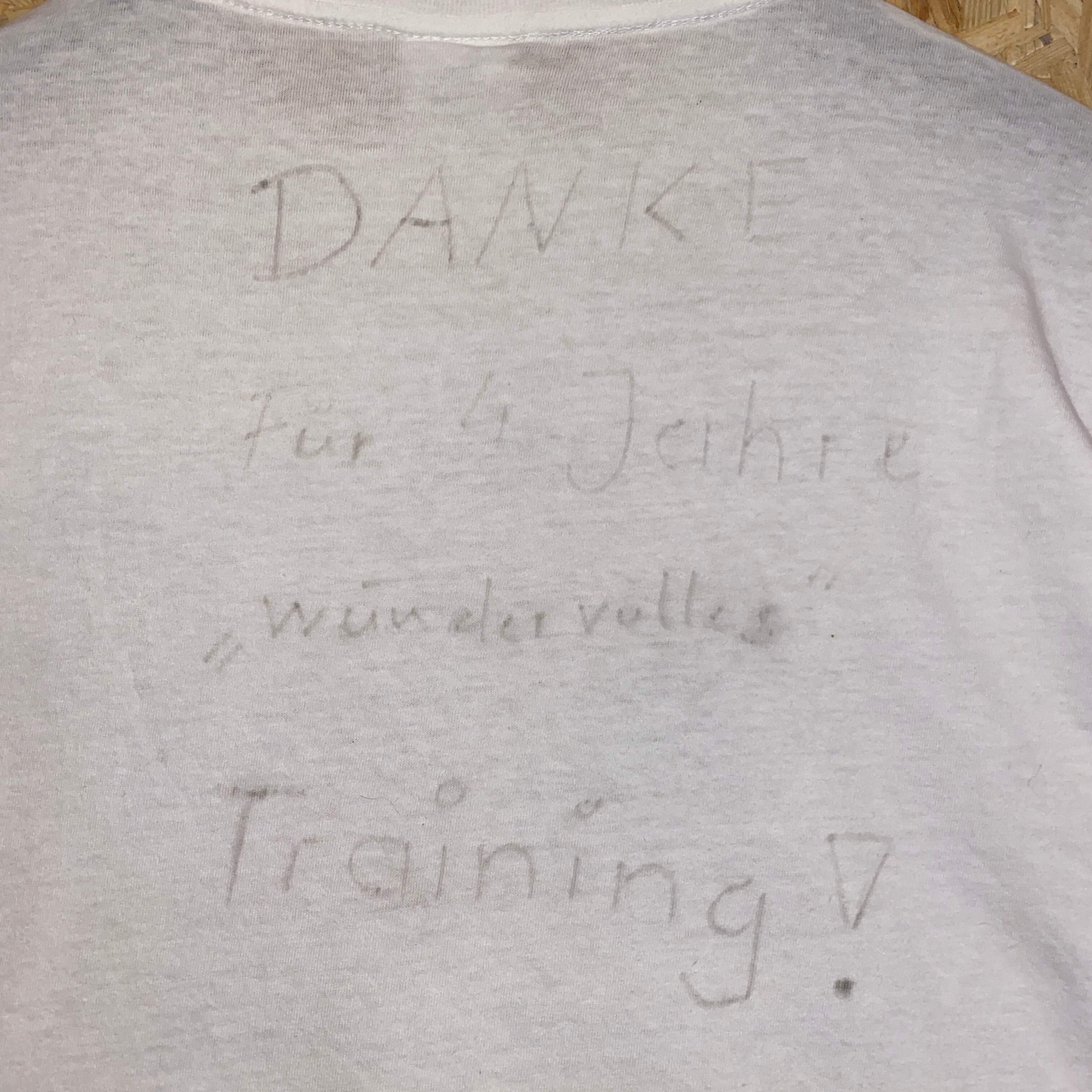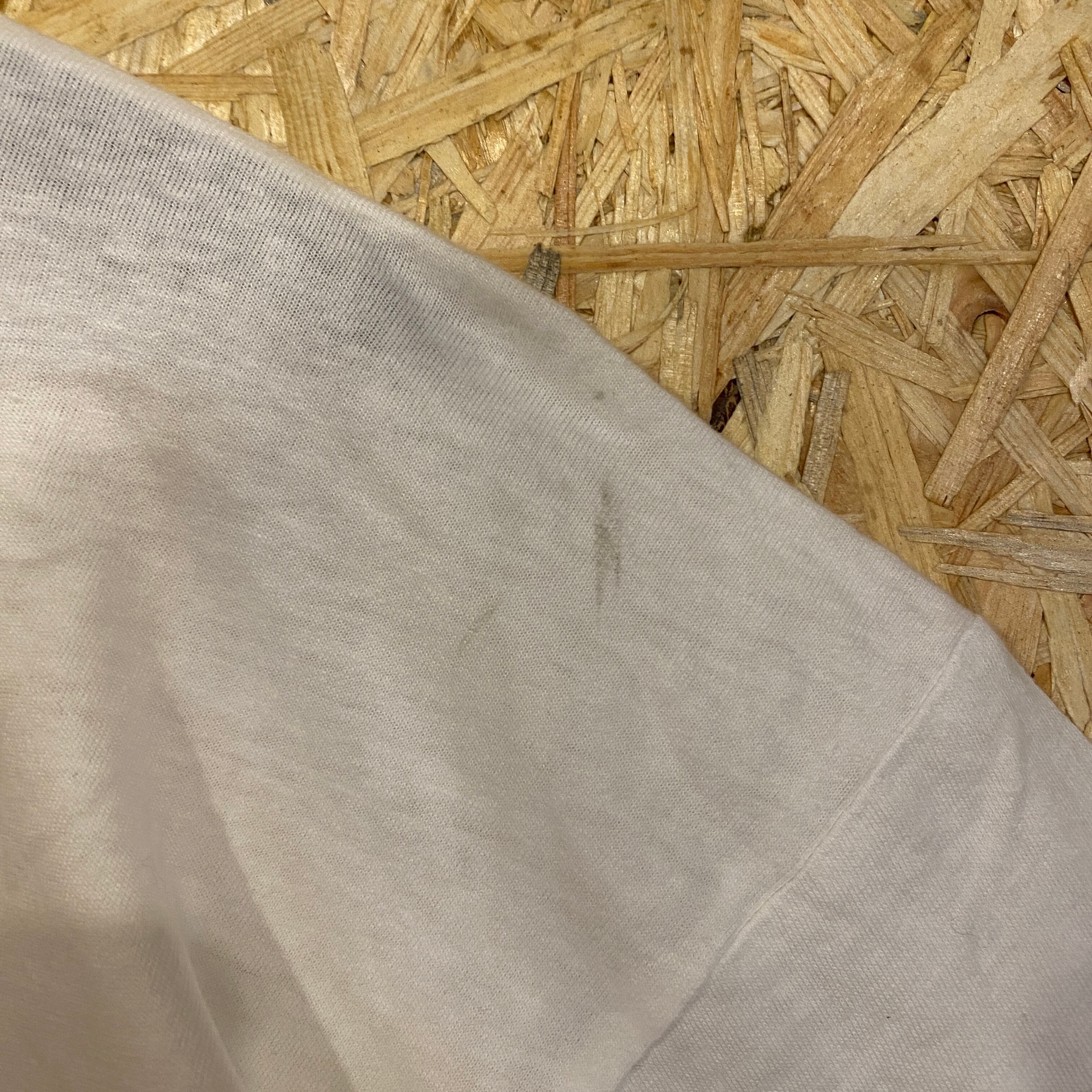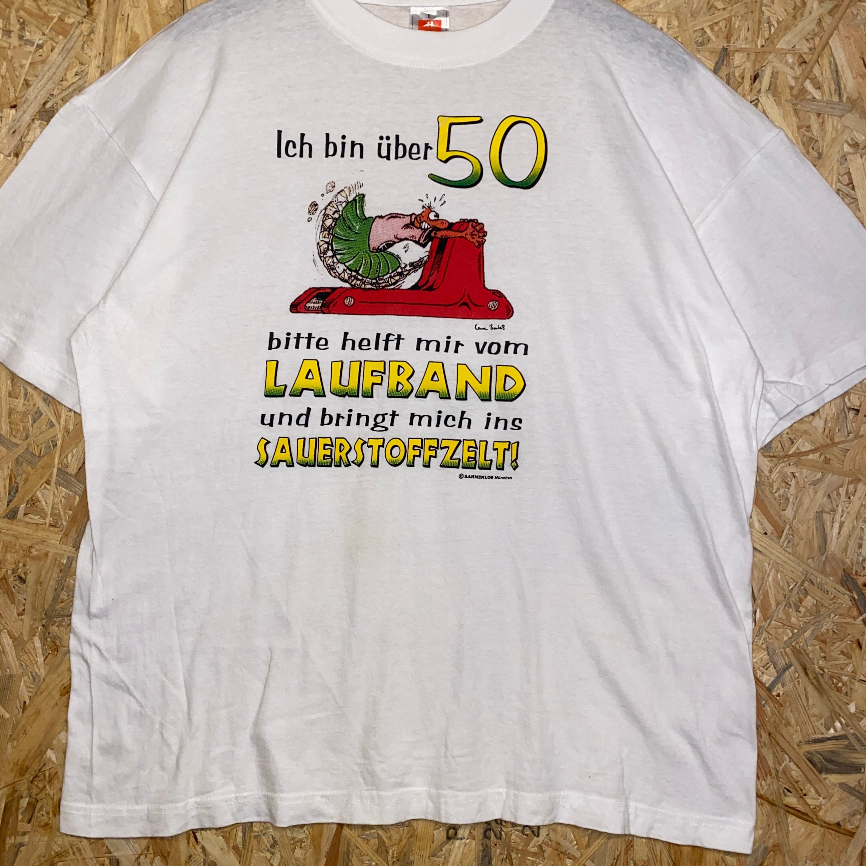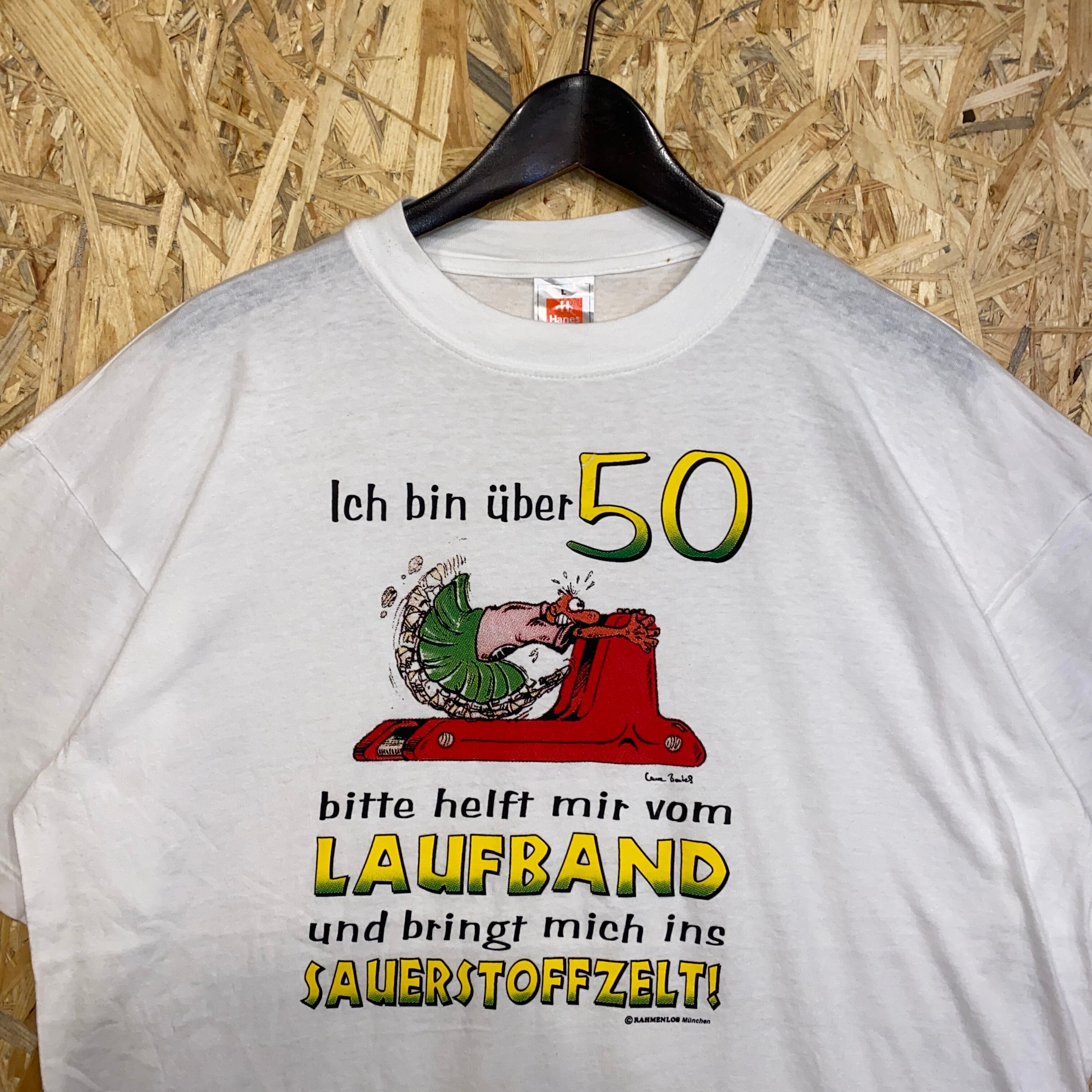2516 00s 00年代 トレッドミル イラスト Tシャツ ユーモア アート メッセージ ドイツ語 Hanes QUALY 白 ホワイト 古着 メンズ vintage