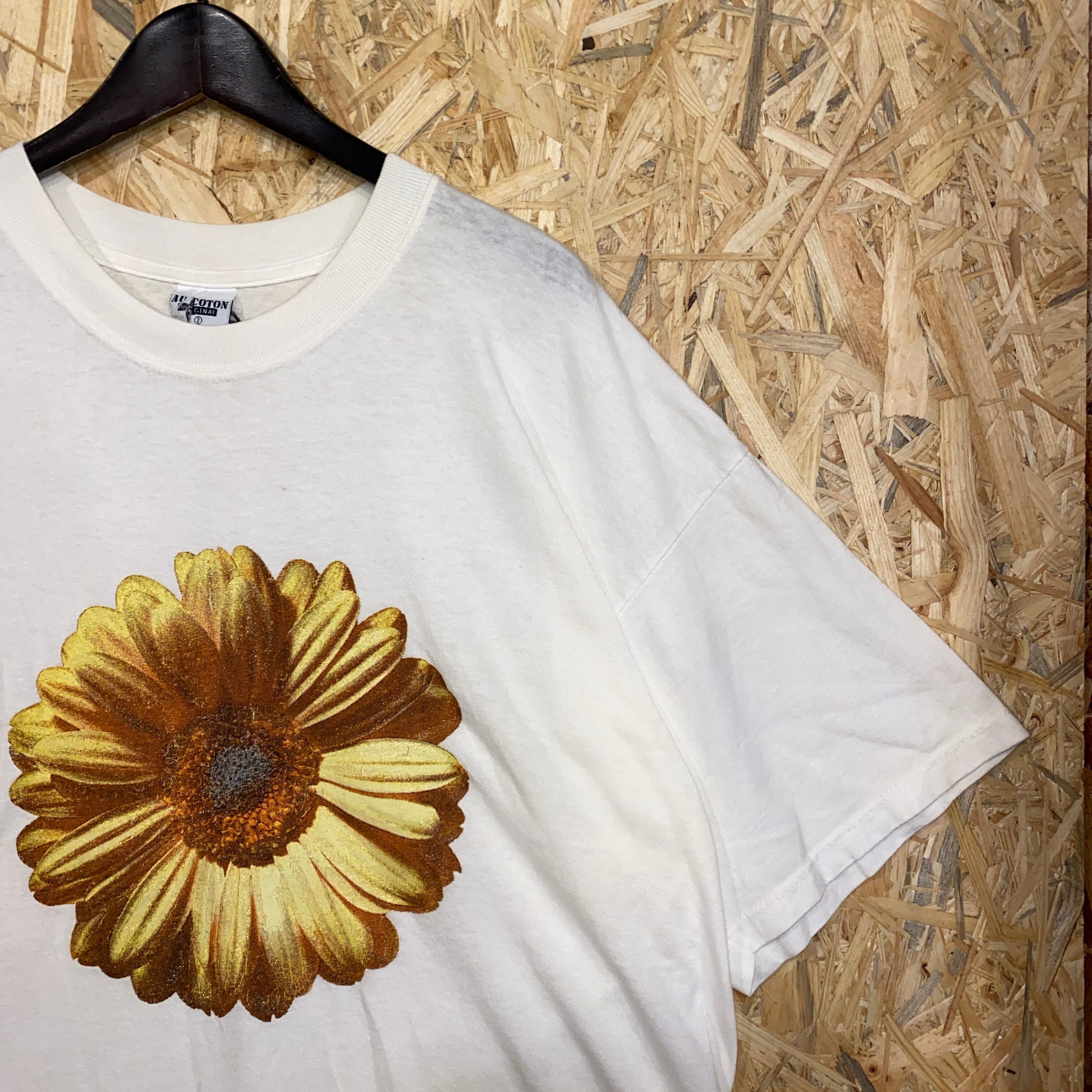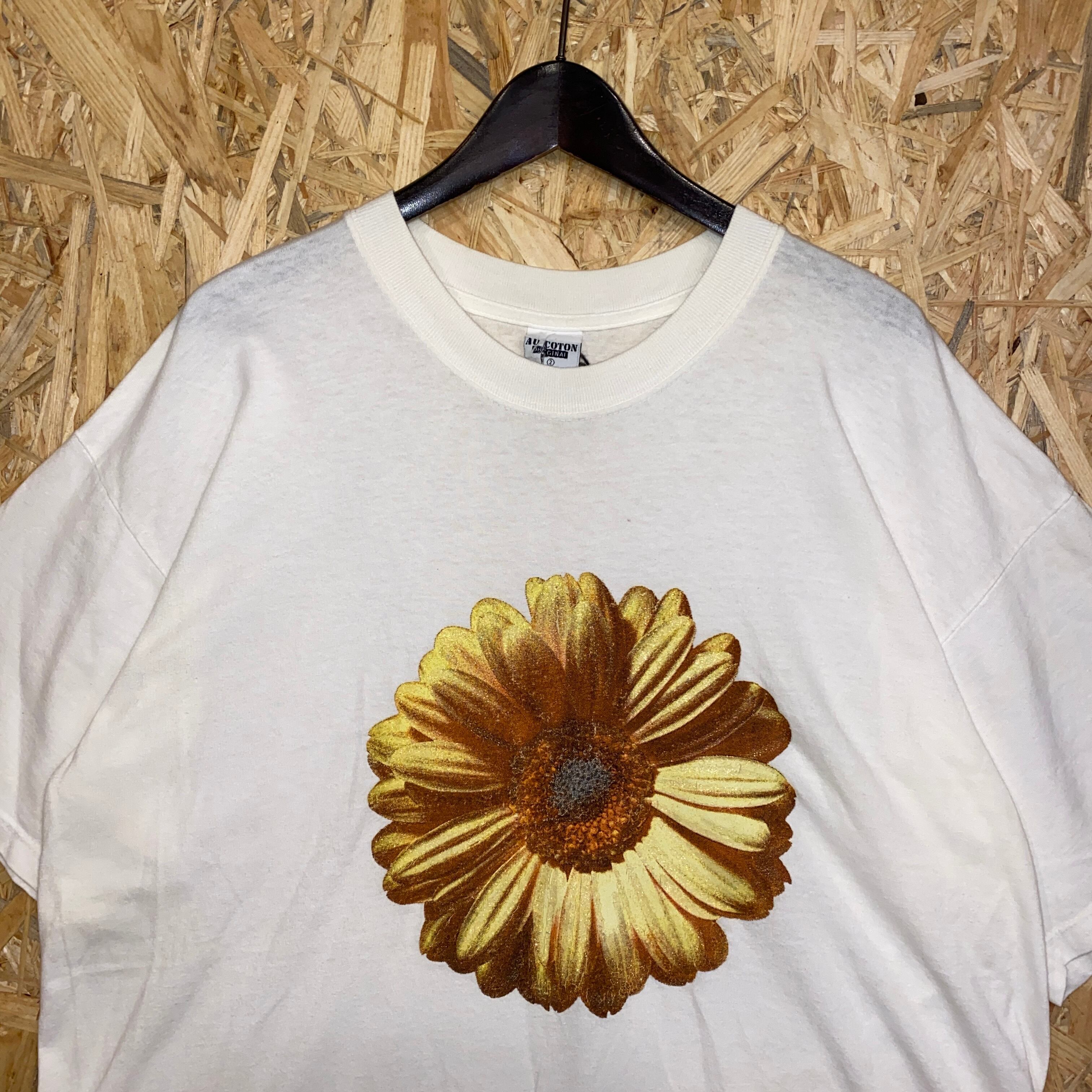 2517 90s〜00s 90年代〜00年代 カナダ製 ひまわり ガーベラ プリント Tシャツ 花柄 向日葵 白 ホワイト 古着 メンズ vintage