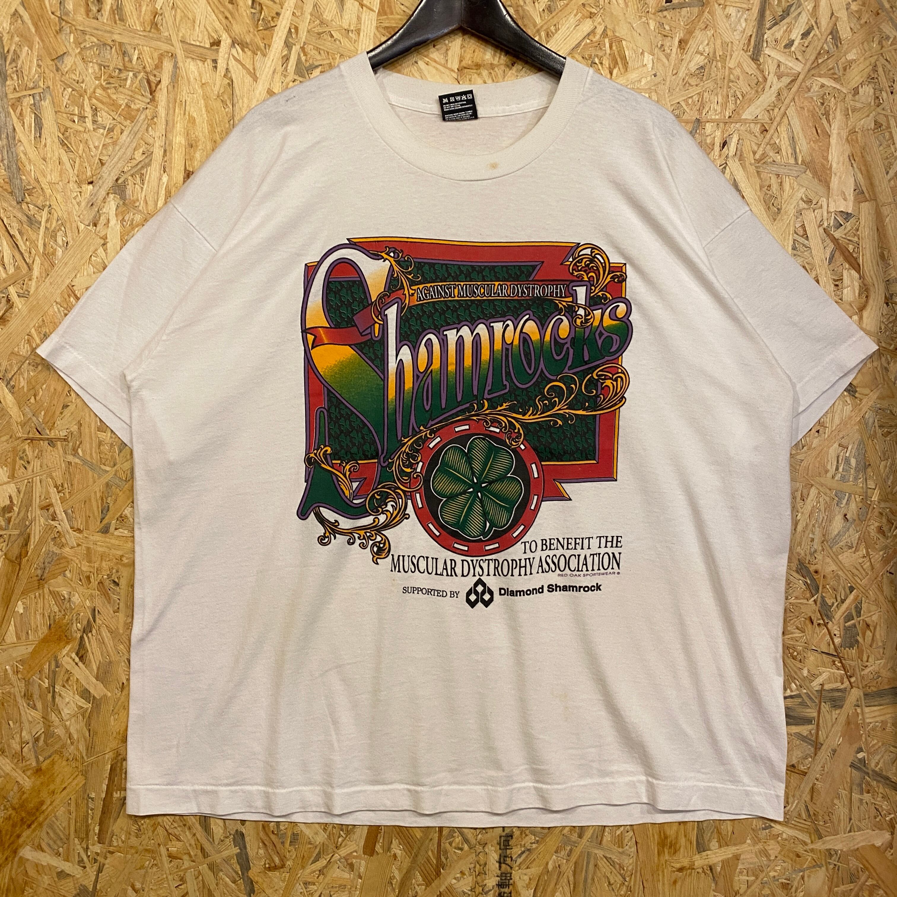 2520 90s〜 90年代〜 FRUIT OF THE ROOM USA製 チャリーティー プリント Tシャツ 協会 クローバー ホワイト 白 シングルステッチ 古着 メンズ vintage