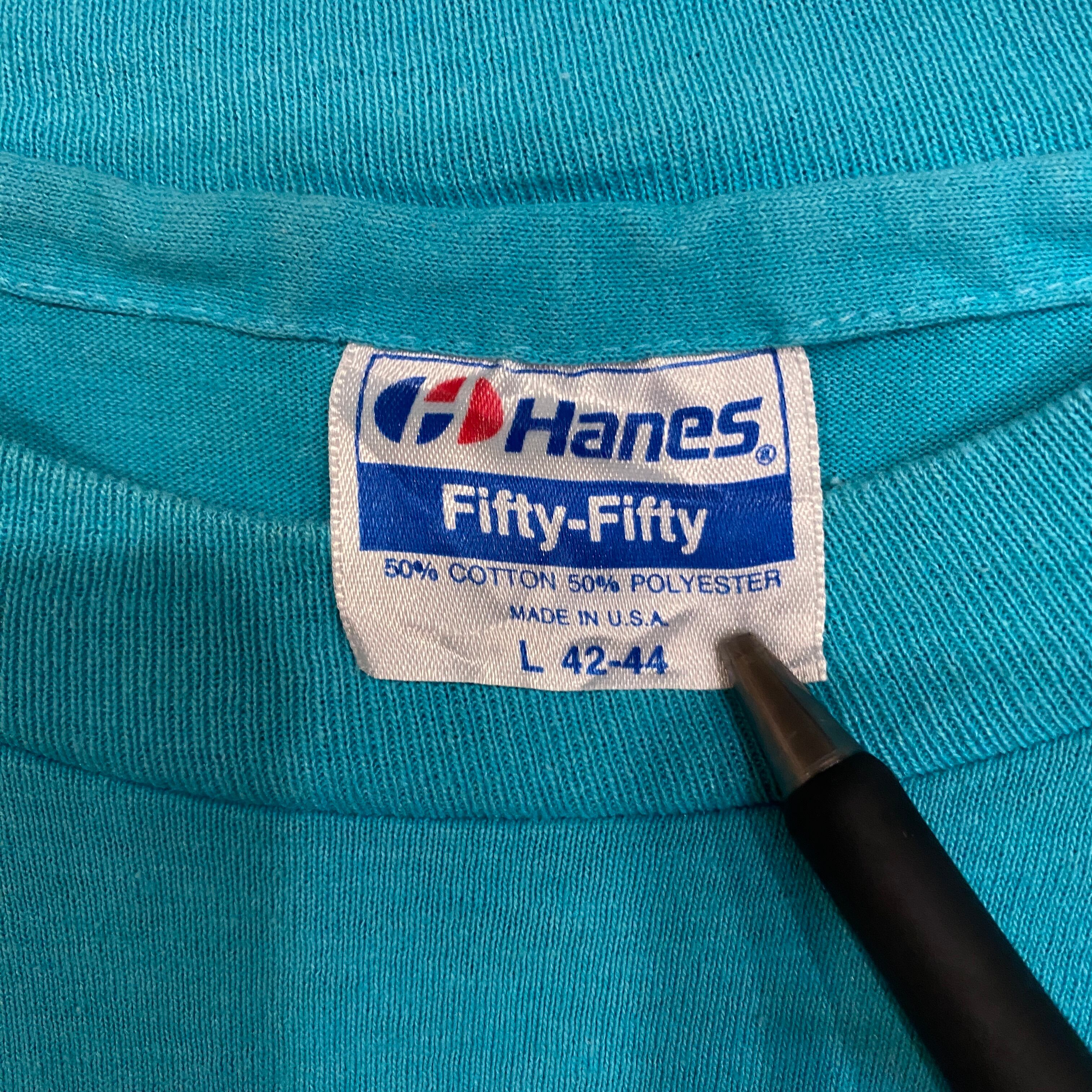2521 80s〜 80年代〜 USA製 Hanes ヘインズ プリント Tシャツ calvin and hobbes ブルー 青 古着 メンズ vintage