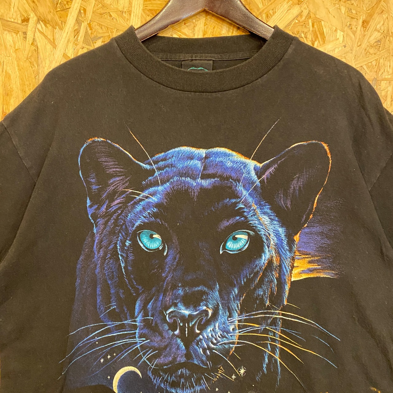 2523 90s〜 90年代〜 HABITAT プリント Tシャツ 動物 animal 黒豹 黒ヒョウ ブラック 黒 古着 メンズ vintage