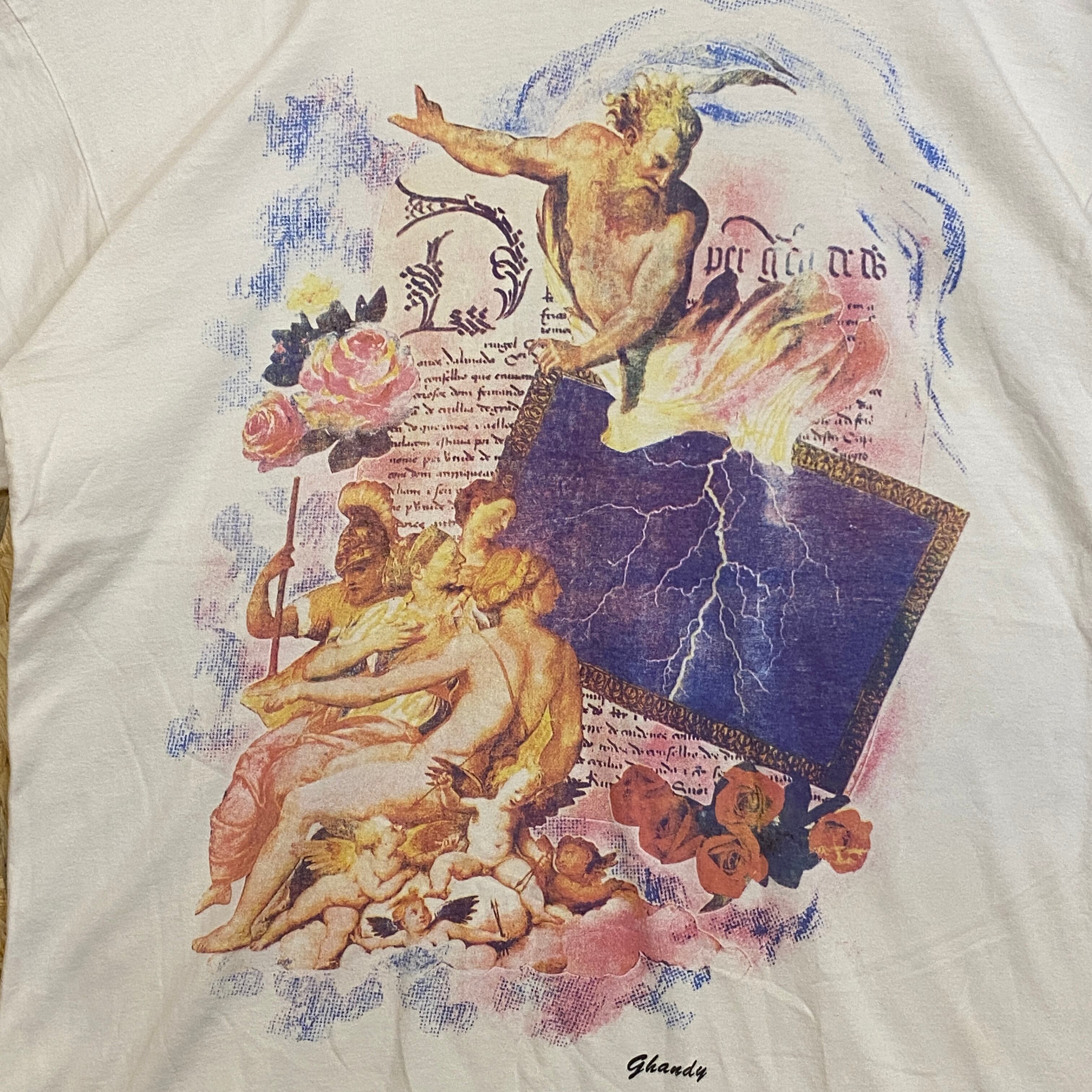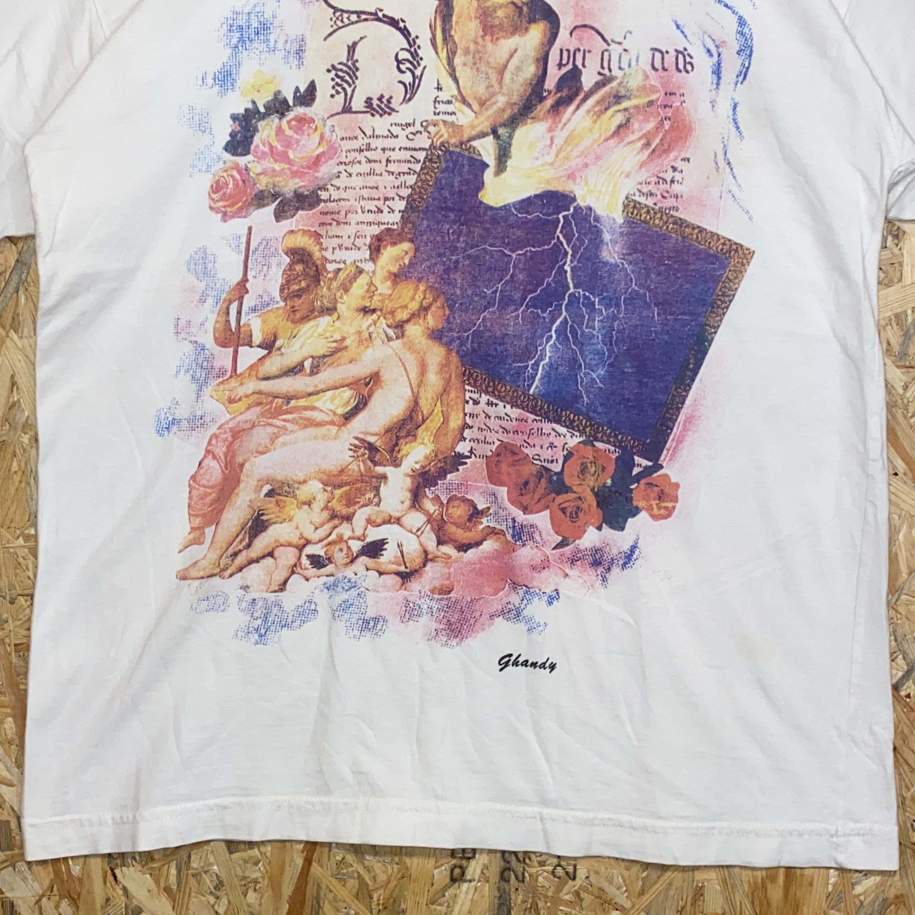2538 90s〜 90年代〜 Ghandy アート Tシャツ 古典的 絵画 キューピッド 美術 ホワイト 白 古着 メンズ vintage