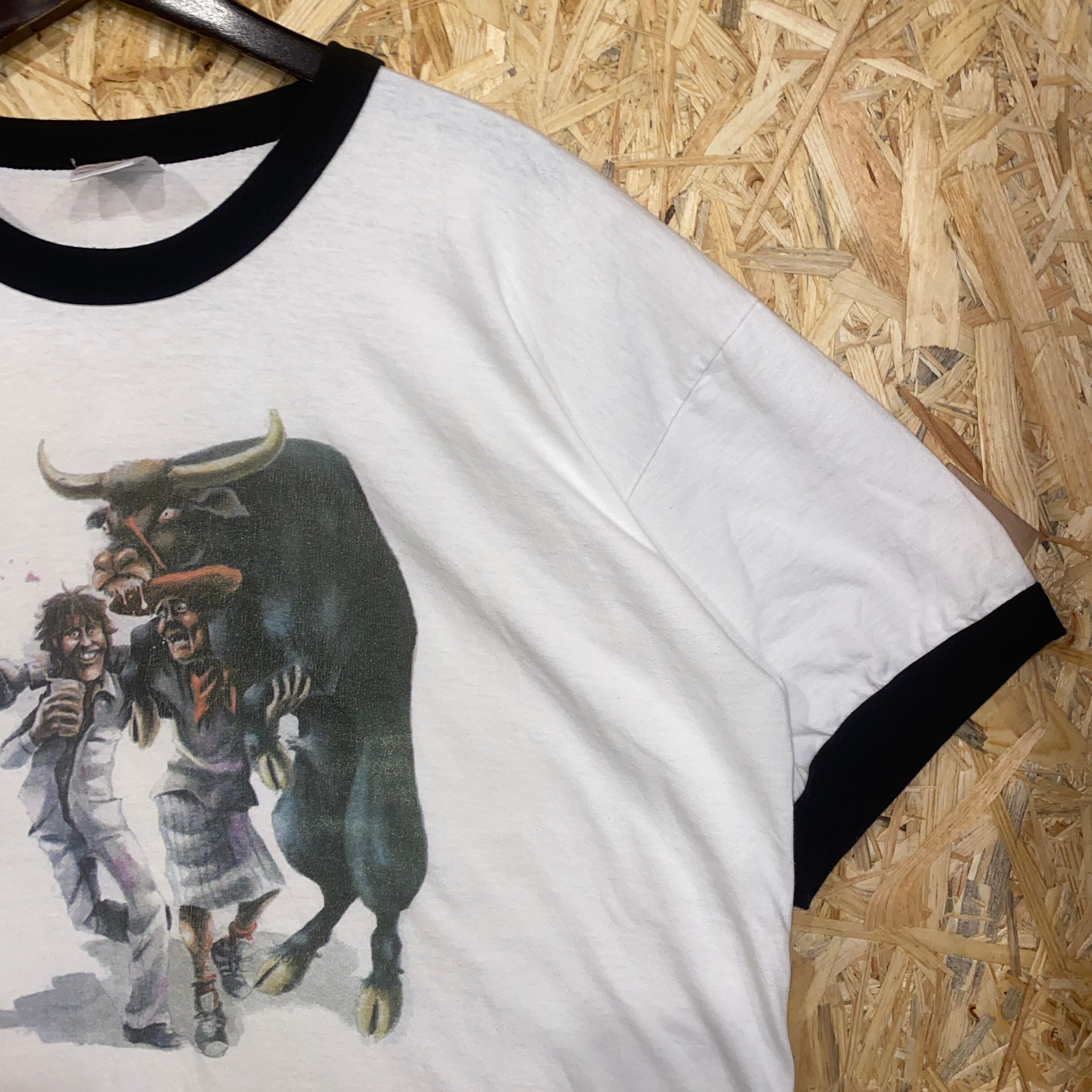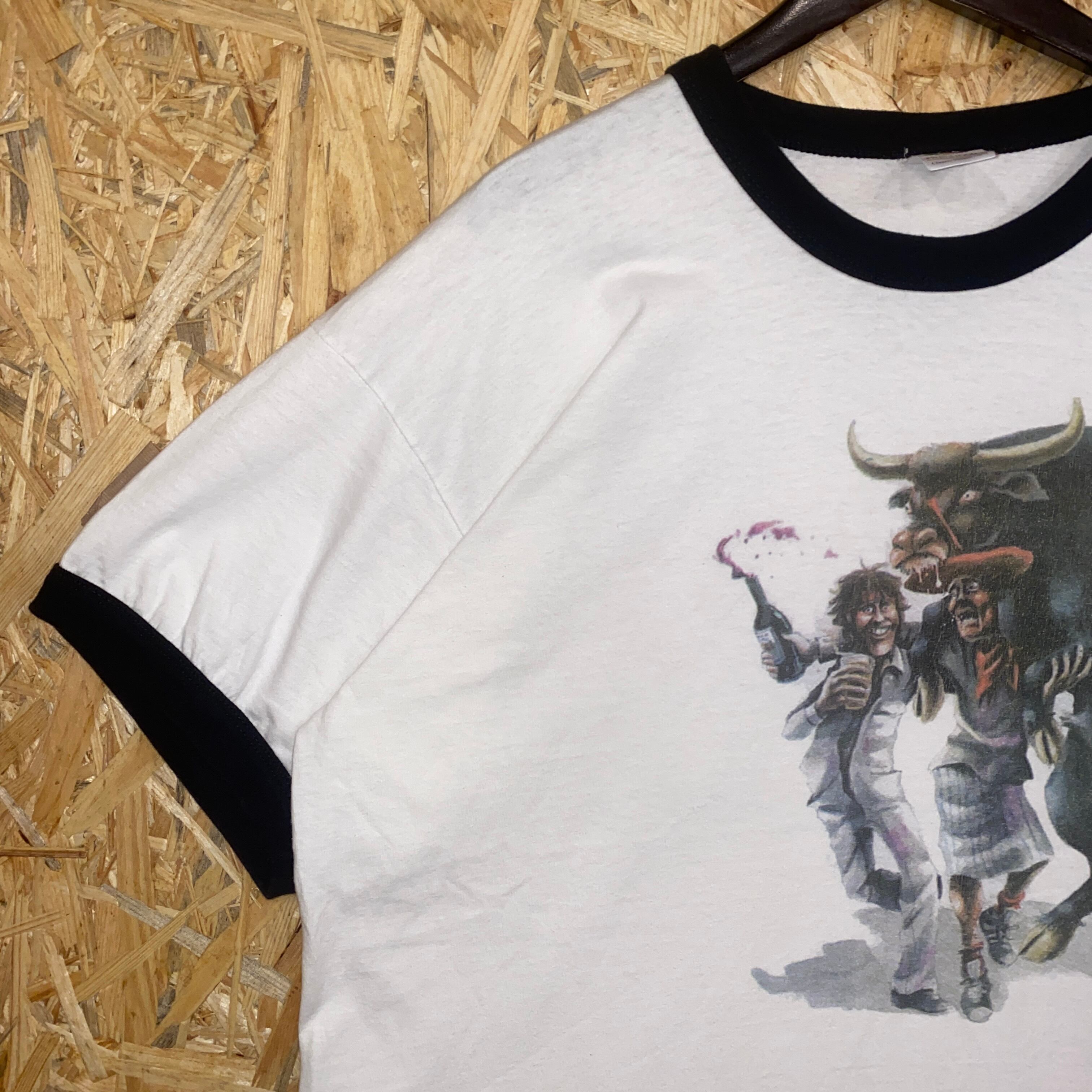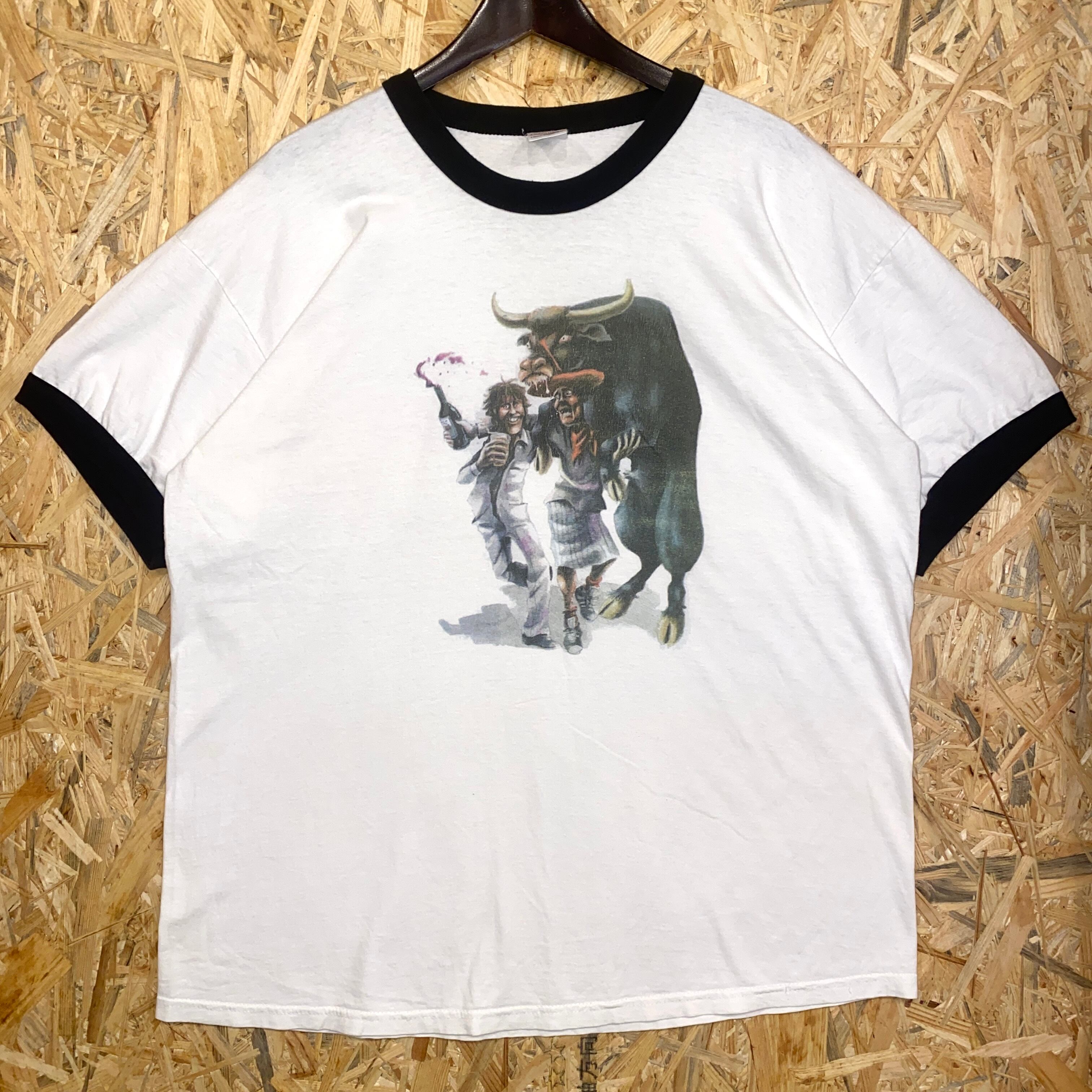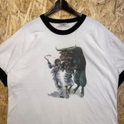 2556 00s 00年代 アニマル リンガー Tシャツ 闘牛 イベント 銀行 企業ロゴ ホワイト 白 古着 メンズ vintage 2005s