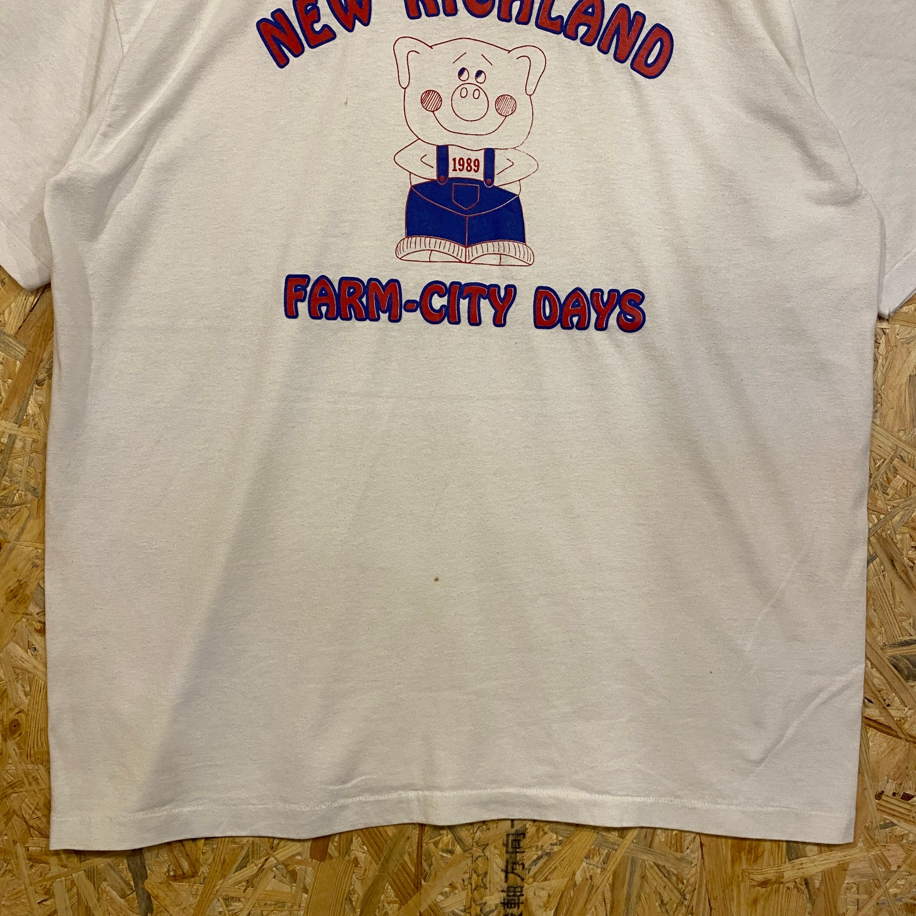 2564 90s 90年代 シングルステッチ USA製 ハーネス Hanes 豚 PIG 農業 田園 グラフィックデザイン 白Tシャツ 古着 メンズ vintage