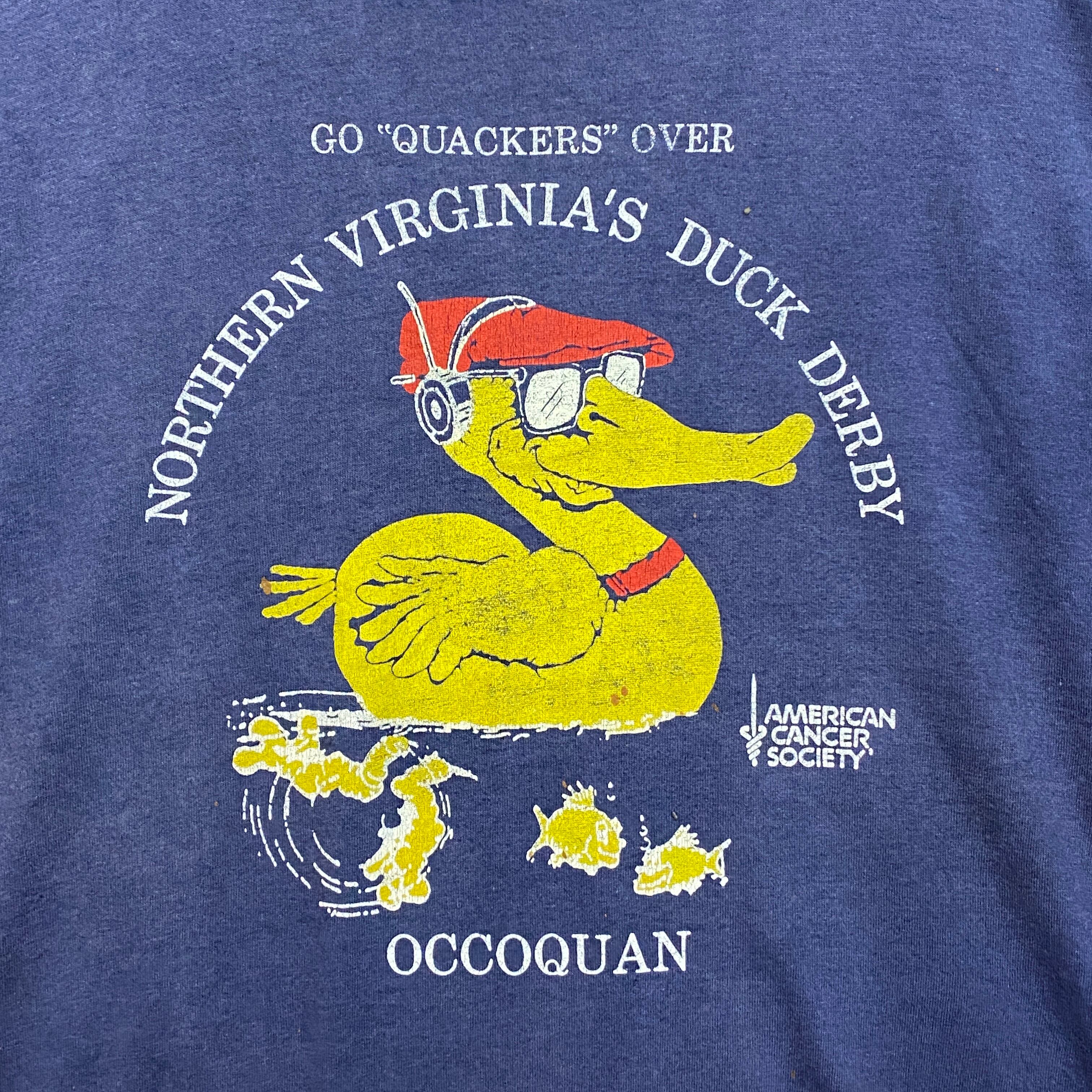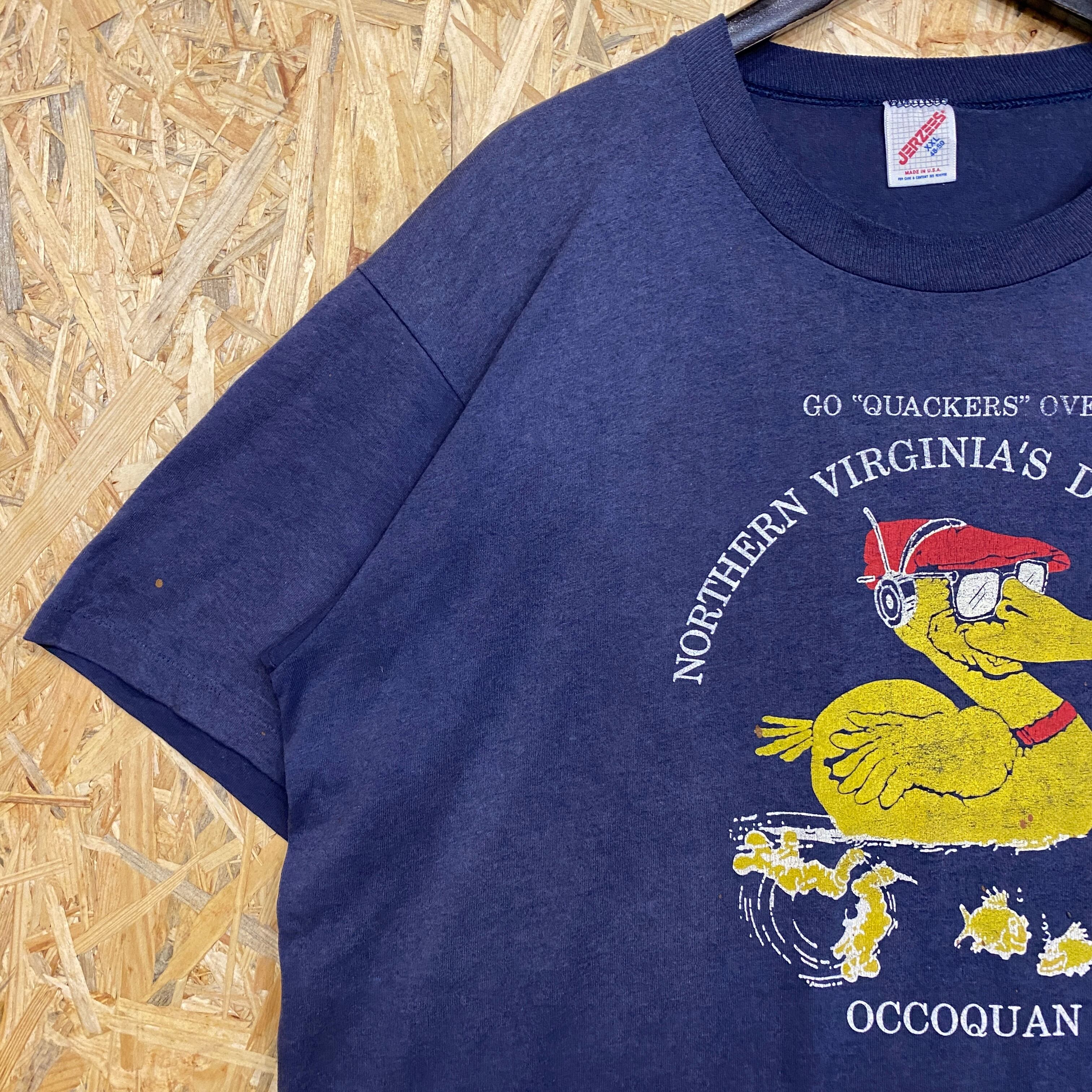 2570 90s〜 90年代〜 USA製 JERZEES ジャージーズ プリント Tシャツ アヒル 動物 animal バージニア州 紺 ネイビー 古着 メンズ vintage