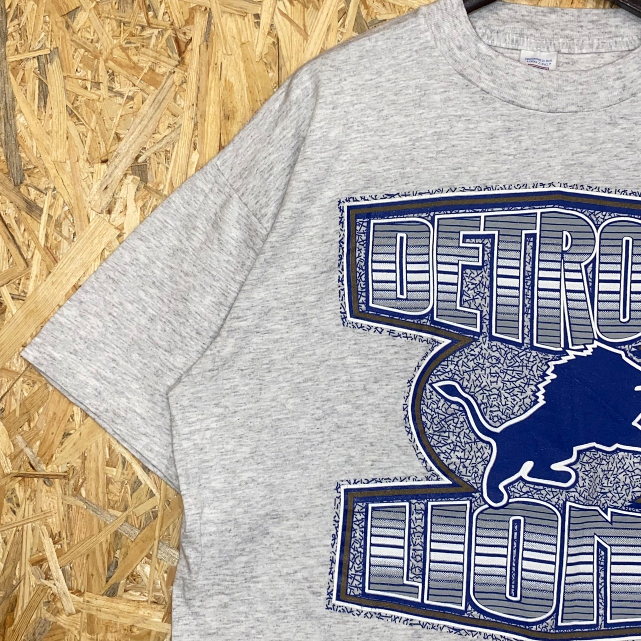 2580 90s 90年代 LOGO7 NFL デトロイト ライオンズ プリント Tシャツ ロゴ ライオン エンブレム グレー 古着 メンズ vintage