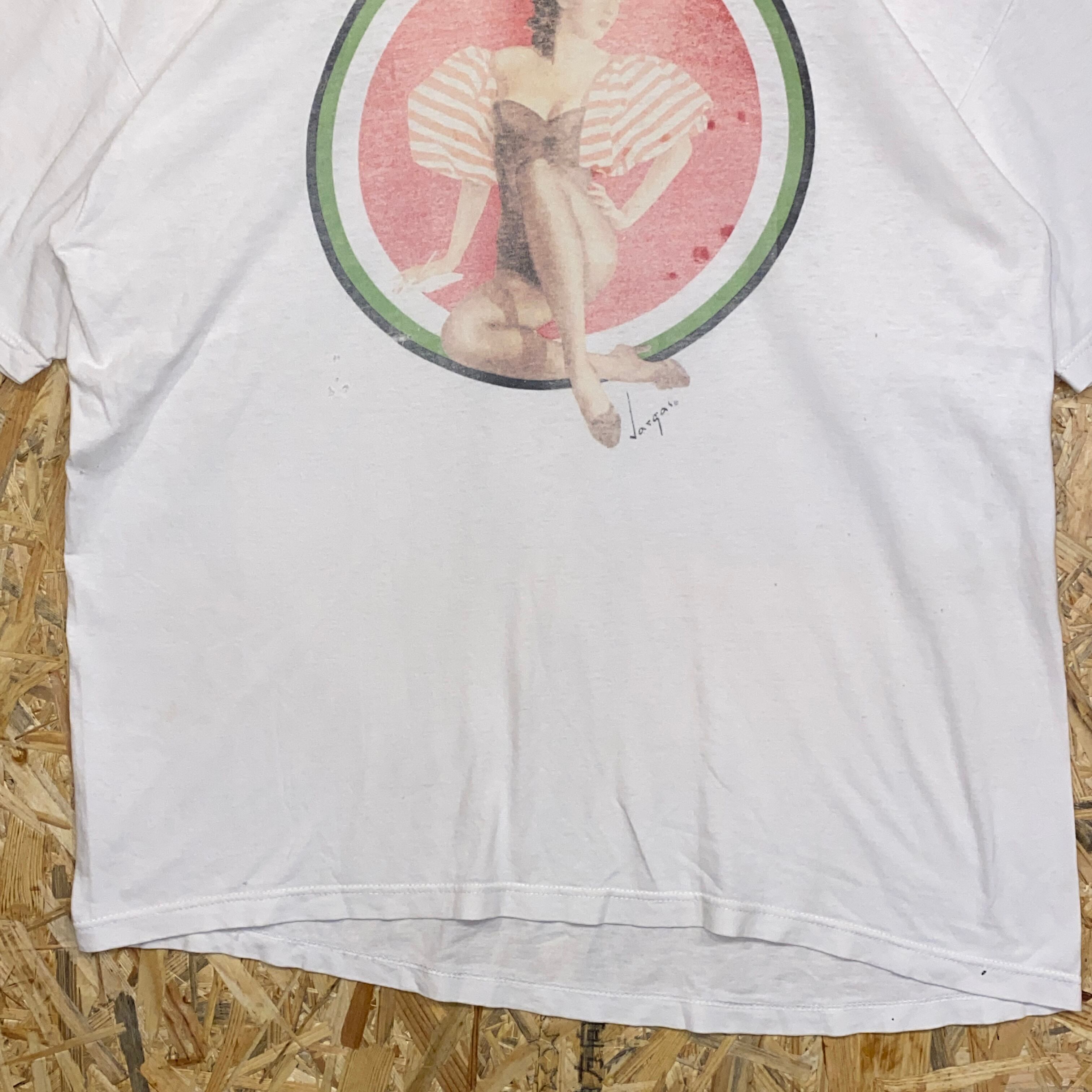 2596 90s 90年代 バーガスレディ プリント Tシャツ vargas ピンナップガール Hanes ホワイト 白 古着 メンズ vintage
