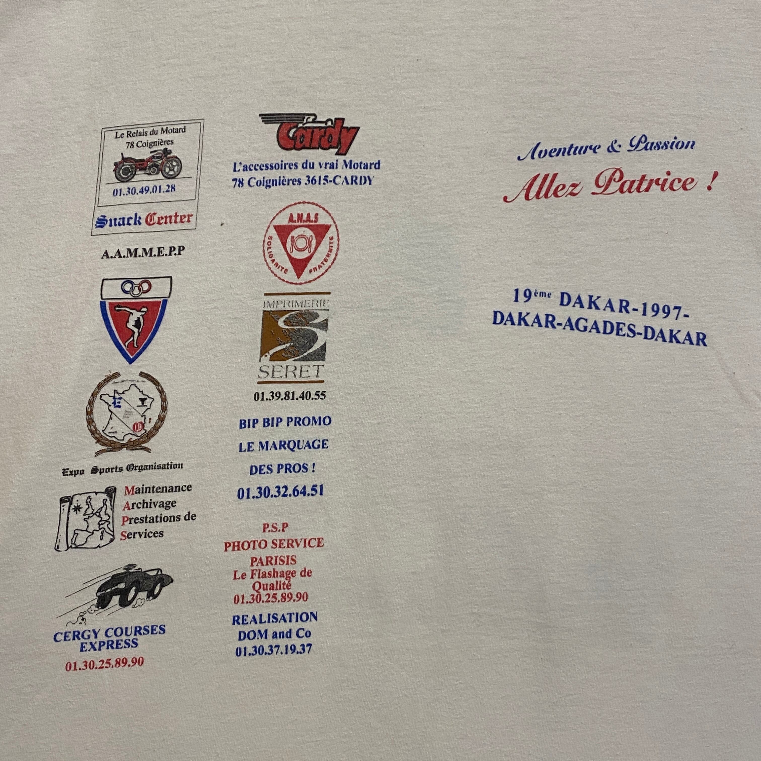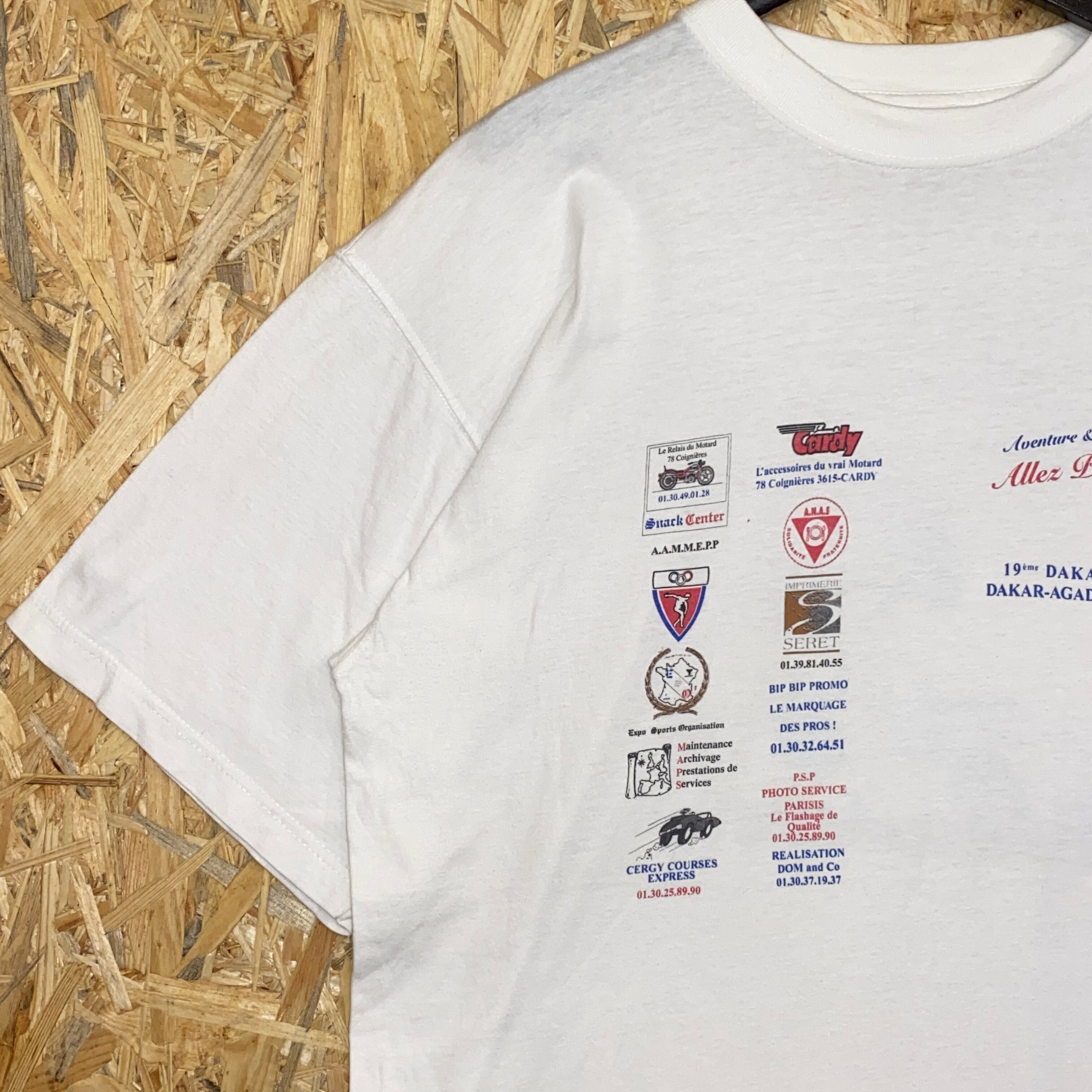 2603 90s 90年代 ダカールラリー 両面 プリント Tシャツ モーターサイクル バイク 企業 ロゴ ホワイト 白 古着 メンズ vintage