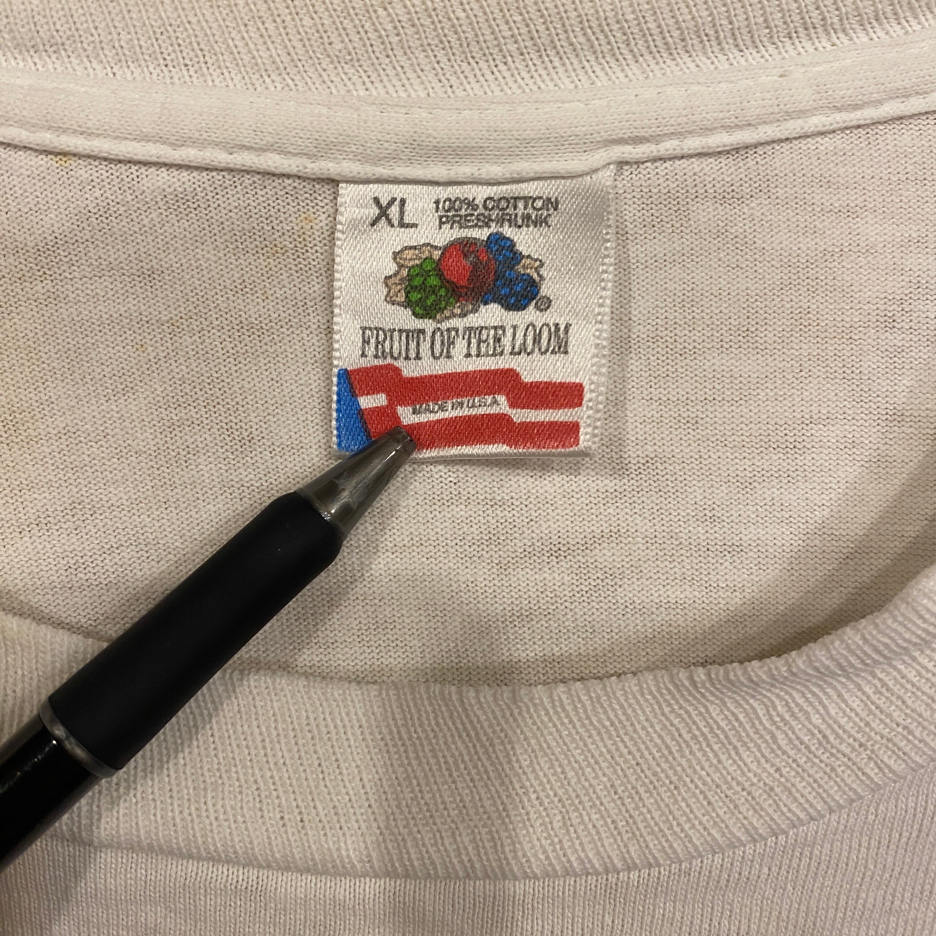 2613 90s 90年代 シングルステッチ USA製 フルーツオブザルーム FRUITOF THELOOM 脳 Brain Waves 両面プリント グラフィック イラスト 白Tシャツ 古着 メンズ vintage