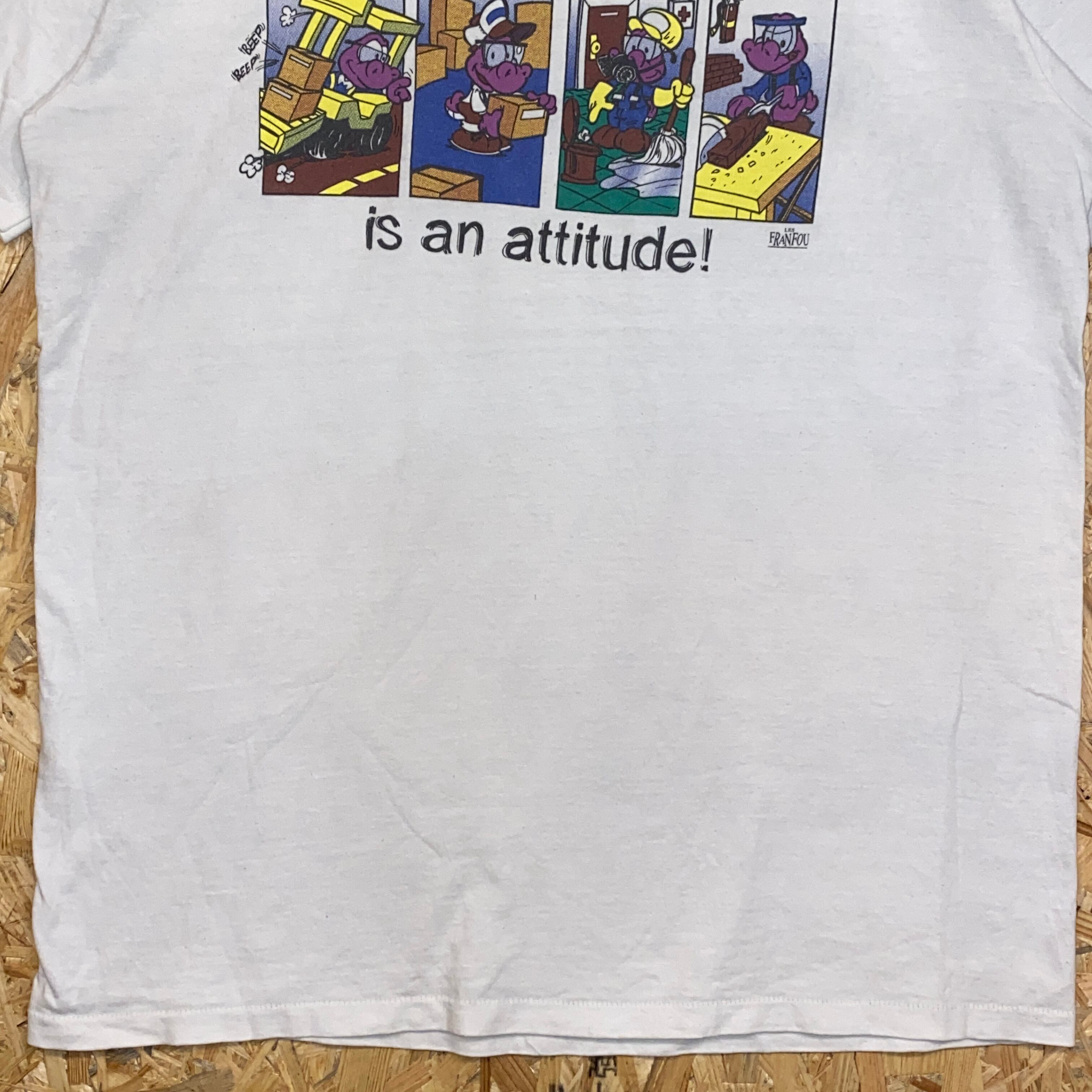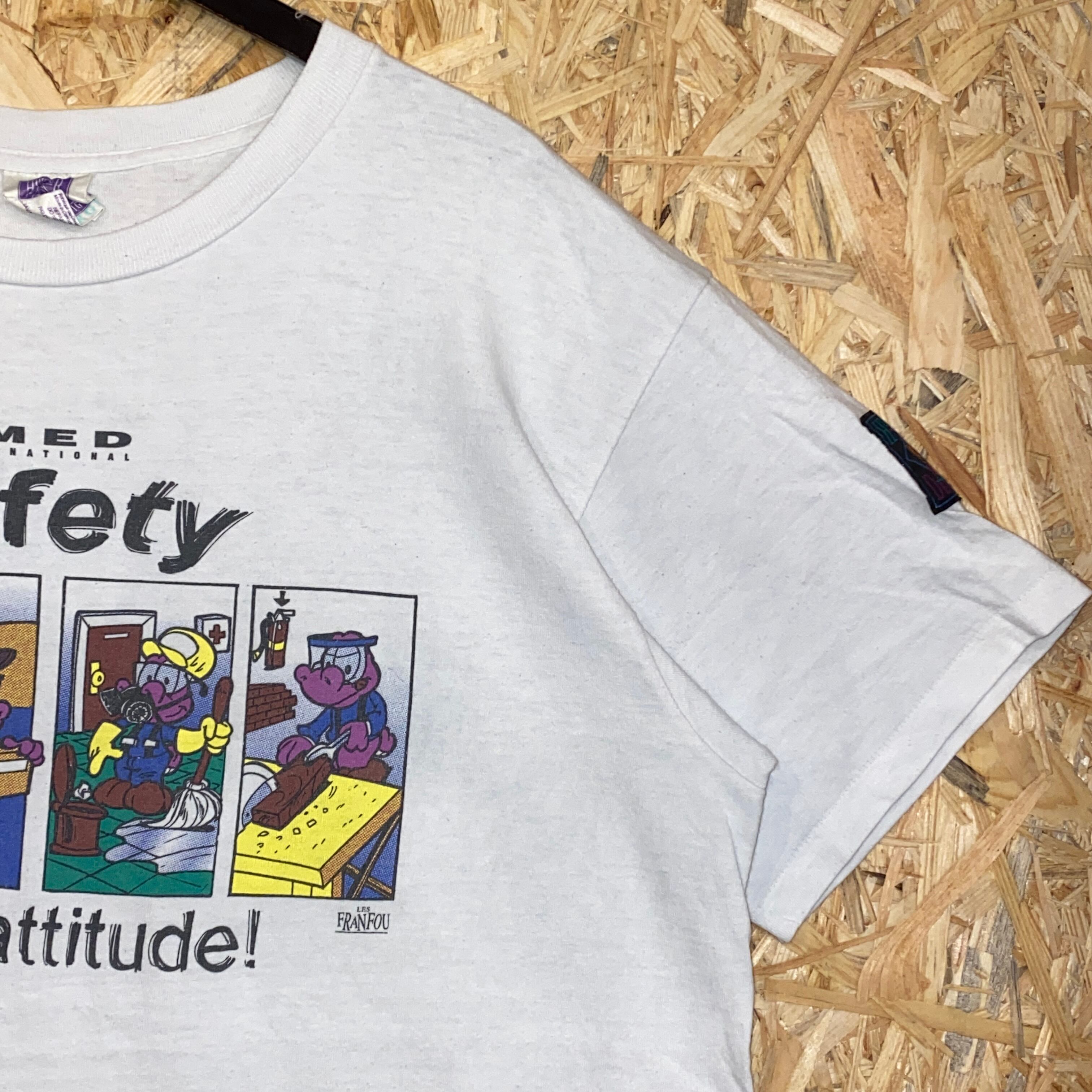 2645 90s 90年代 アニマル Tシャツ キャラ ユーモラス 工具 フォークリフト 仕事 HUMEUR DESIGN ホワイト 白 シングルステッチ 古着 メンズ vintage