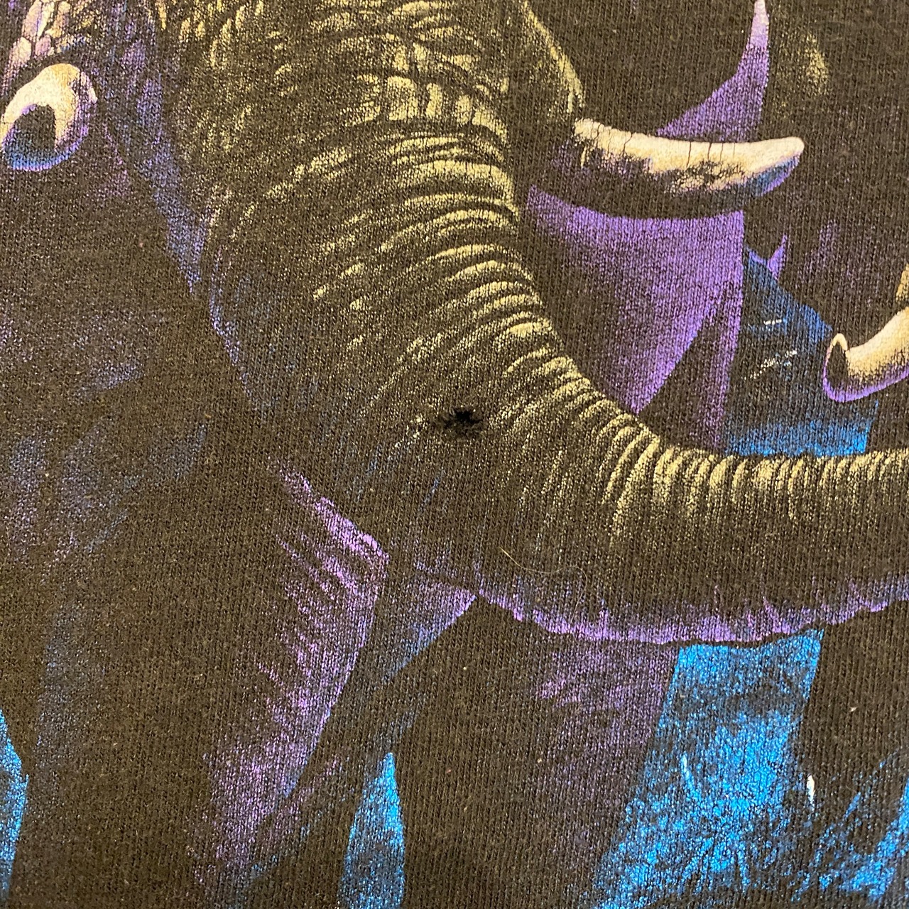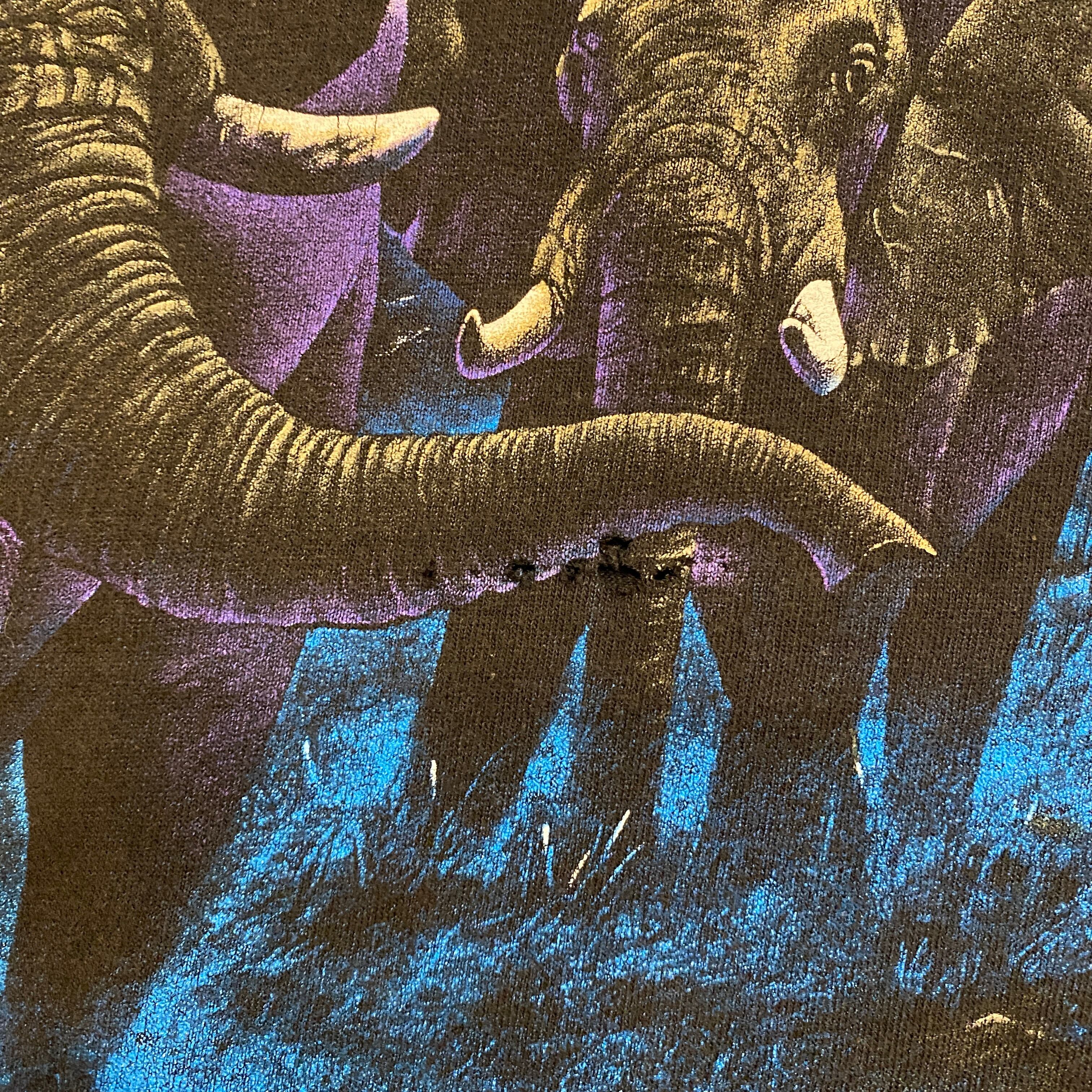 2653 90s 90年代 USA製 HABITAT ゾウ サンダー アニマル Tシャツ カベラス アウトドア 両面 プリント 黒 ブラック 古着 メンズ vintage