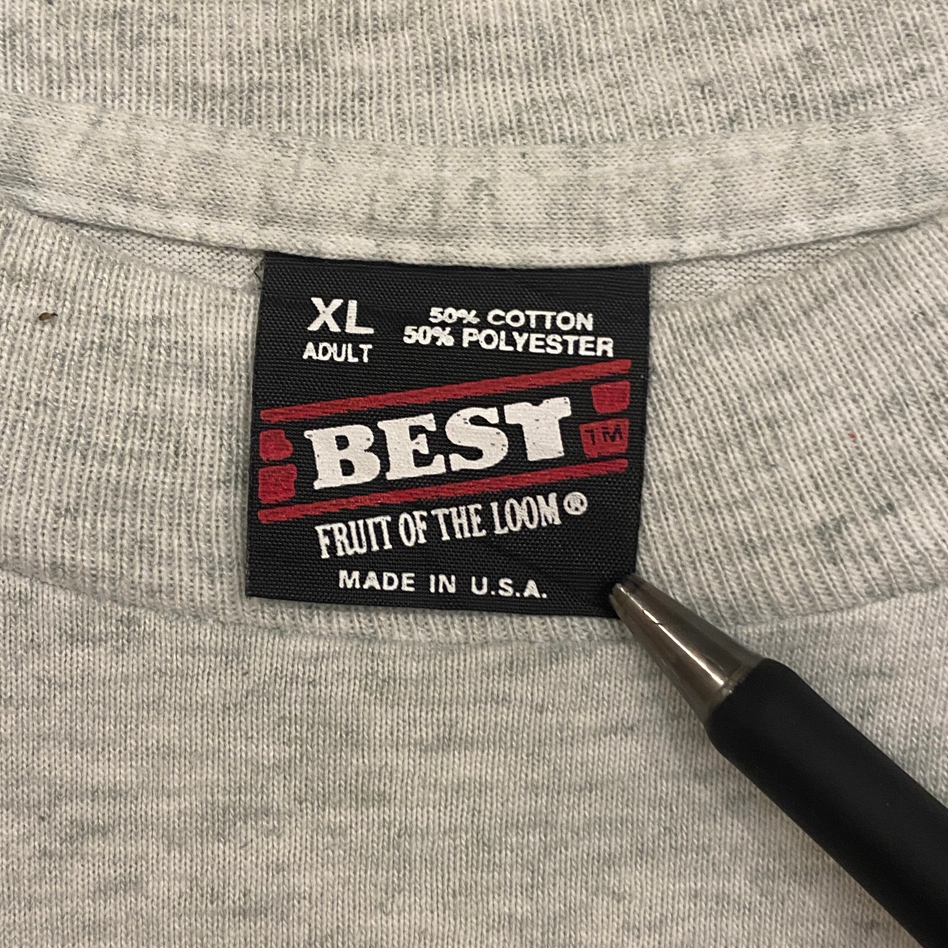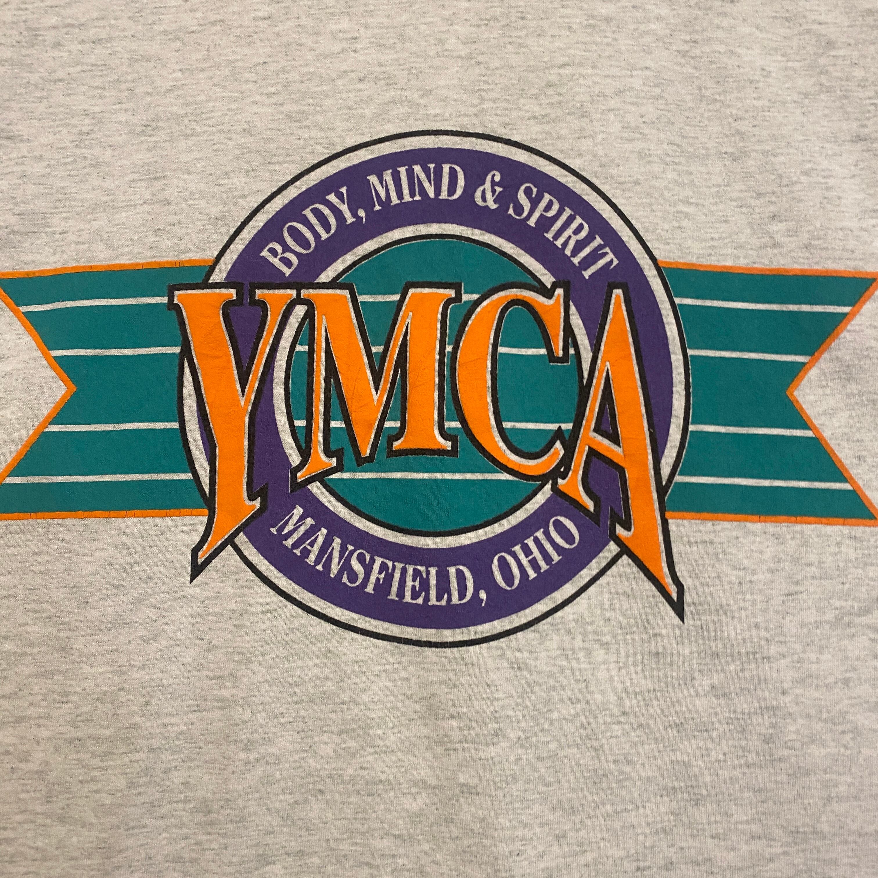 2667 90s 90年代 USA製 YMCA ロゴ プリント Tシャツ オハイオ州 グラフィック グレー フルーツオブザルーム シングルステッチ 古着 メンズ vintage