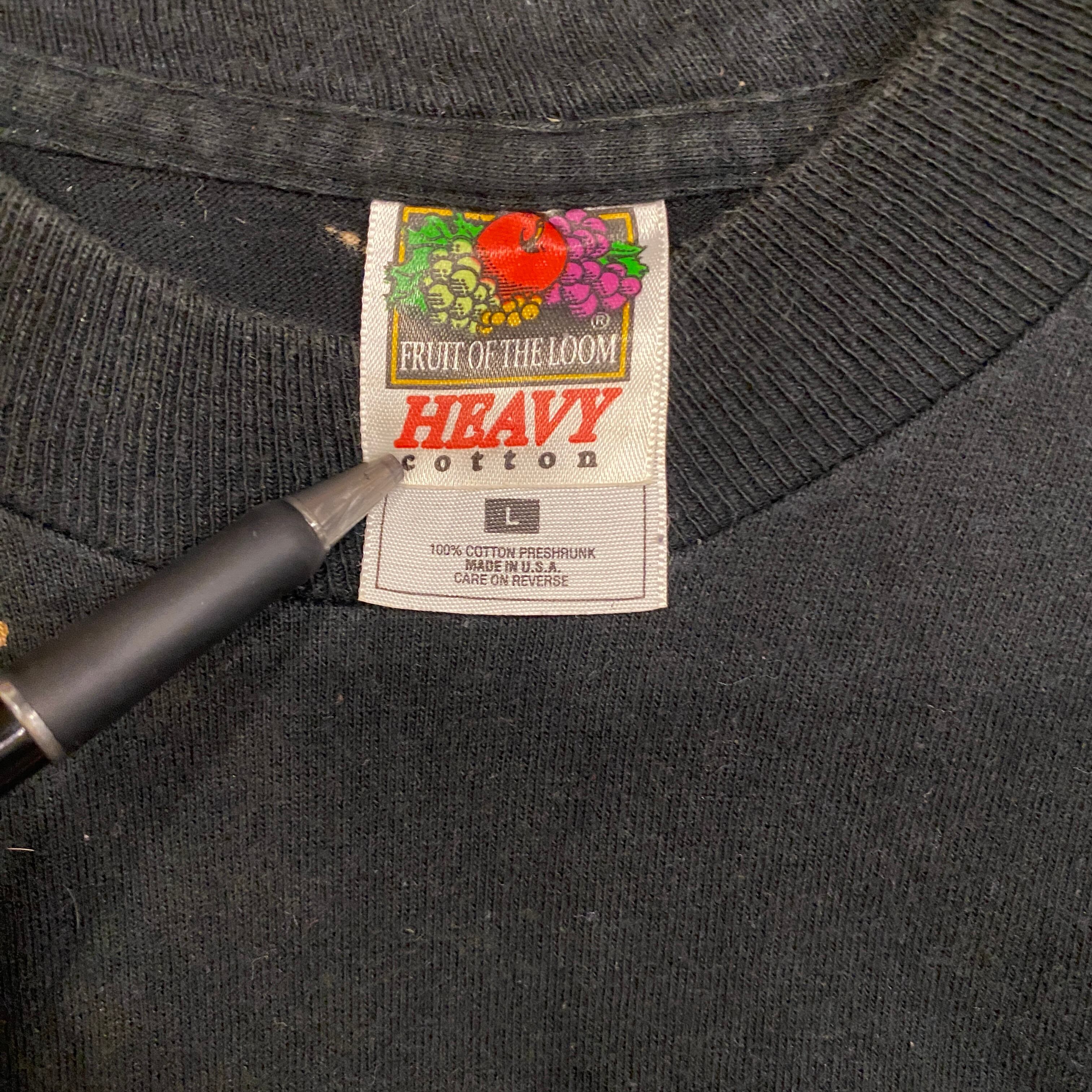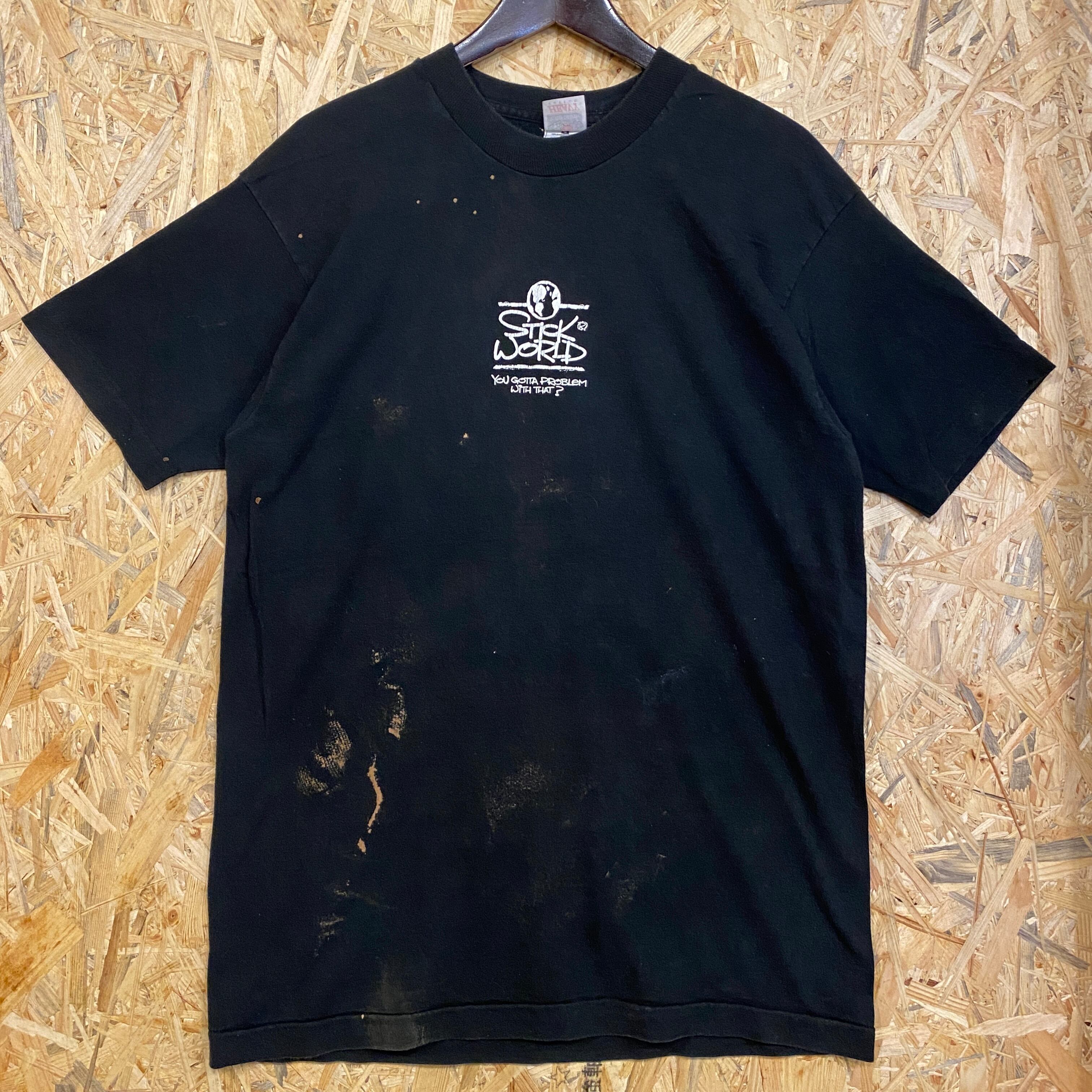 2673 90s 90年代 USA製 stick world イラスト Tシャツ ブラック 黒 シングルステッチ フルーツオブザルーム 古着 メンズ vintage