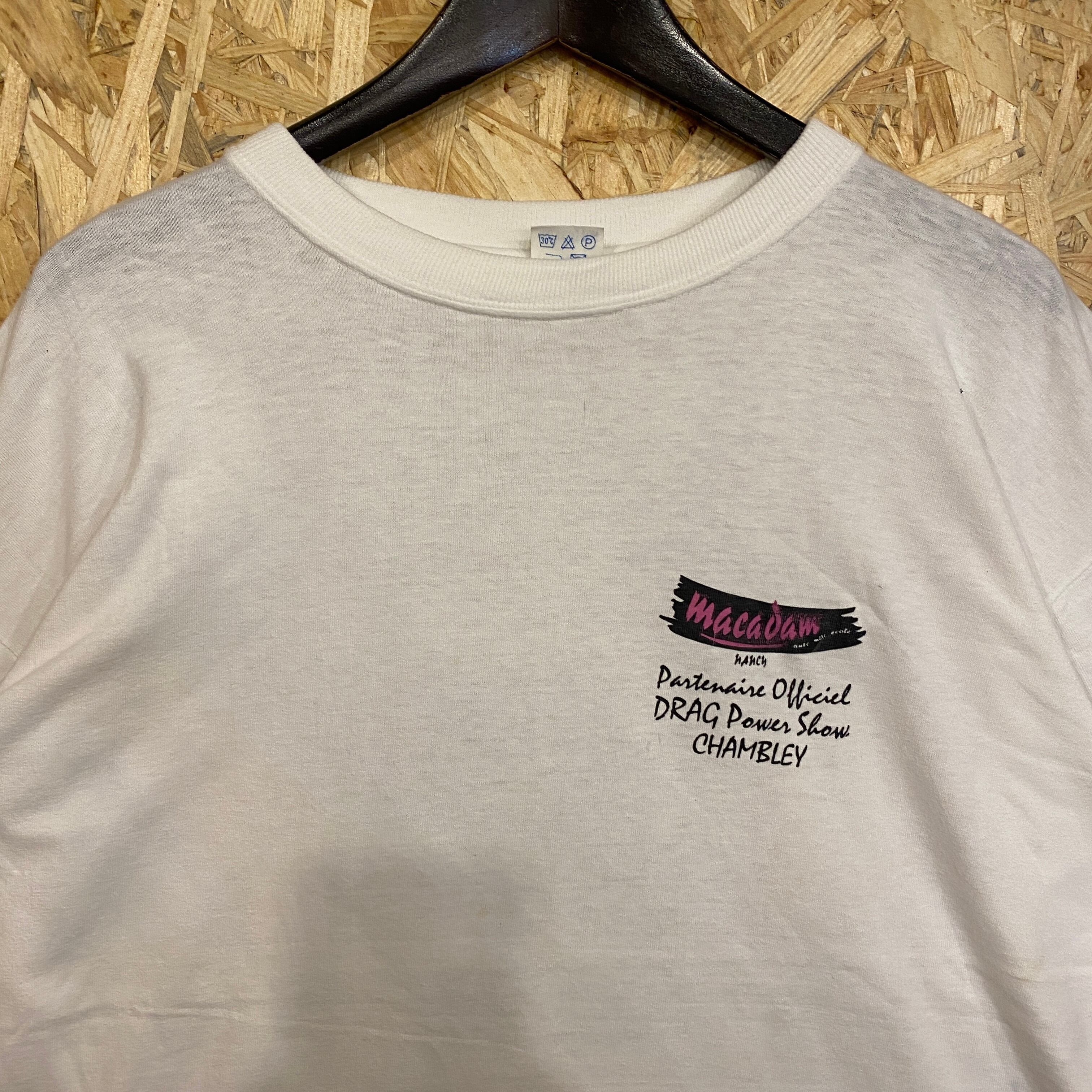 2674 オートバイ イラスト Tシャツ 自動車 イベント 両面 プリント ユーモア ホワイト 白 シングルステッチ 古着 メンズ vintage