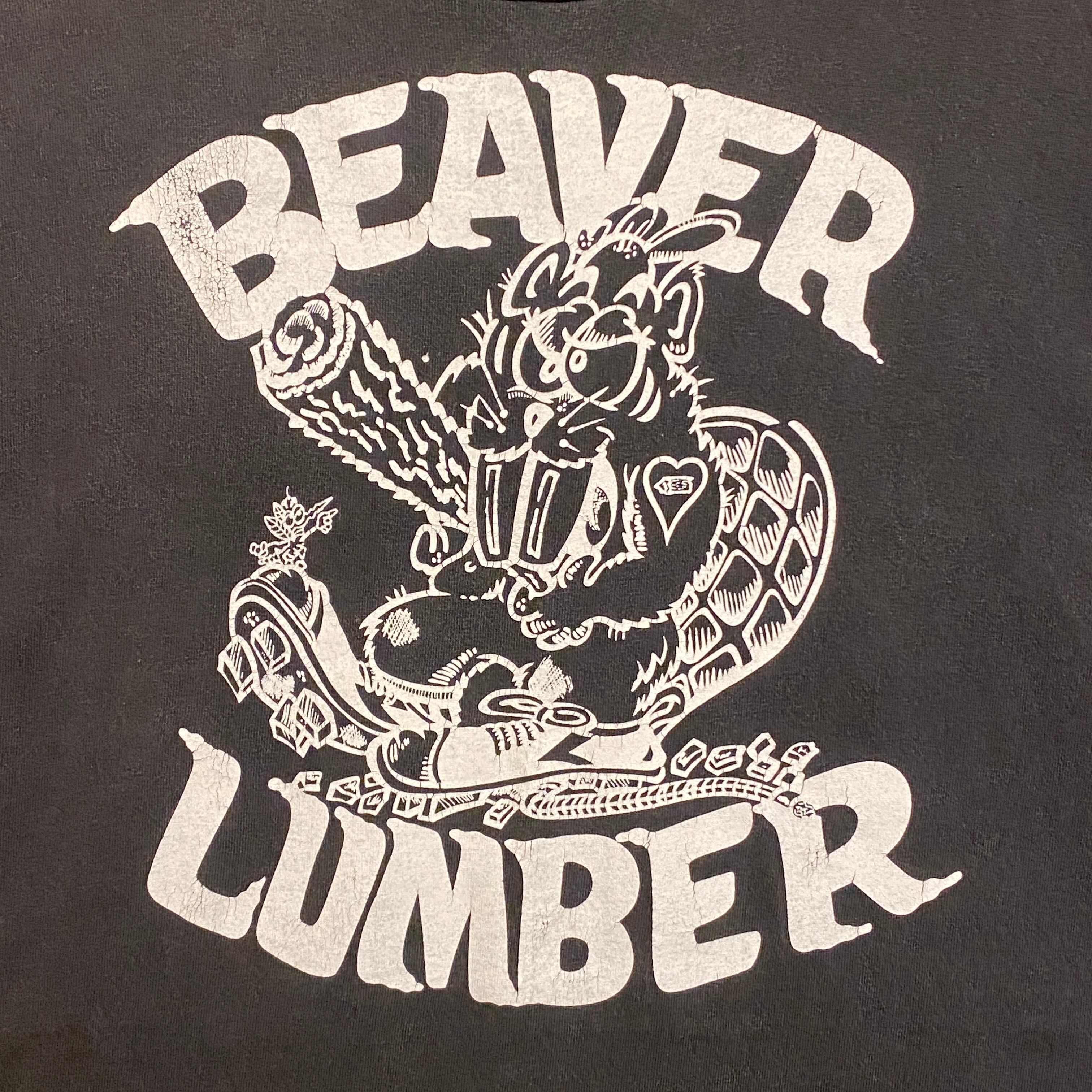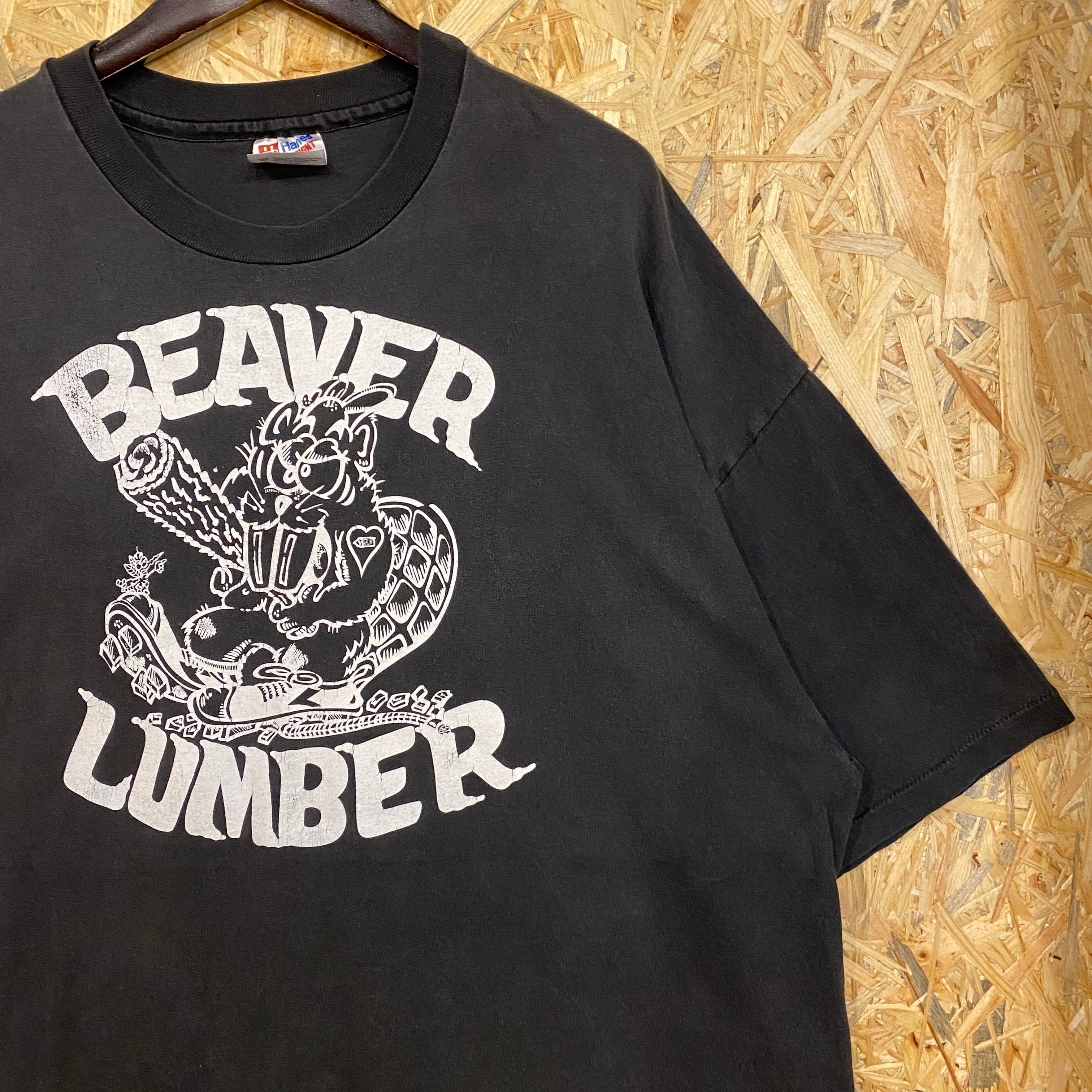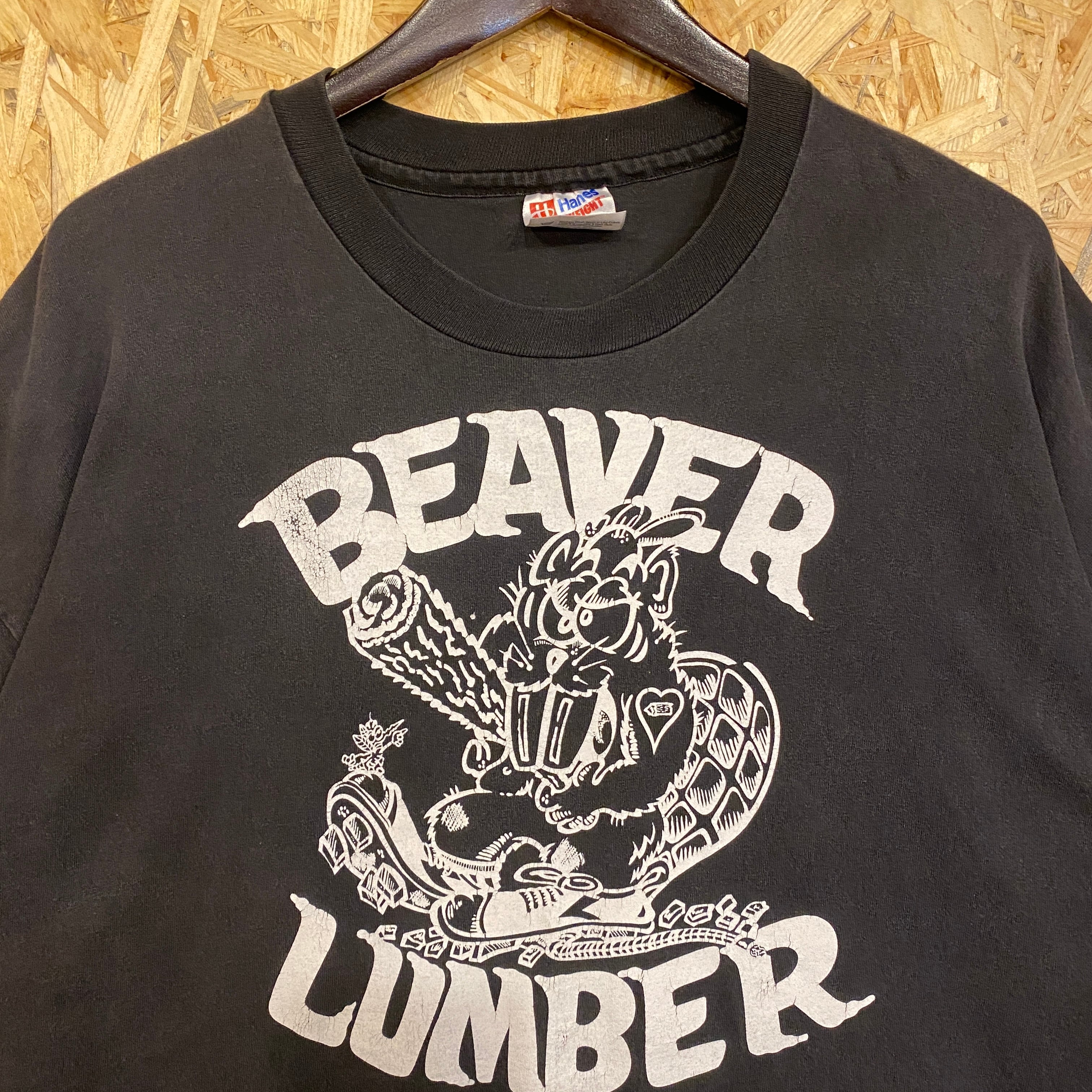 2675 90s 90年代 USA製 BEAVER LUMBER イラスト Tシャツ アニマル Hanes ブラック 黒 Hanes シングルステッチ 古着 メンズ vintage