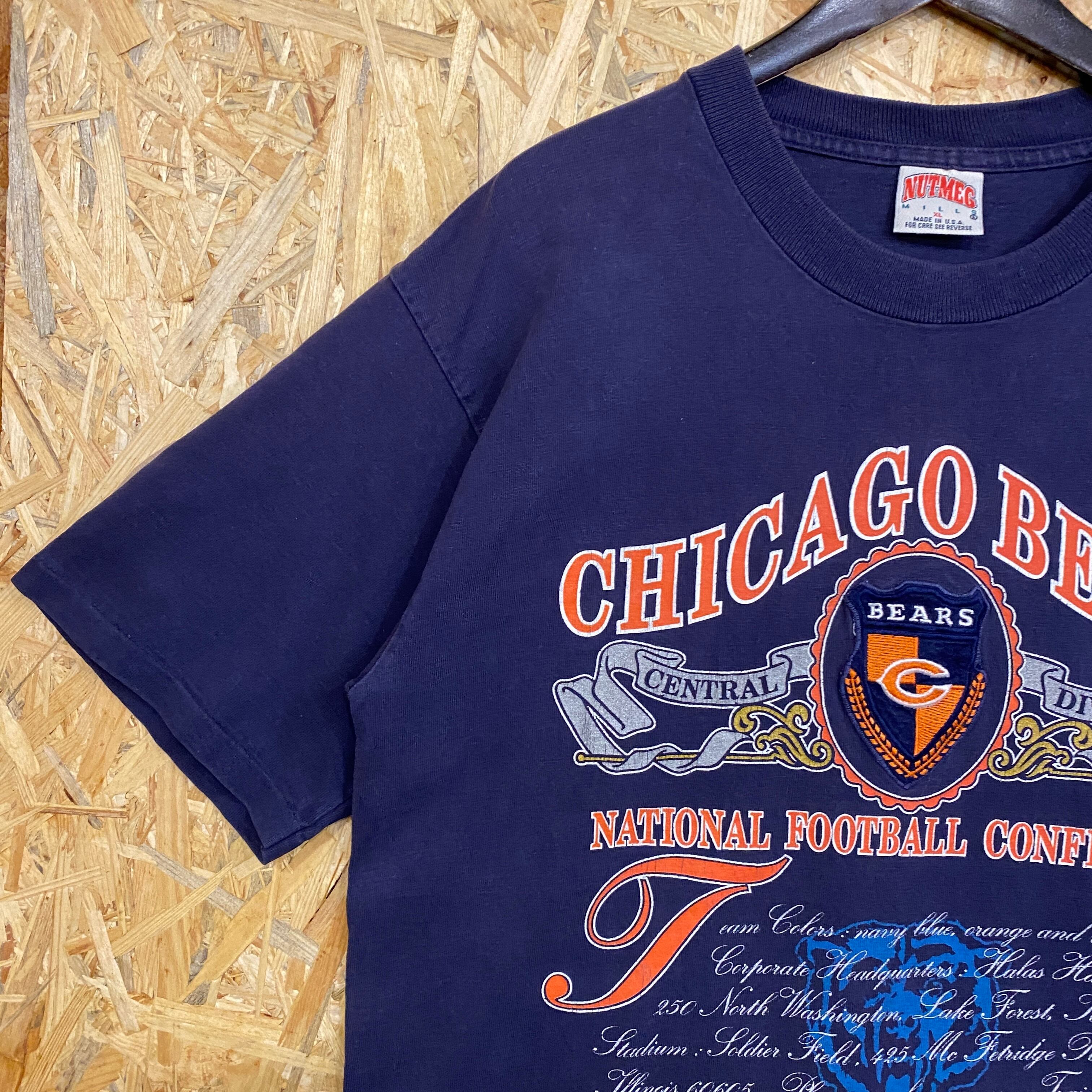 2686 90s 90年代 USA製 NFL シカゴ ベアーズ プリント Tシャツ フットボール スポーツ ロゴ ネイビー シングルステッチ 古着 メンズ vintage