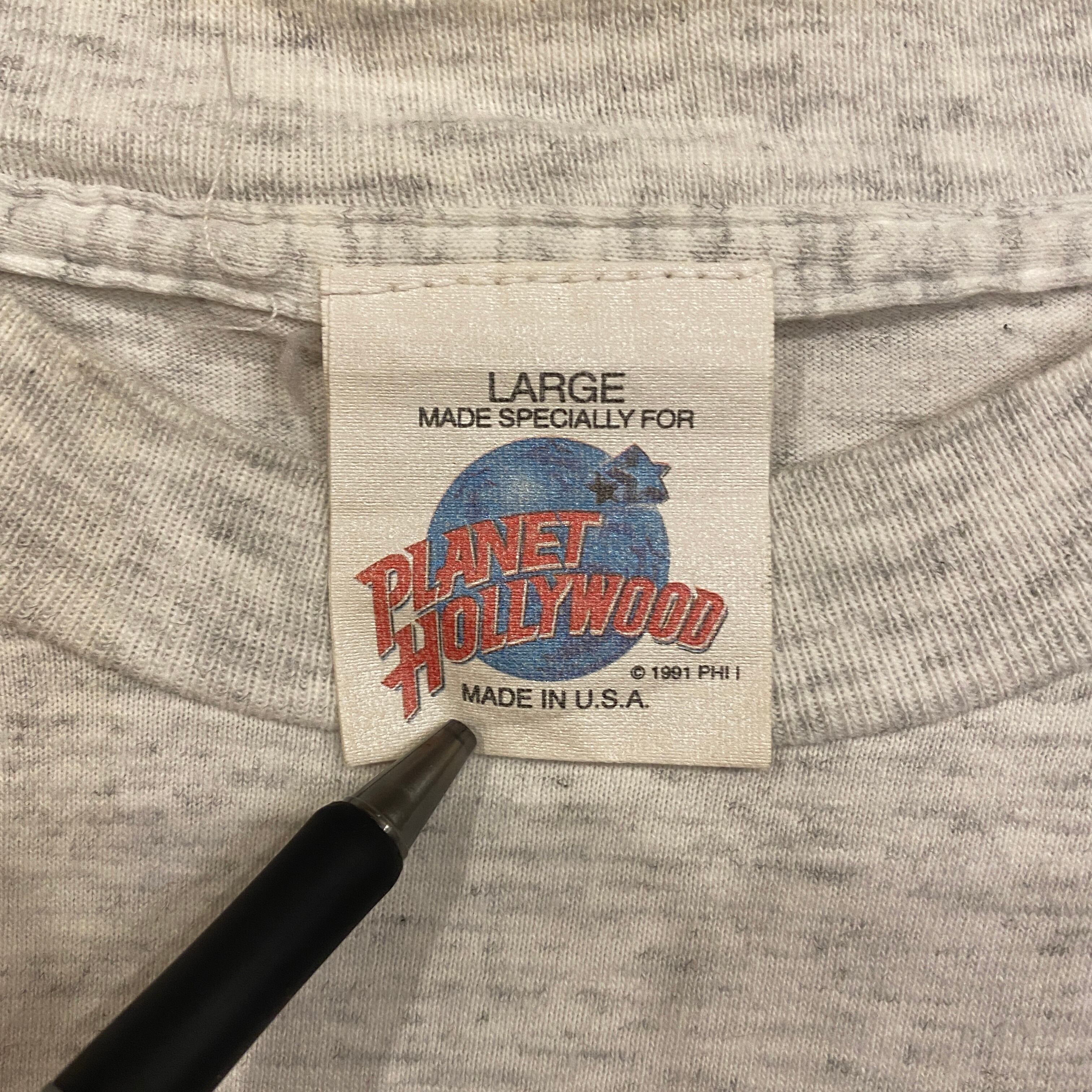 2691 90s 90年代 USA製 Planet Hollywood ロゴ Tシャツ Walt Disney World プラネット ハリウッド レストラン グレー シングルステッチ 古着 メンズ vintage
