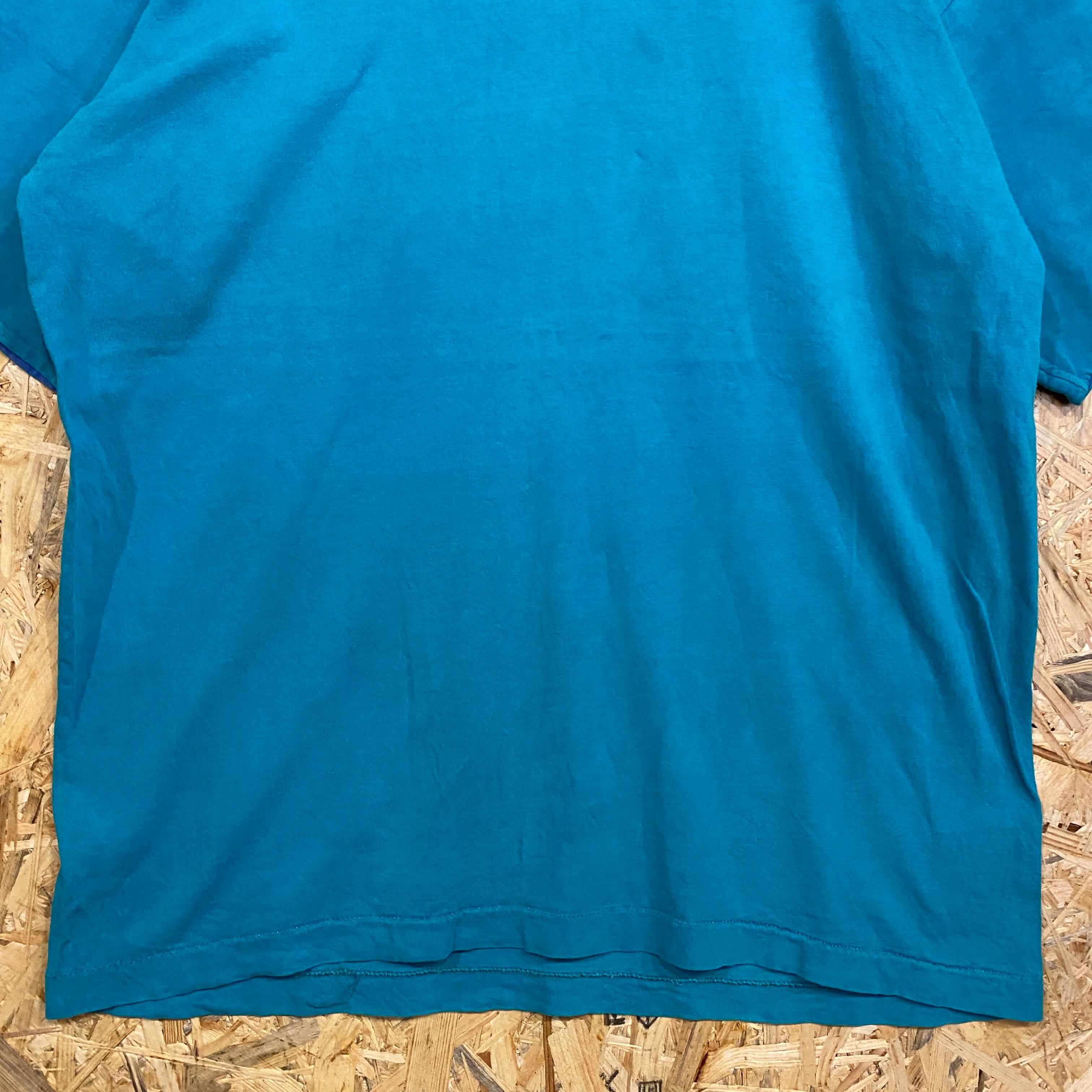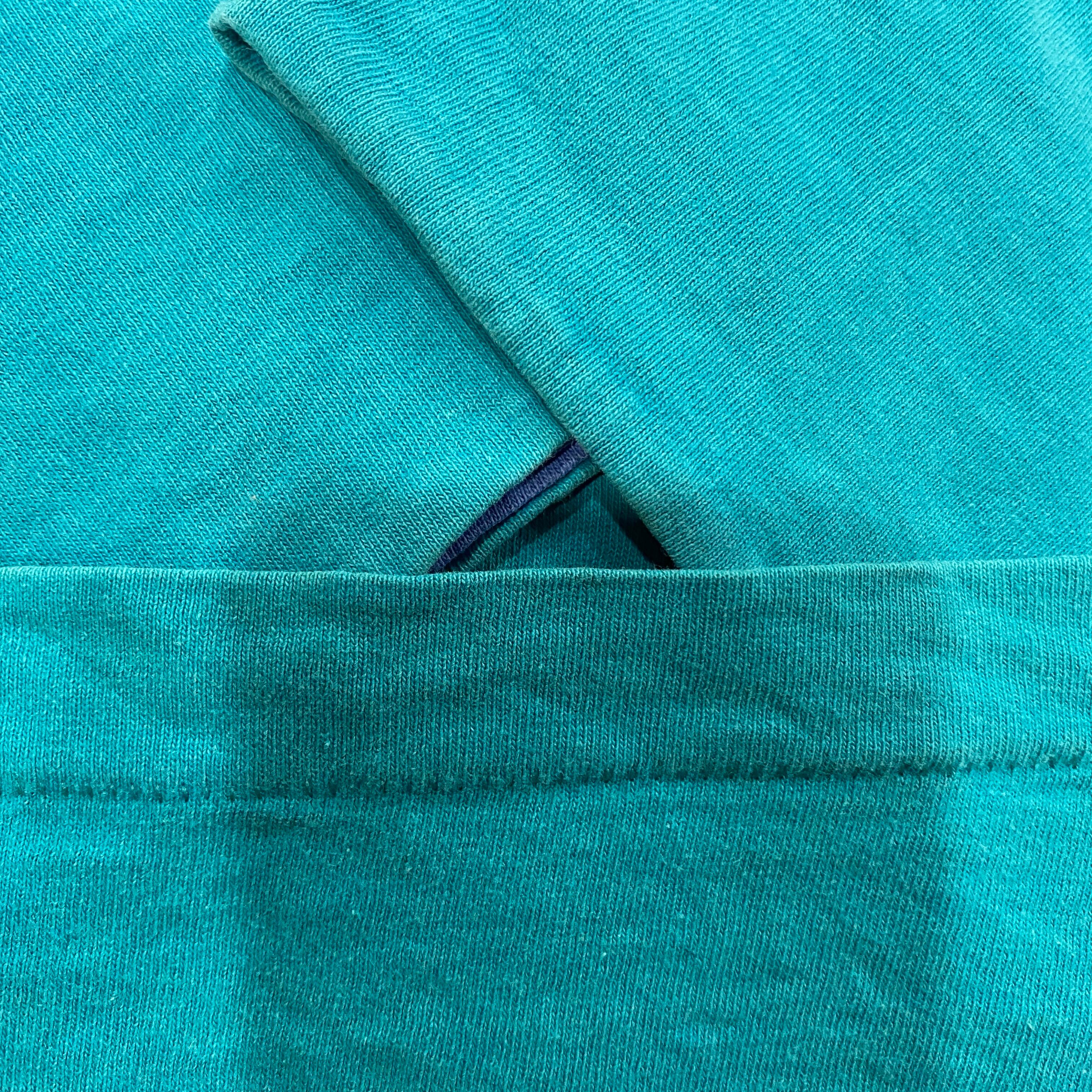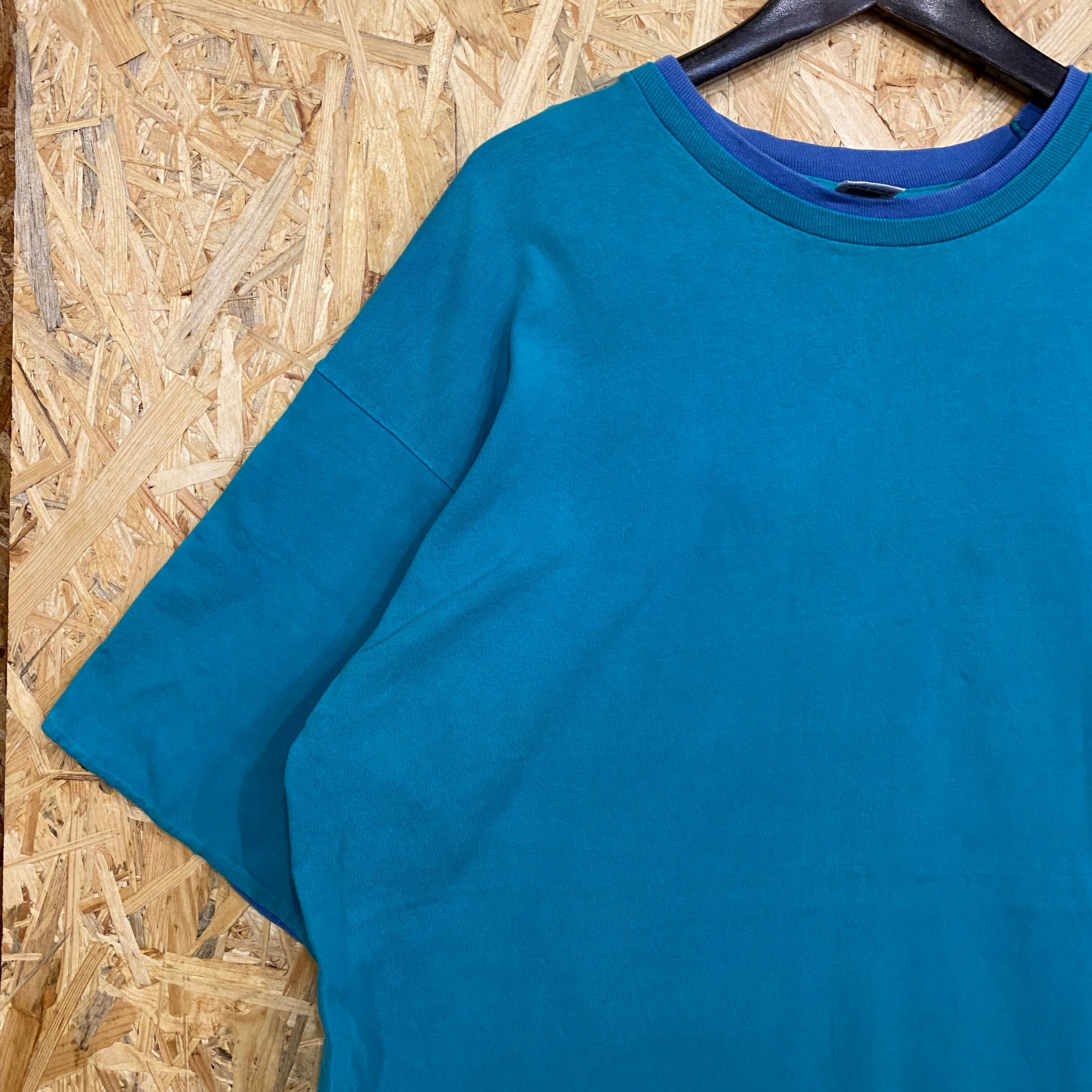 2695 90s 90年代 USA製 シンプル Tシャツ 無地 フェイク レイヤード ネック ターコイズ グリーン フルーツオブザルーム シングルステッチ 古着 メンズ vintage