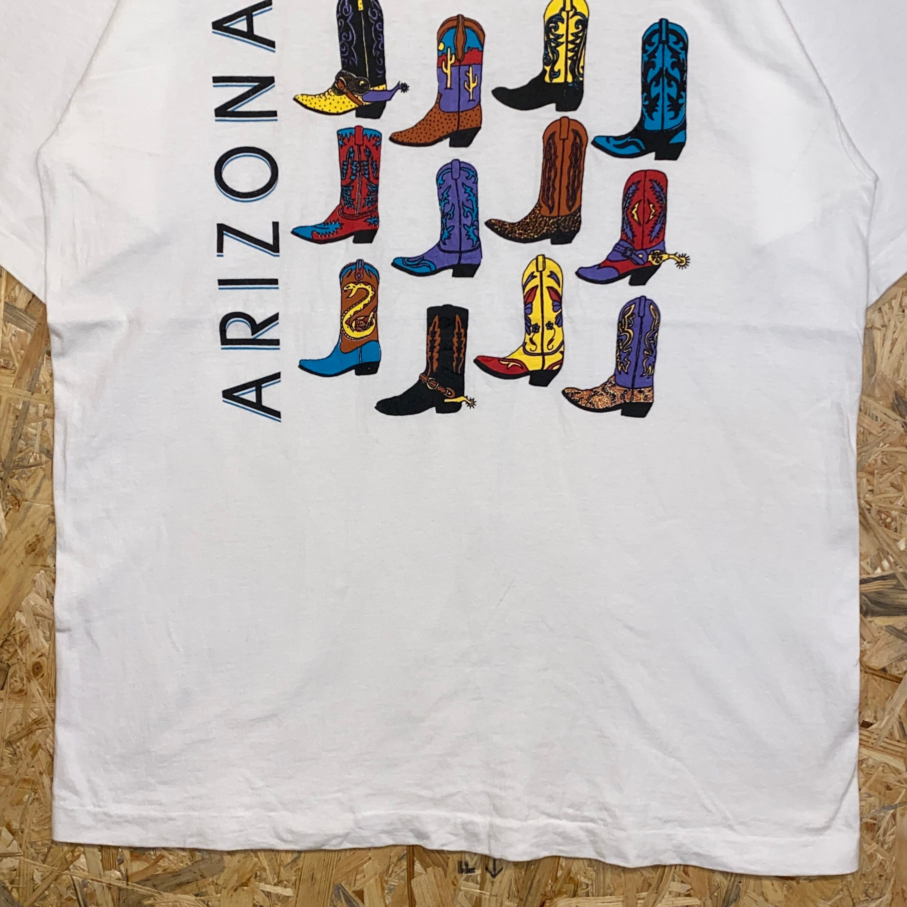 2712 90s 90年代 USA製 ウエスタンブーツ イラスト Tシャツ ARIZONA カウボーイ ホワイト 白 シングルステッチ フルーツオブザルーム 古着 メンズ vintage