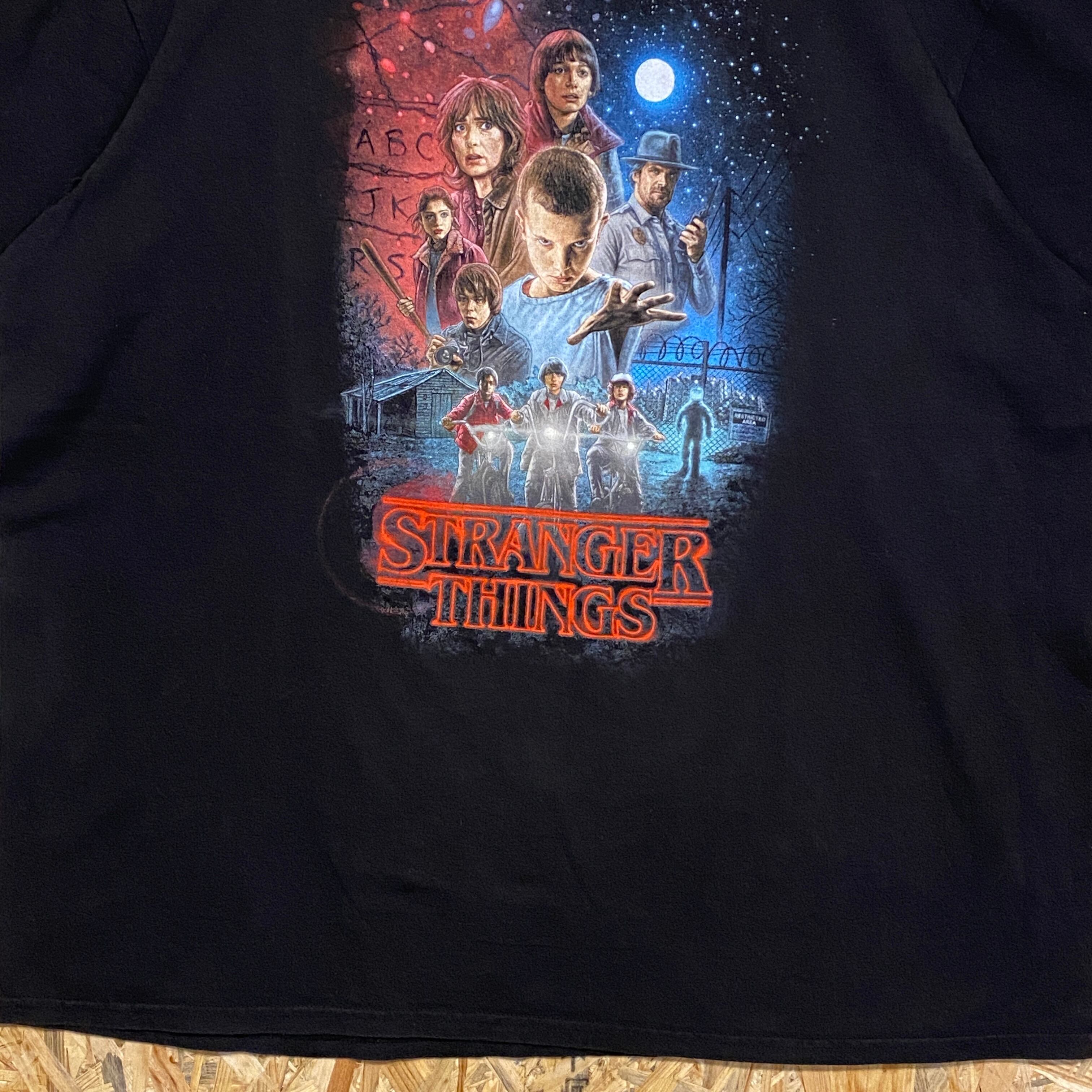 2713 2020s STRANGER THINGS プリント Tシャツ Netflix ストレンジャー シングス 未知の世界 ムービーT シーズン1 黒 ブラック 古着 メンズ vintage