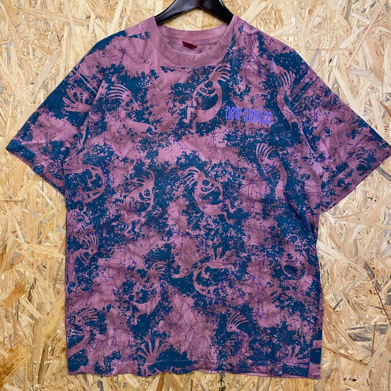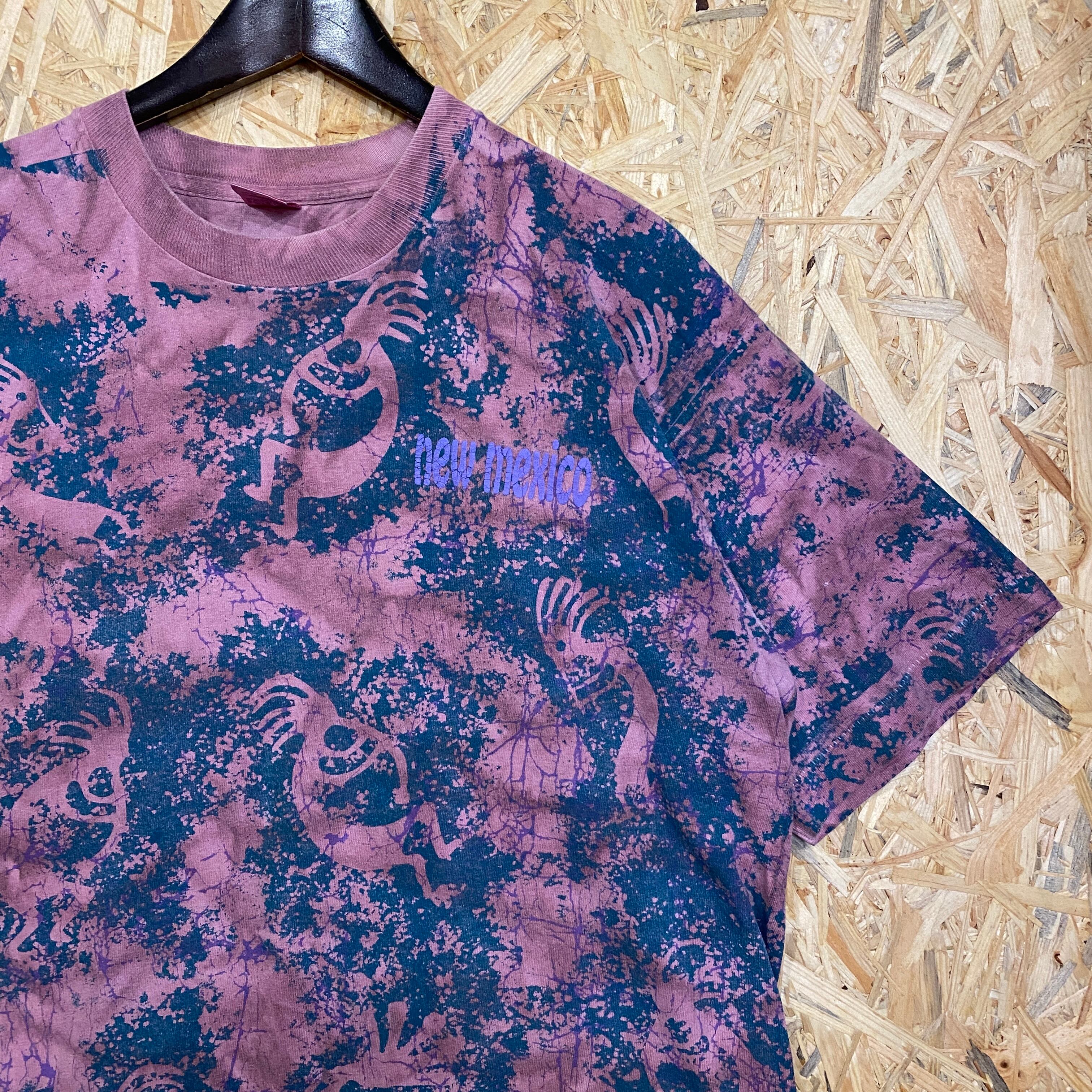 2723 90s 90年代 USA製 フルーツオブザルーム タイダイ Tシャツ 総柄 ニューメキシコ NEW MEXICO シングルステッチ ピンク 古着 メンズ vintage