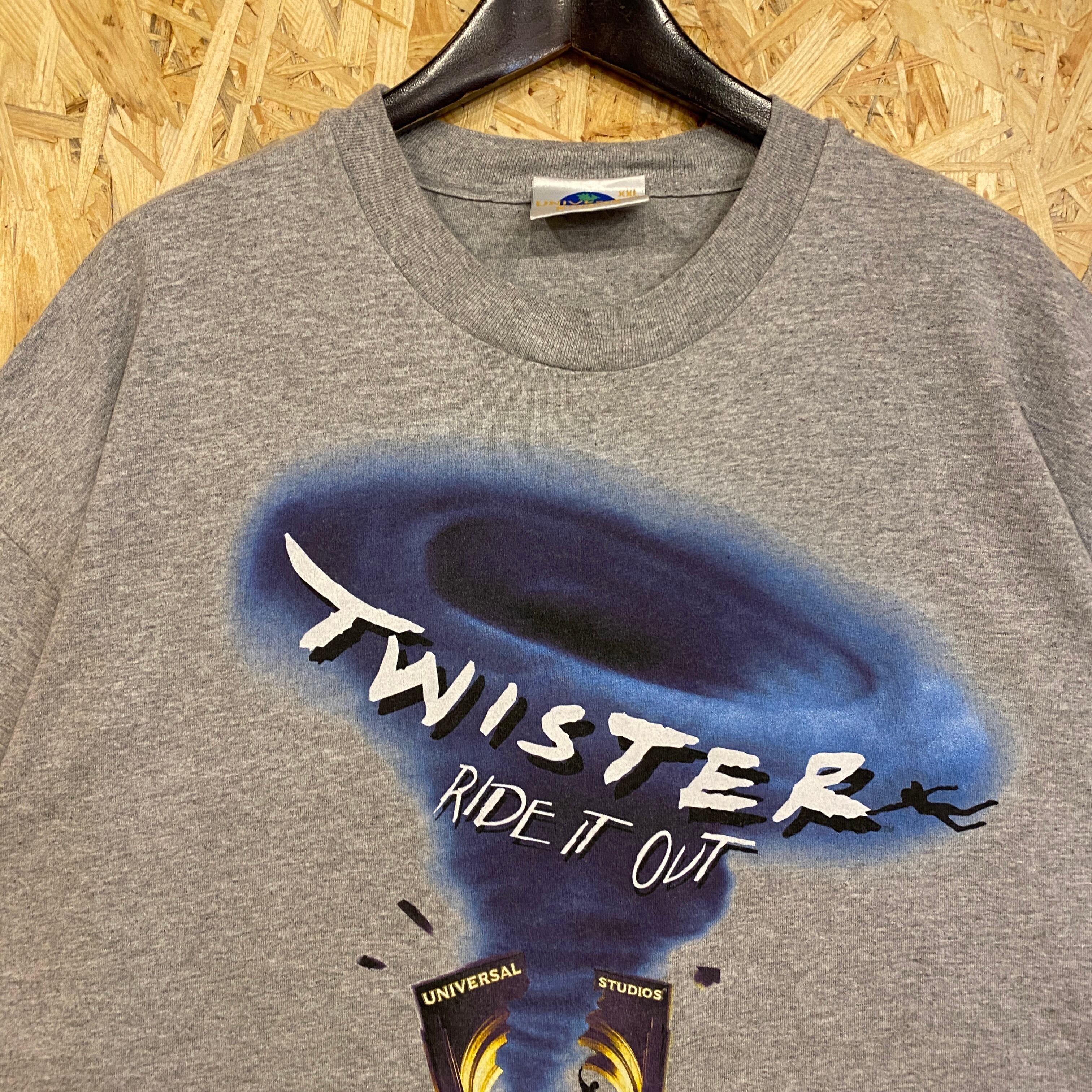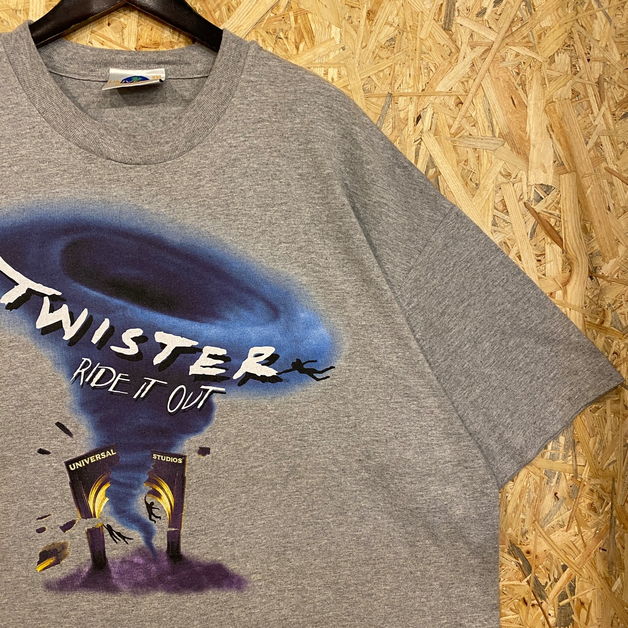 2725 90s〜 90年代〜 USA製 UNIVERSAL STUDIOS ツイスターライドイットアウト Tシャツ ユニバーサルスタジオ フロリダ 竜巻 グラフィック グレー 古着 メンズ vintage