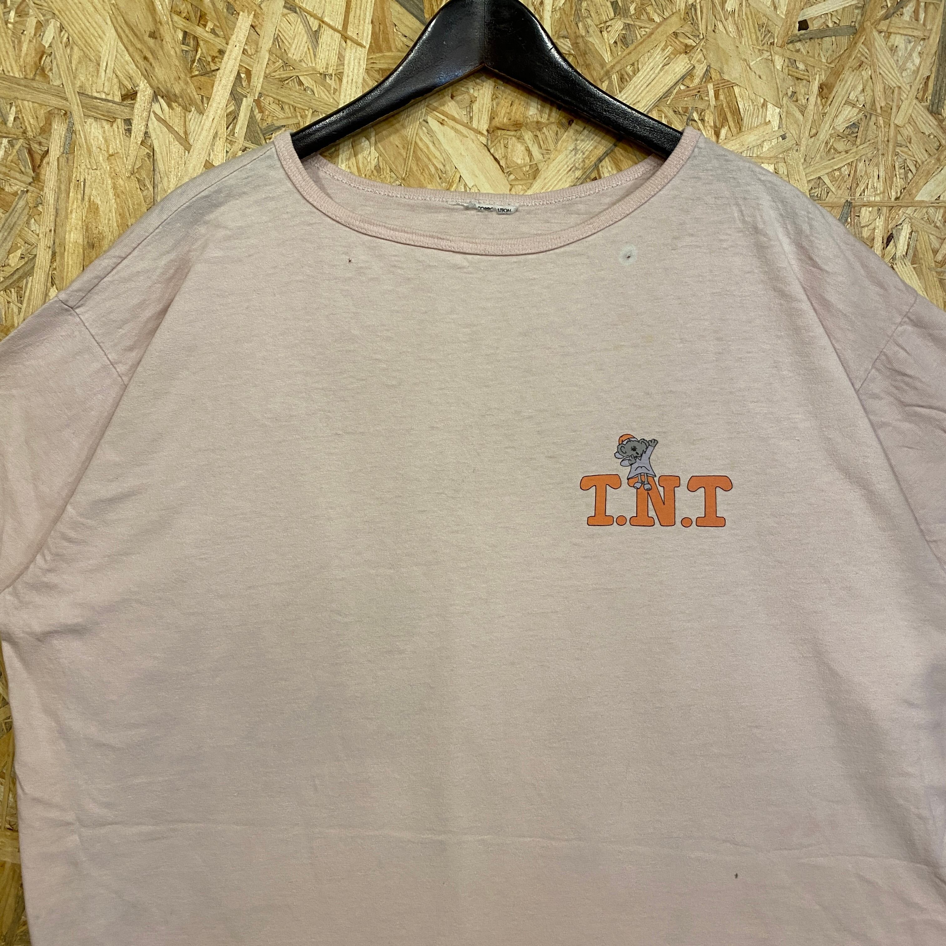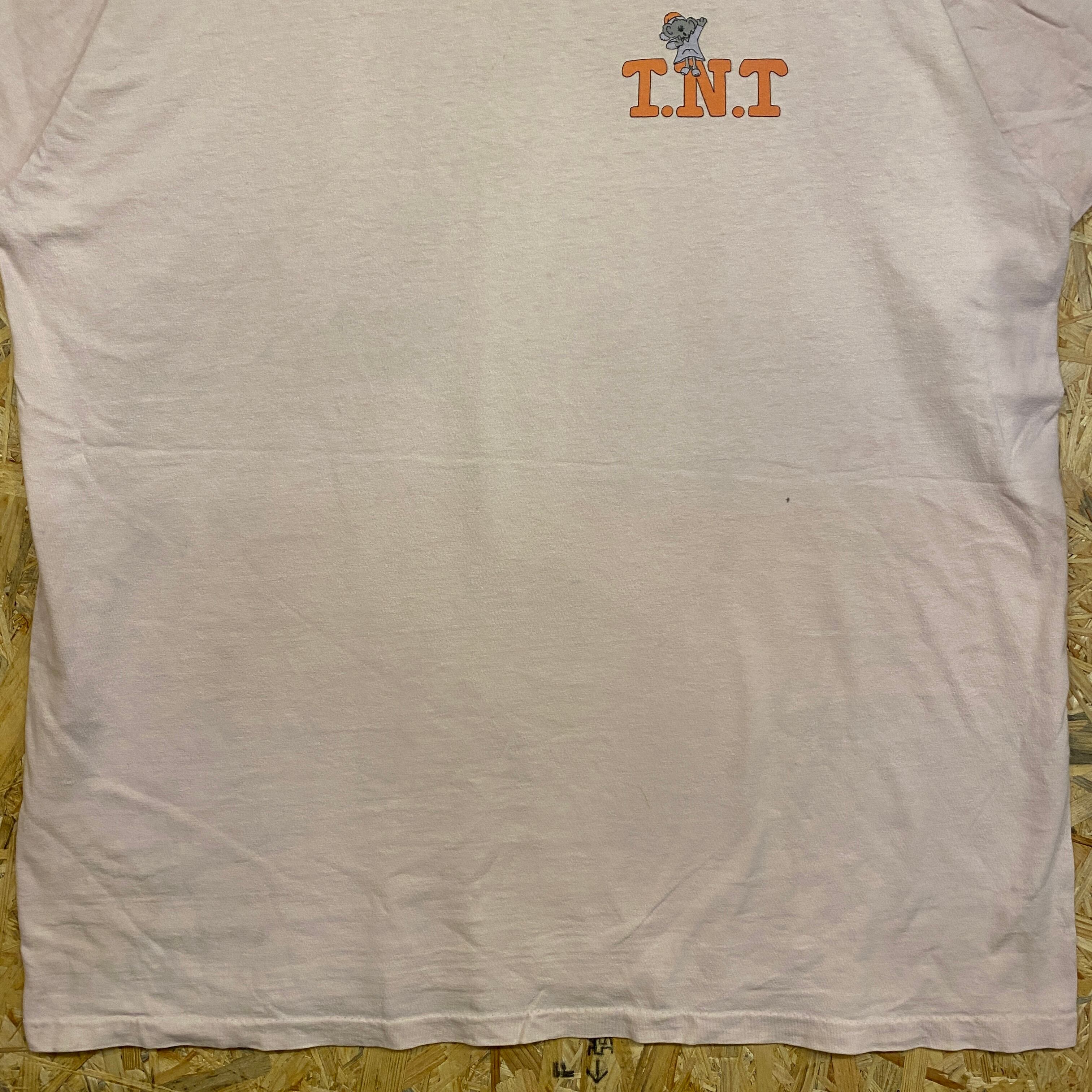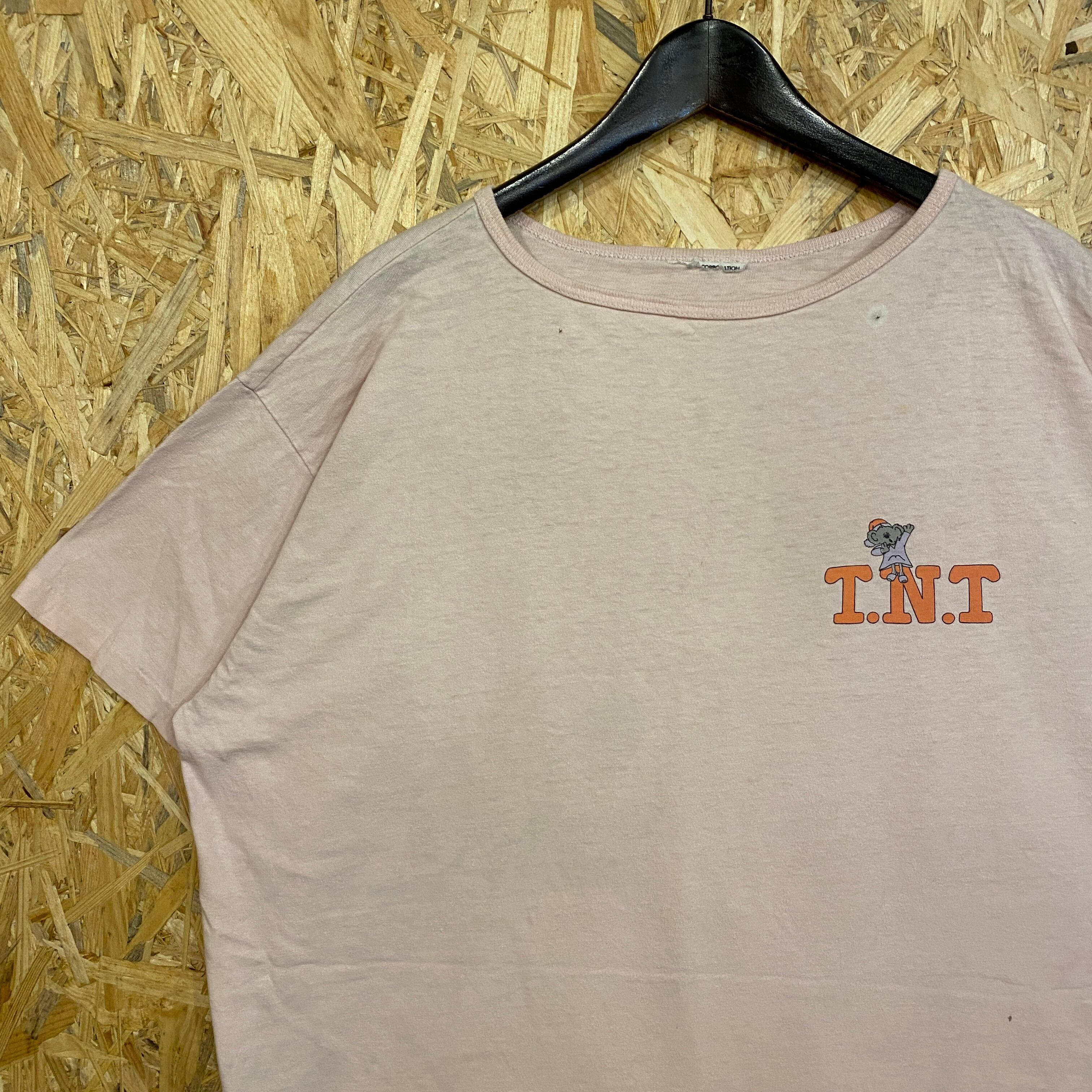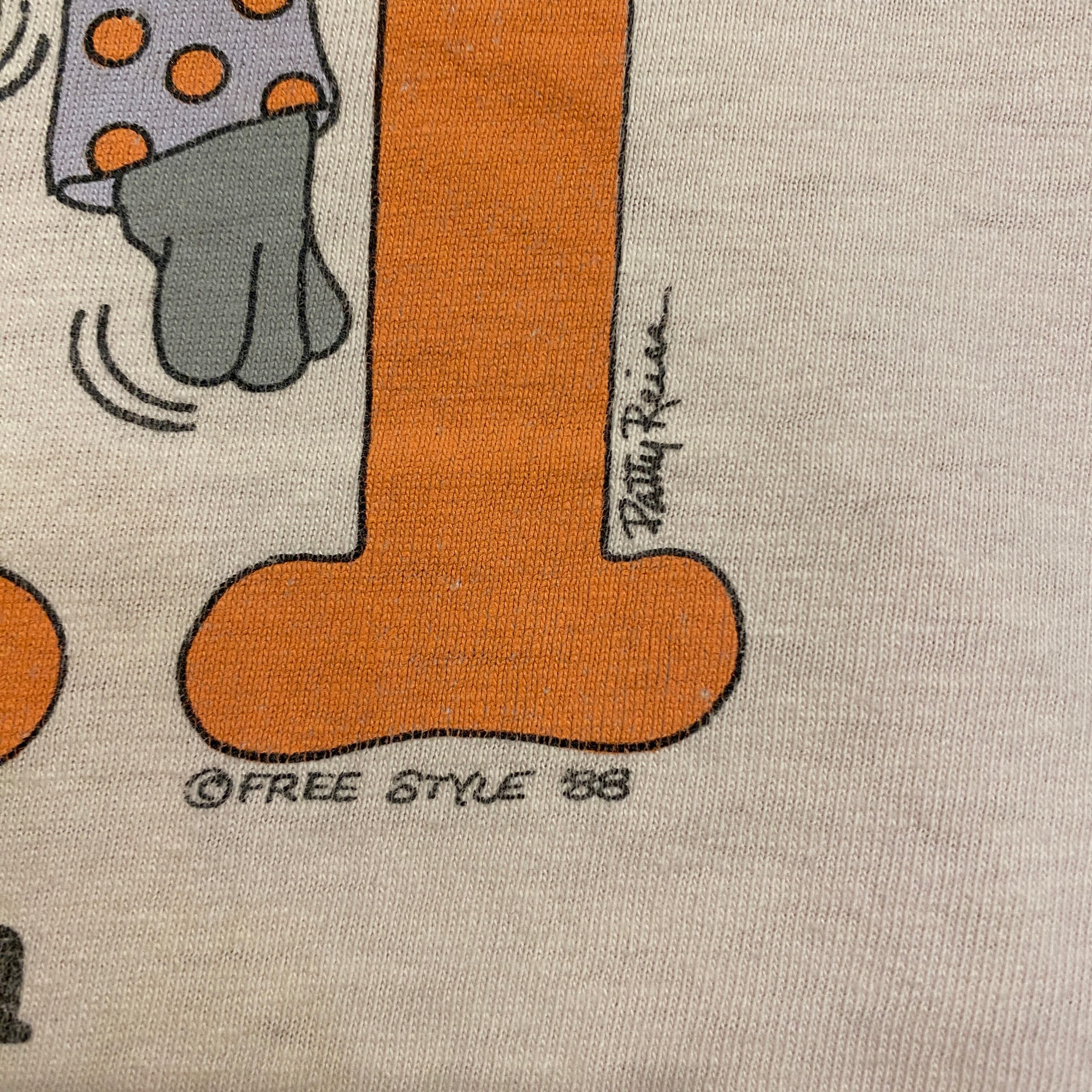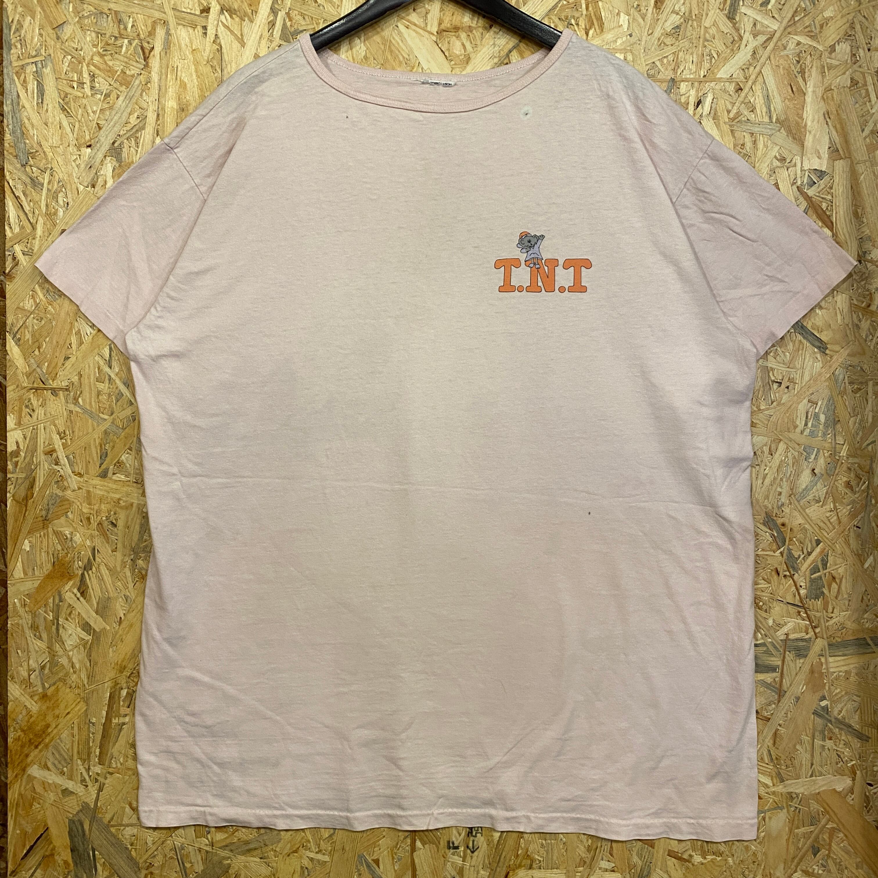 2726 1988s 80年代 T.N.T 猫 イラスト Tシャツ アート キャラクター ユーモア 両面 プリント シングルステッチ ベージュ 古着 メンズ vintage 80s