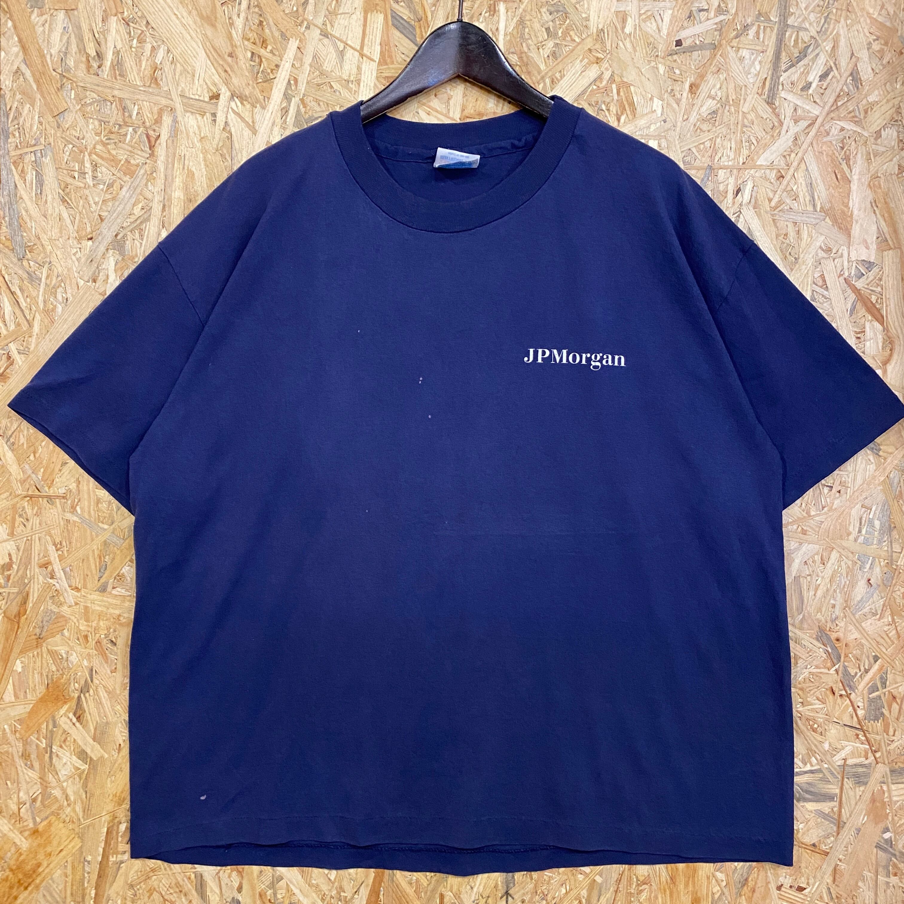 2728 90s 90年代 USA製 JPMorgan JPモルガン アドバタイジング Tシャツ オフィシャル ロゴ プリント シングルステッチ ネイビー 紺 古着 メンズ vintage