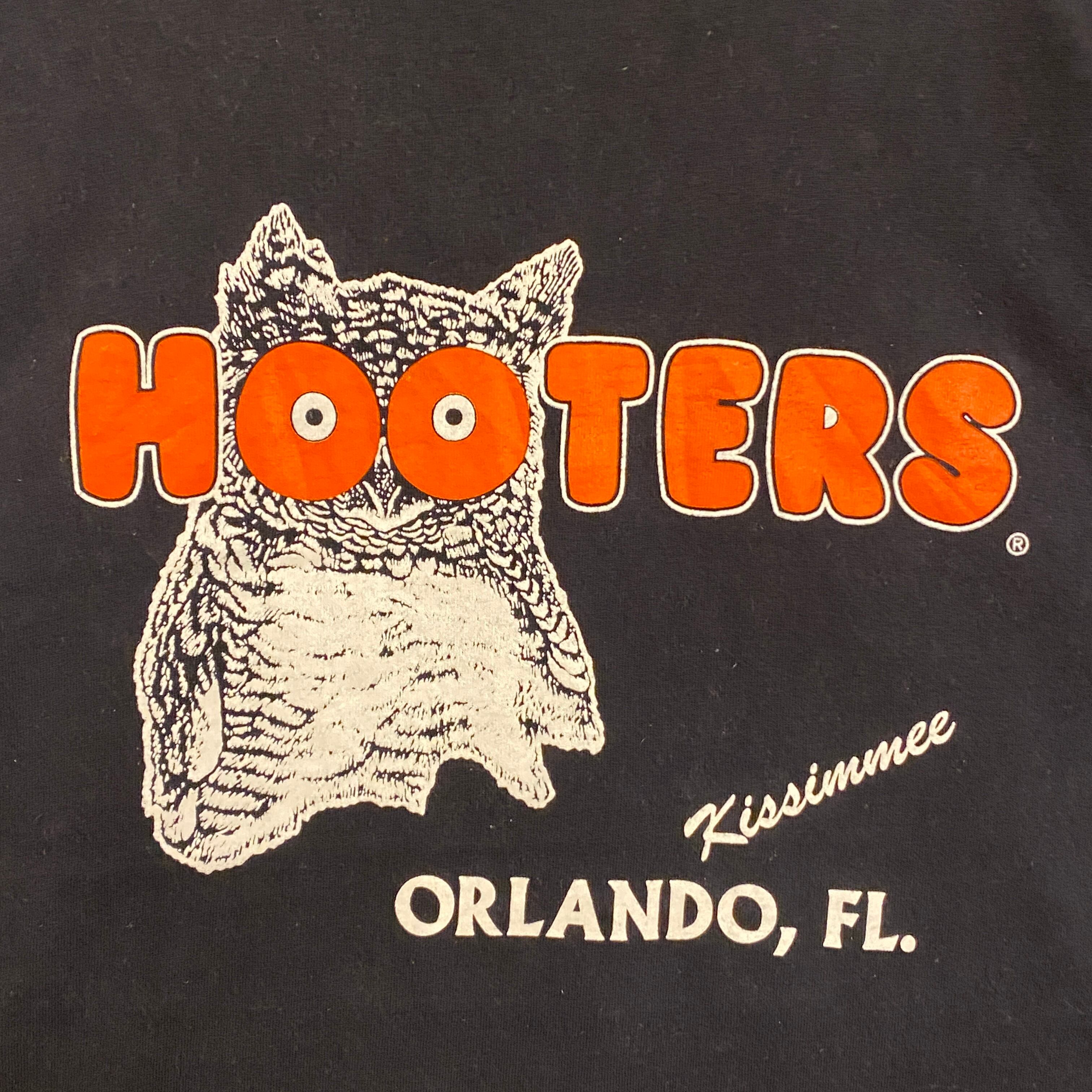 2731 90s 90年代 USA製 HOOTERS プリント Tシャツ フクロウ アニマル レストラン ロゴ アメリカ フーターズ 黒 ブラック 古着 メンズ vintage