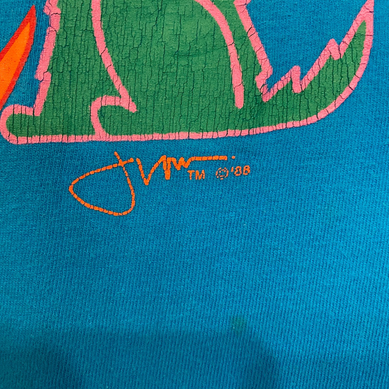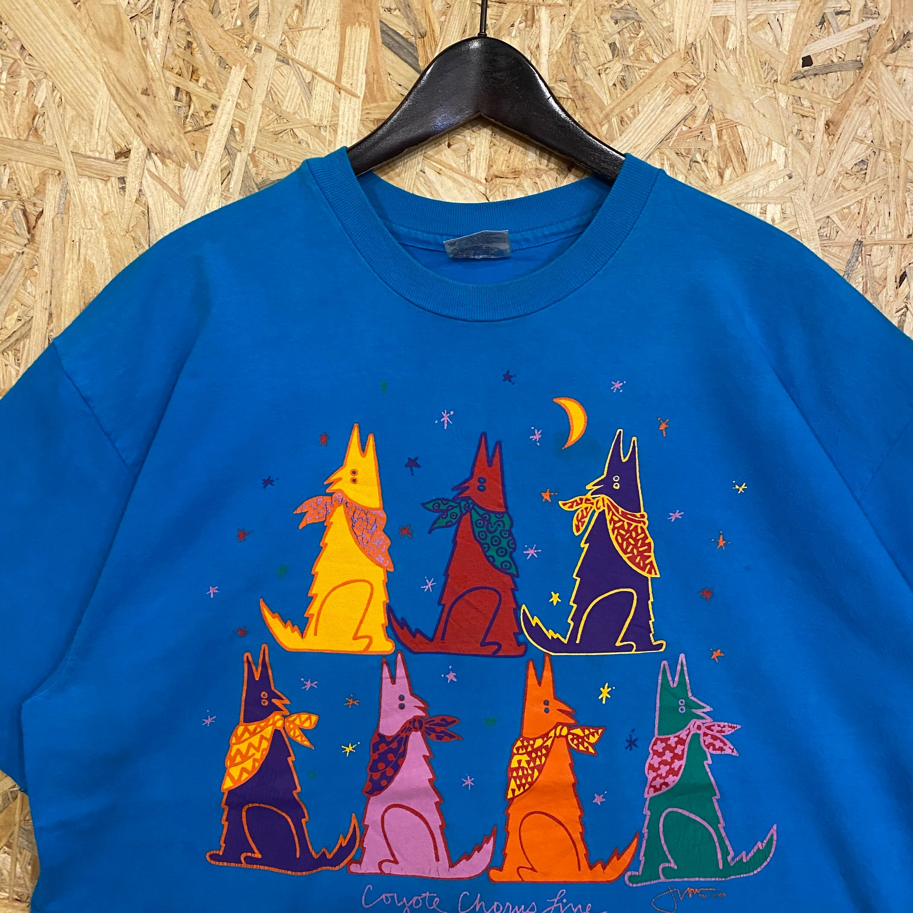 2746 1988s 80年代 USA製 アニマル Tシャツ 犬 コーラス アート グラフィック デザイン シングルステッチ ブルー Hanes 古着 メンズ vintage