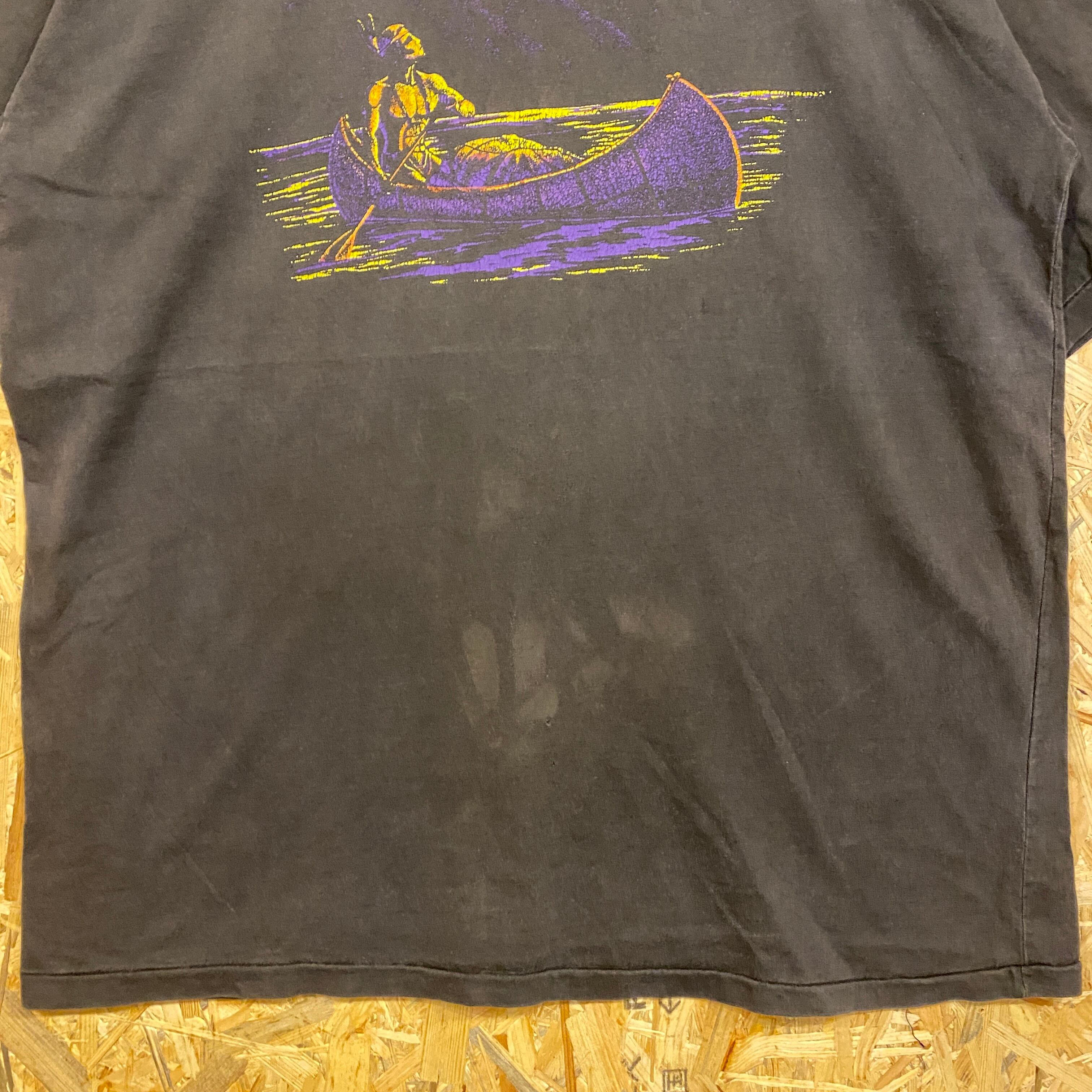 2756 90s 90年代 ネイティブ アメリカン イラスト Tシャツ カヌー 月 インディアン クルーネック シングルステッチ 黒 ブラック 古着 メンズ vintage
