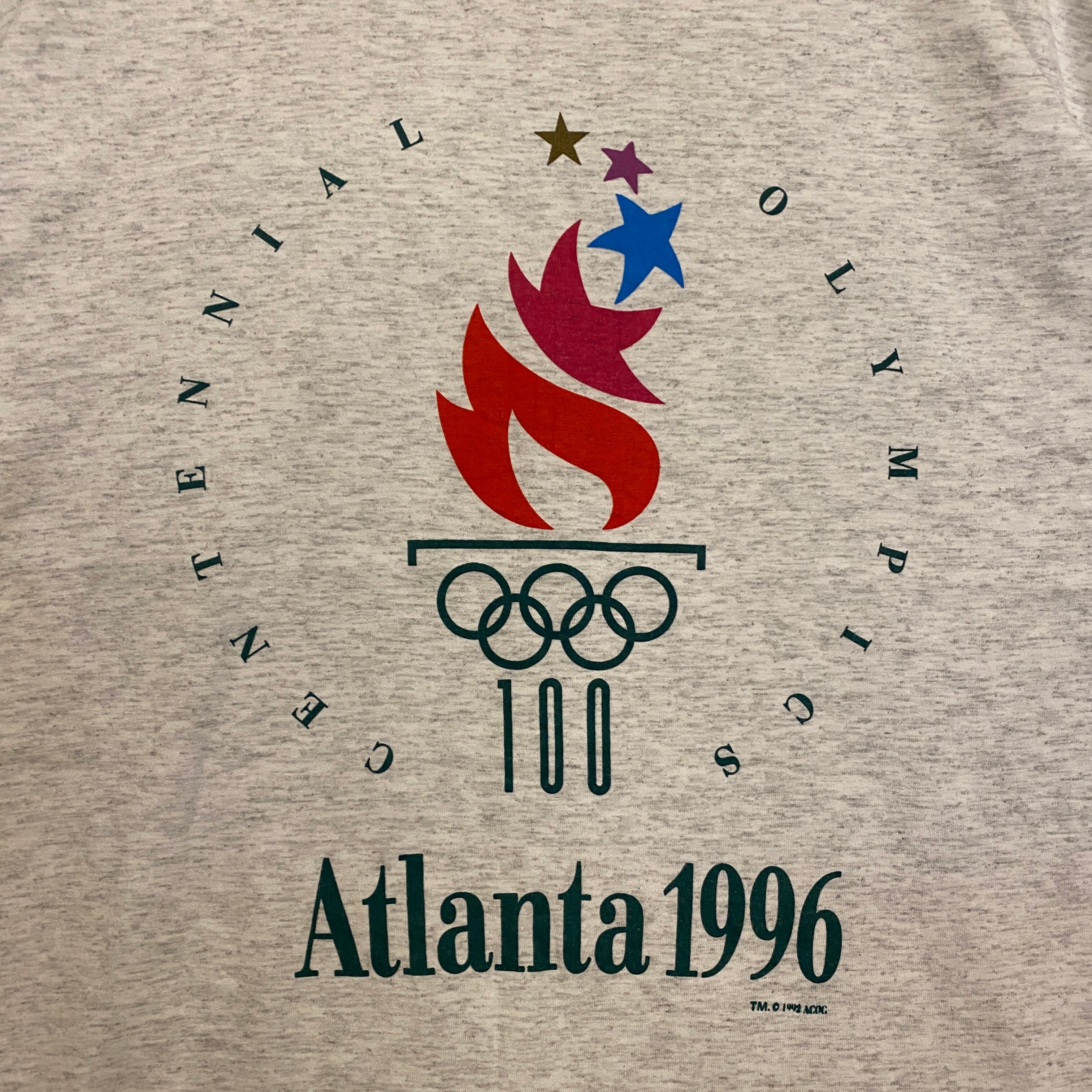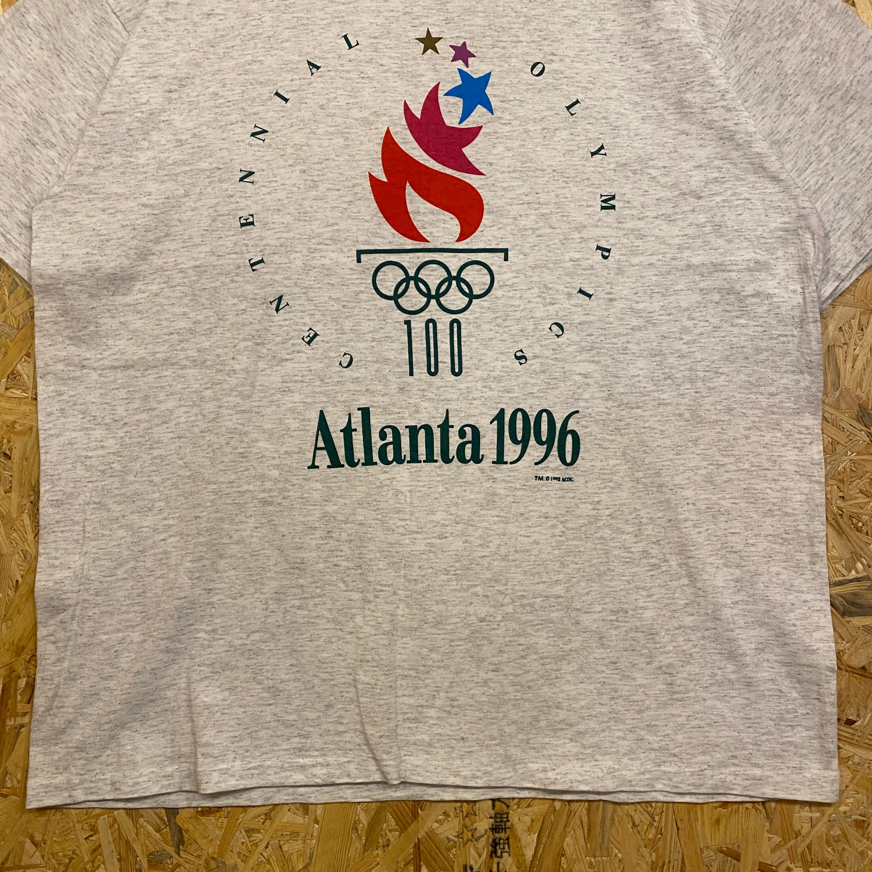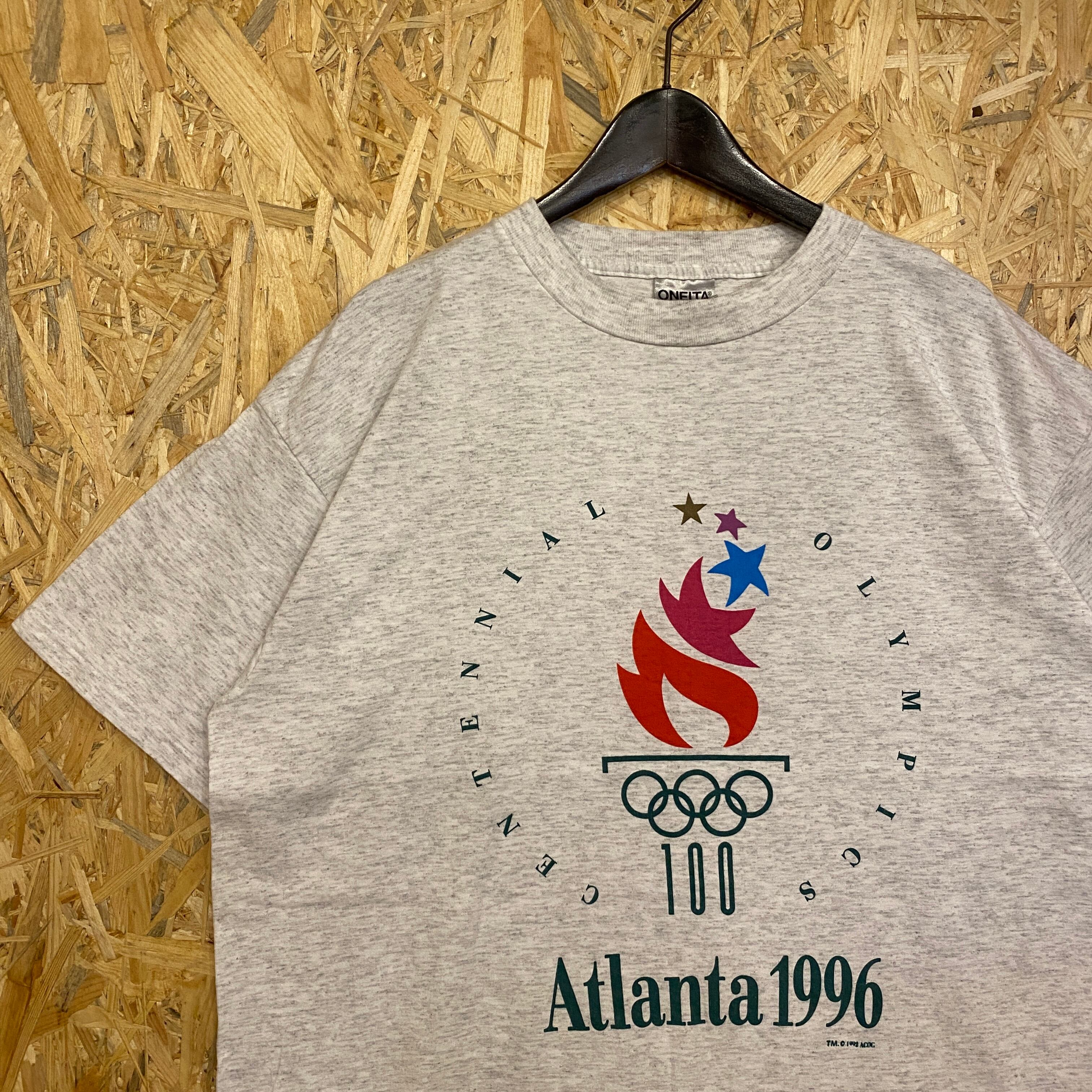 2758 90s 90年代 USA製 オリンピック 競技 プリント Tシャツ アメリカ アトランタ 聖火 ロゴ グレー oneita シングルステッチ 古着 メンズ vintage