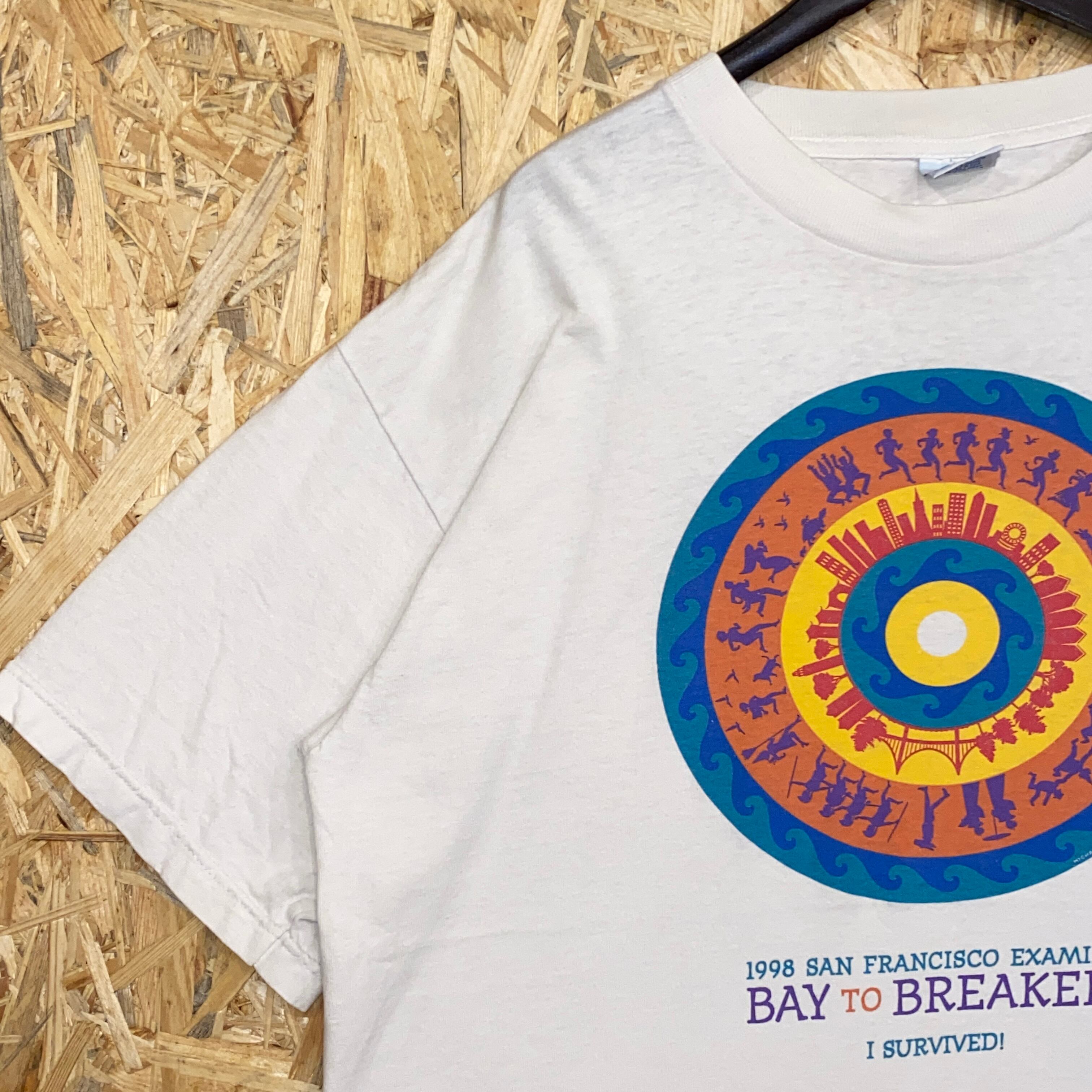 2773 90s 90年代 ベイ トゥ ブレイカーズ プリント Tシャツ レース サンフランシスコ グラフィック ホワイト 白 古着 メンズ vintage