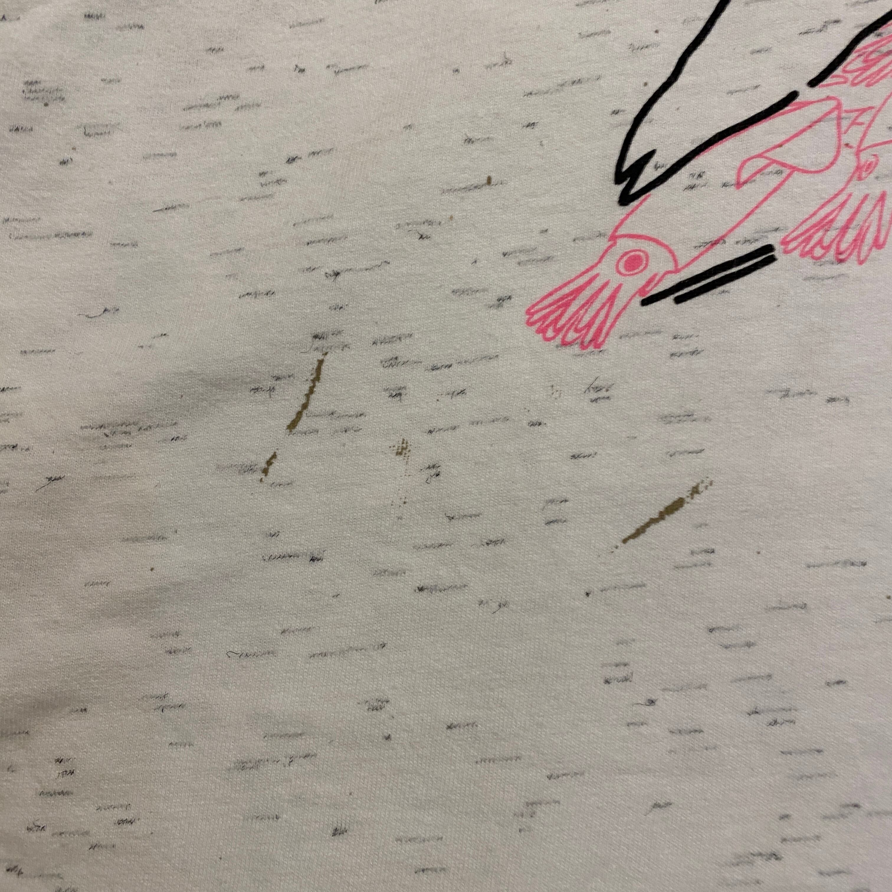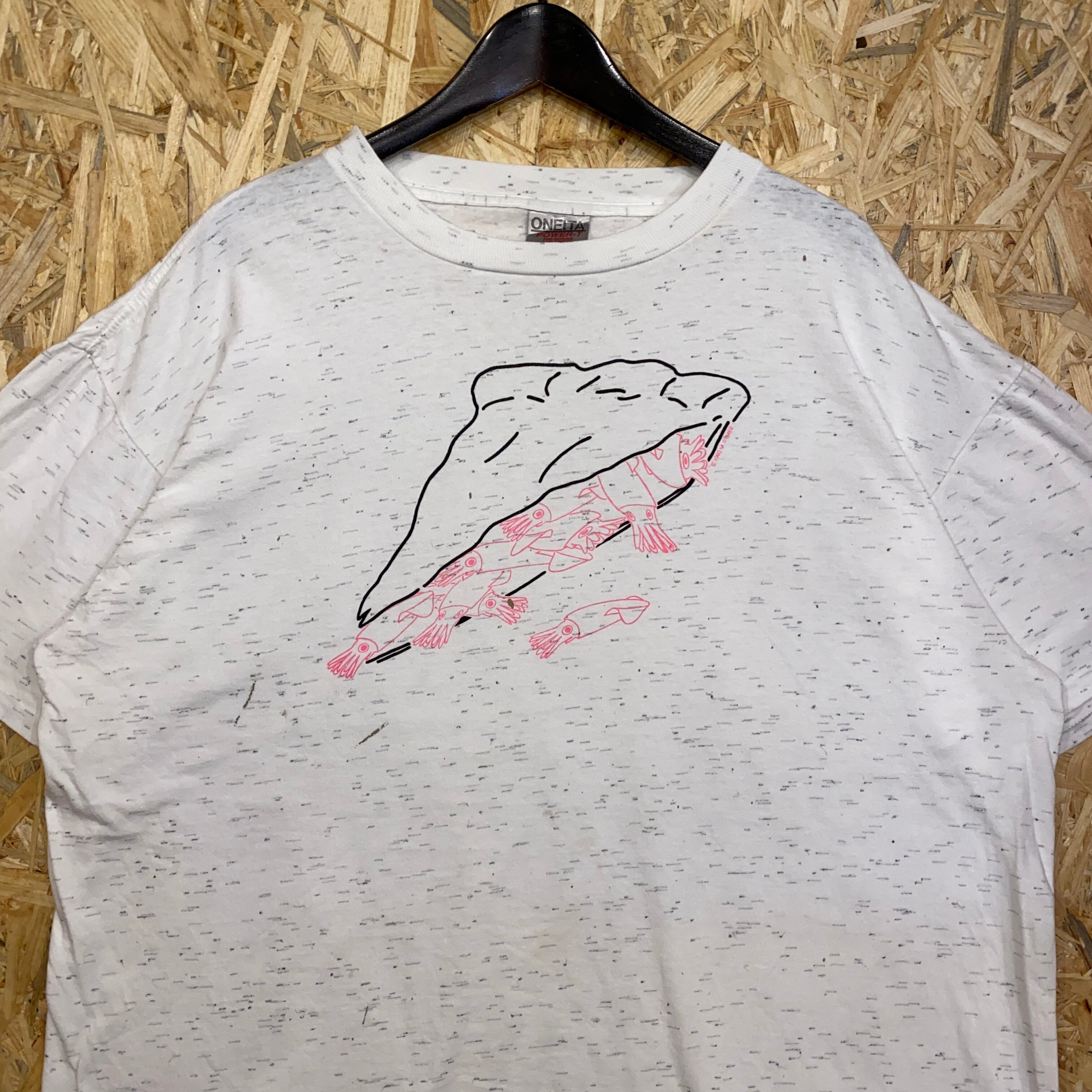 2777 90s〜 90年代〜 USA製 oneita オニータ グラフィック プリント Tシャツ イカ 魚 海 ホワイト シングルステッチ 古着 メンズ vintage 1990s