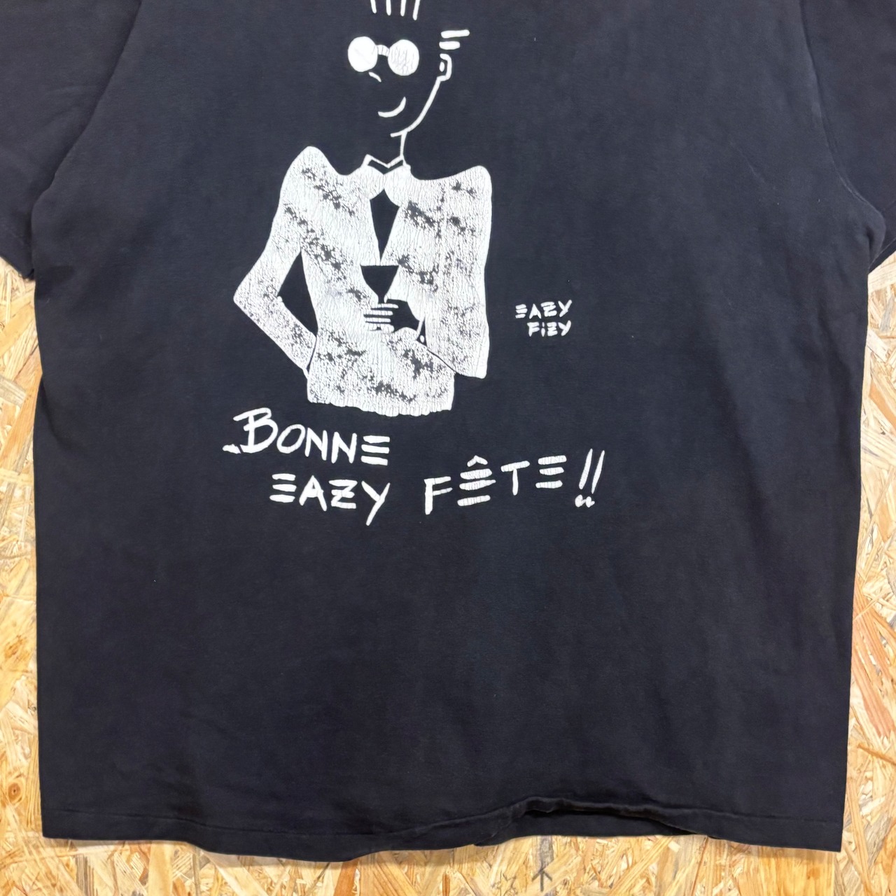 2778 90s〜 90年代〜 USA製 Hanes ヘインズ グラフィック プリント Tシャツ ΞΑΞΥ FIZY 黒 ブラック 古着 メンズ vintage