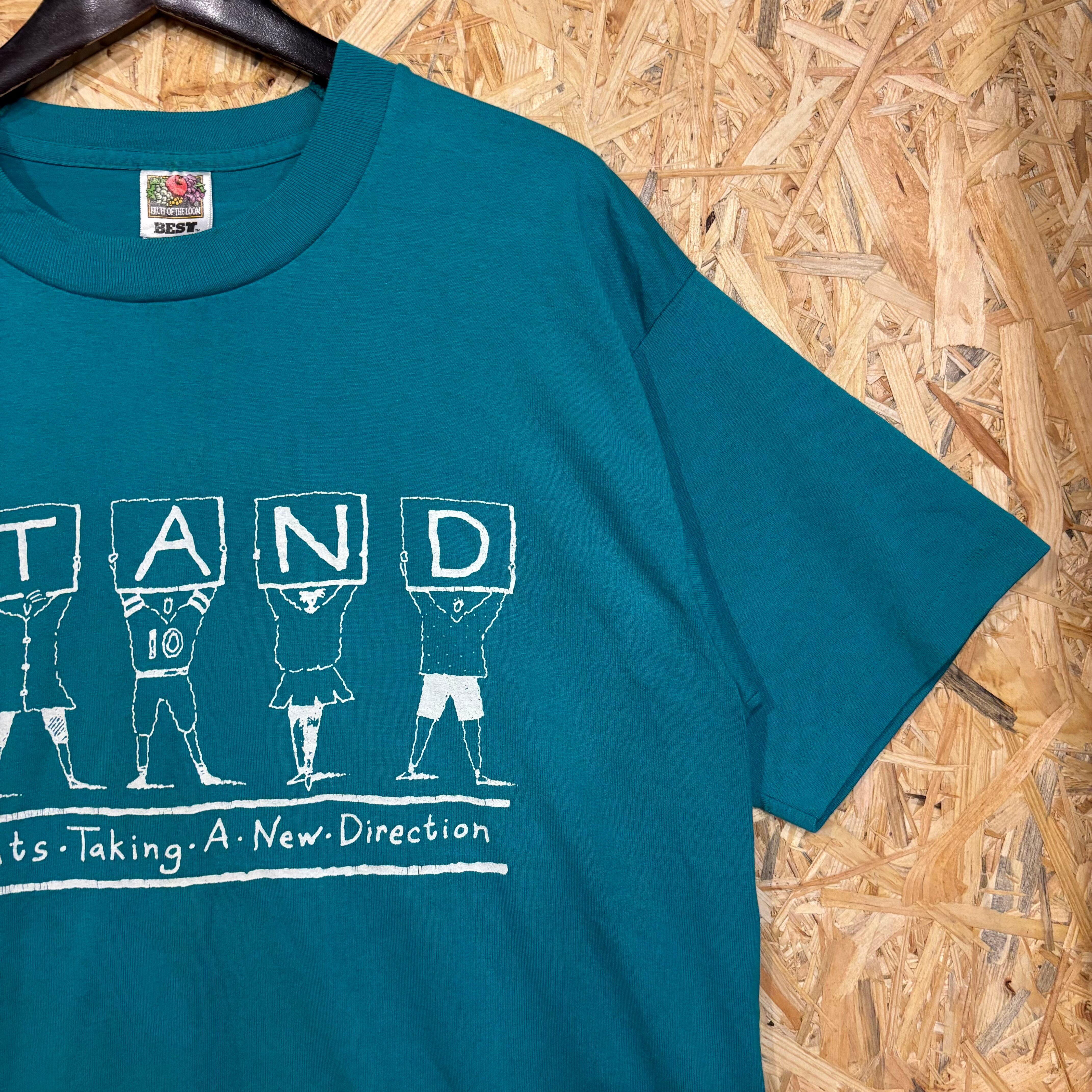 2779 90s〜 90年代〜 USA製 FRUIT OF THEROOM グラフィック プリント Tシャツ Students 学校 学生 グリーン 緑 古着 メンズ vintage